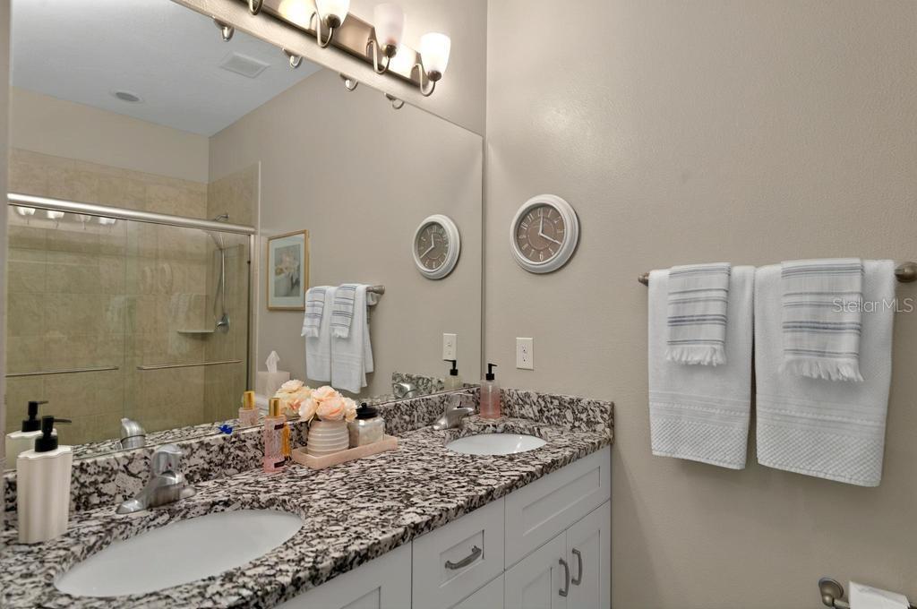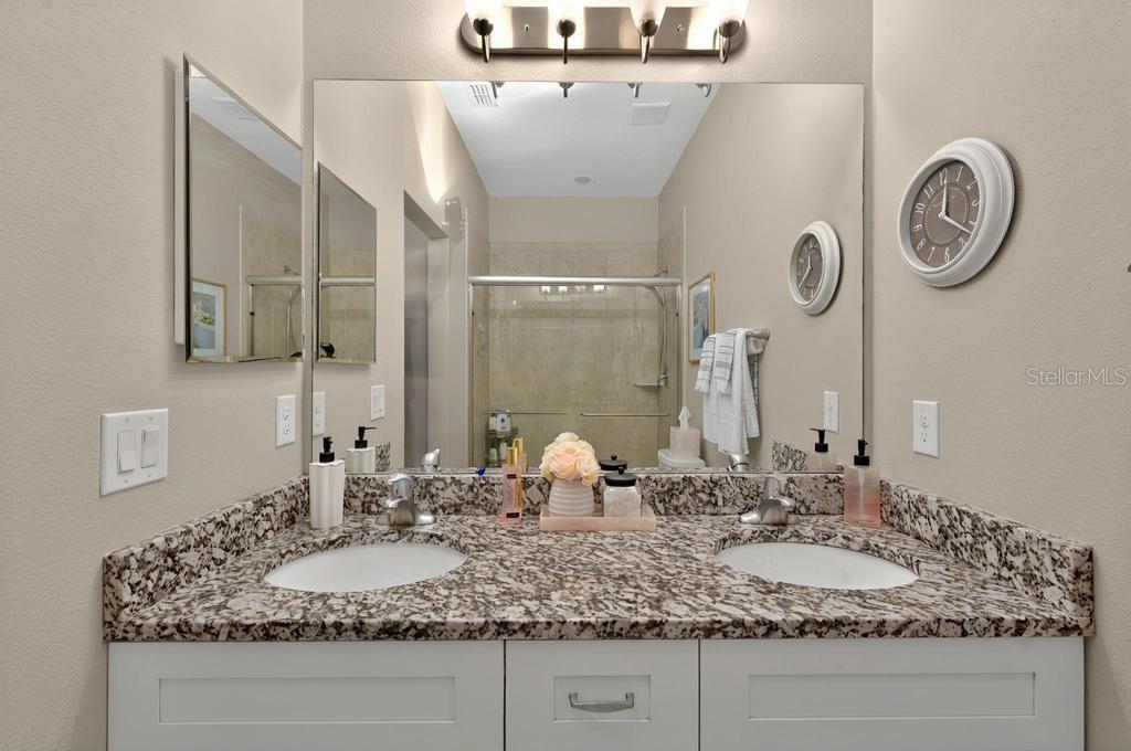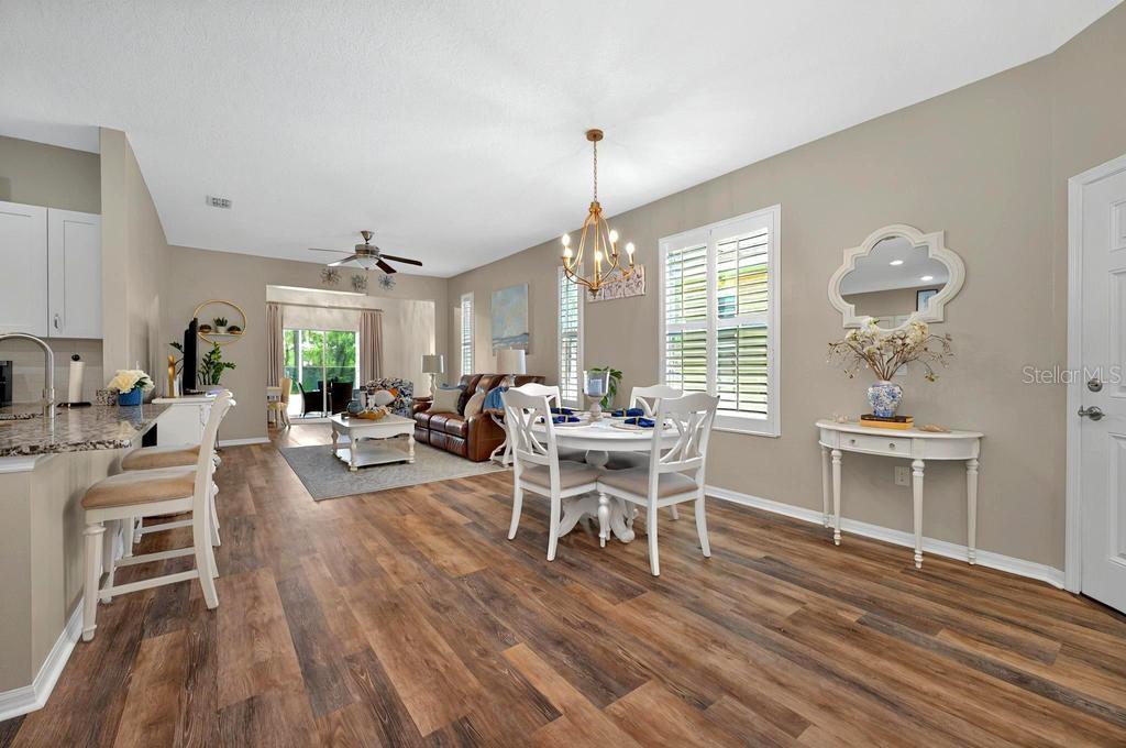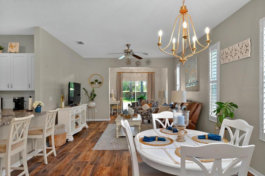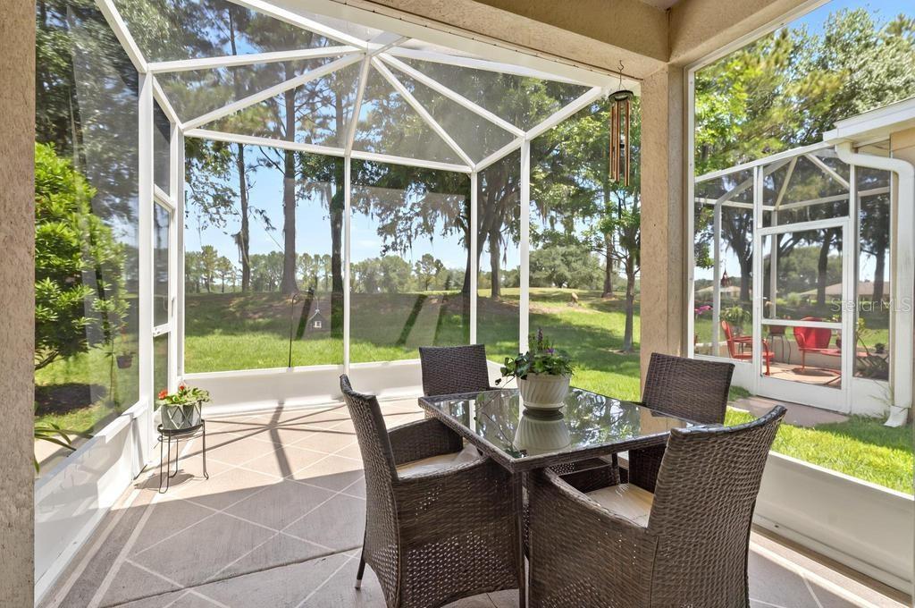 Carefree Living . . . Charming Villa, Low Maintenance, Amenities and Activities Galore . . . Highly Desirable Community of Arlington Ridge. Step inside this Charming light and bright home with 9' ceilings throughout, neutral paint color throughout, luxury vinyl plank flooring, double pane windows with Plantation Shutters, Glass Entry Storm Door, View of the Golf Course from the Screened Lanai and no neighbors behind you. Open Floor Plan Features Living and Dining Room Combination, Kitchen with 36" luxury cabinets, cabinet drawer stack, granite counters, stainless steel appliances and a generous size pantry. Spacious Master Bedroom has two closets with one of them being a walk-in closet, ensuite bathroom with double vanities, and granite counters. The second bedroom and bathroom are on the opposite end of the villa for privacy. The flex/bonus space can be used as an office, exercise area, sitting/reading nook, or hobby room and could easily accommodate a murphy bed. Generous size laundry room with laundry sink and plenty of extra storage space. Spend more time doing the things you enjoy while the exterior painting of the home, roof replacement, lawn service including mowing, edging, weed eating, blowing and lawn irrigation and spraying of lawn are included in the cost of your quarterly HOA fees. Also included in the quarterly HOA fees are 200 + cable tv channels with ability to record your favorite shows, high speed internet and router. The community has a guard at the entry 24 hours per day. This home is a short walk, YES you are within 1/2 block of all the top tier amenities the community has to offer. Enjoy a long list of amenities including an 18-hole championship Golf Course, Putting Green, Chipping Green, Driving Range, and Pro Shop. Resort Style Heated Swimming Pool with Jacuzzi and Beautiful Palms, Lap Pool, State of the Art Fitness Center with Exercise Equipment, Sauna and Showers, Lighted Tennis and Pickleball Courts, Sidewalks for Walking, Yoga, Pilates, Zumba, Water Aerobics, Water Volleyball and Various Other Exercise Classes. The community also features a theater with two free movies per week, full-service Restaurant and Pub, Billiard Room, Library, Coffee Shop, Craft Room, Game/Card Rooms and Fairfax Hall for Special Events and Performances. Crafts include ceramics, crochet/knitting, quilting, stain glass to name a few. Various clubs including Men and Women of Faith, Garden Club and Book Club. Bingo held twice per month, Card games, Dominoes, Mahjong, Euchre, Bridge, Cribbage and Others. * Please Note: The Golf Course is open to the public, memberships are available but not required to play the course or live in the community of Arlington Ridge. The Arlington Ridge 55+ Community is in the heart of Lake County where beautiful lakes are everywhere. The Harris Chain of Lakes (15,000 acres) has a nearby fishing pier and boat ramp where you can launch your boat and travel to nearby Howey in the Hills, Tavares, Mount Dora and Eustis, with dining stops along the way. The Villages are also nearby with restaurants, shops and live entertainment 365 days a year. Orlando International Airport is 1 hour away, and the West Coast Sunset is 1 hour 25 minutes away. East Coast Beaches for sunrises 1 hour 35 minutes away. And don't forget about the mouse, Walt Disney World is 50 minutes away. You are approximately 7 miles from the entrance to North or South Bound Florida Turnpike.