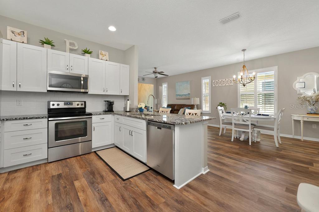 - Ceiling Fans(s), High Ceilings, Living Room/Dining Room Combo, Open Floorplan, Stone Counters
