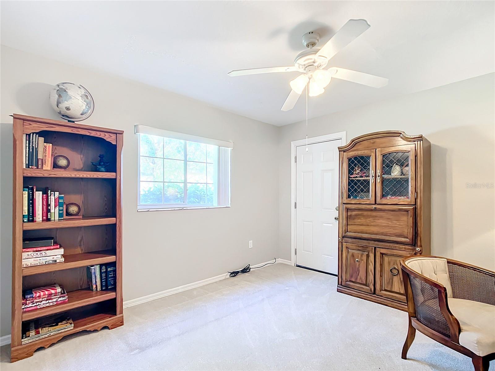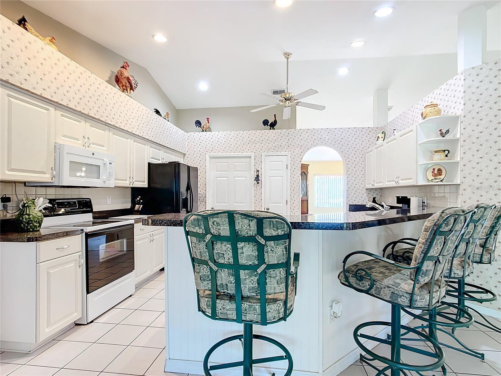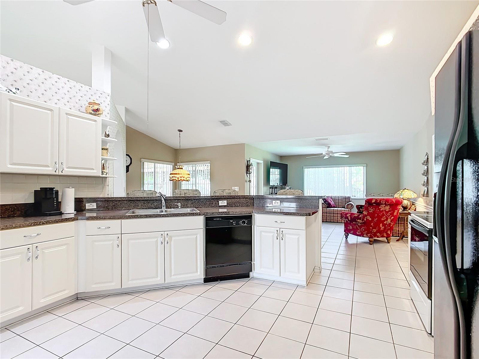 Lovely stucco 3 bedroom/2 bath, ASPEN style home in TURNBERRY at the gorgeous Del Webb's Spruce Creek Golf & Country Club, an exclusive, 55+, 1604 acre, 24-hour manned gate, golf-cart community just 15 miles south of Ocala and easy drive to Orlando. Situated on a .27 acre lot with distance between neighbors and .02 mile to the 32,000 sq ft Horizon clubhouse with LARGE POOL and JACUZZI. State-of-the-art FITNESS CENTER includes an indoor pool and second outdoor pool located at Peninsula. Property also includes 36 holes on multi-tee championship golf course (271 acres) designed by Terry Ross. Leaded glass front door with side panels opens into a tiled foyer with vaulted ceiling in living/dining/kitchen area. Kitchen has a breakfast nook and bar with 4 stools, tiled floor, recessed lights, French-door refrigerator, pantry closet, door to the laundry room through to garage and slider to the West facing open-air tiled floor lanai with extended jasmine covered arbor. Primary bedroom overlooks the lanai and has 2 walk-in closets, a soaking garden-style tub, separate glass enclosed shower, linen closet and tiled floor. Guest bedrooms are both comfortable sizes with a shared tiled bath that has a tub/shower combo, linen closet and a window. The third bedroom has its own entrance to the garage and exterior door access. Original owners replaced HVAC in 2017 (Rheem), ROOF 2022, gas WATER HEATER 2012, Hunter IRRIGATION system. 4 Point and Mitigation Reports available upon request. Windows have grilles between double pane glass and ceiling fans throughout. Over 70 clubs, monthly print and online magazine (The Fountain) with schedule and calendar of events. The Villages’ Spanish Springs Square is close by, so you can enjoy shopping, restaurant and free nightly outdoor bands/entertainment. Urgent Care is a golf cart ride away and the Villages Hospital and a plethora of medical offices, restaurants, stores and the Marion Market are close too. On-site RV and boat storage. Don't miss out! Call today for your private viewing! Some personal items in photos are to be removed by owner. 3 month minimum for rentals.