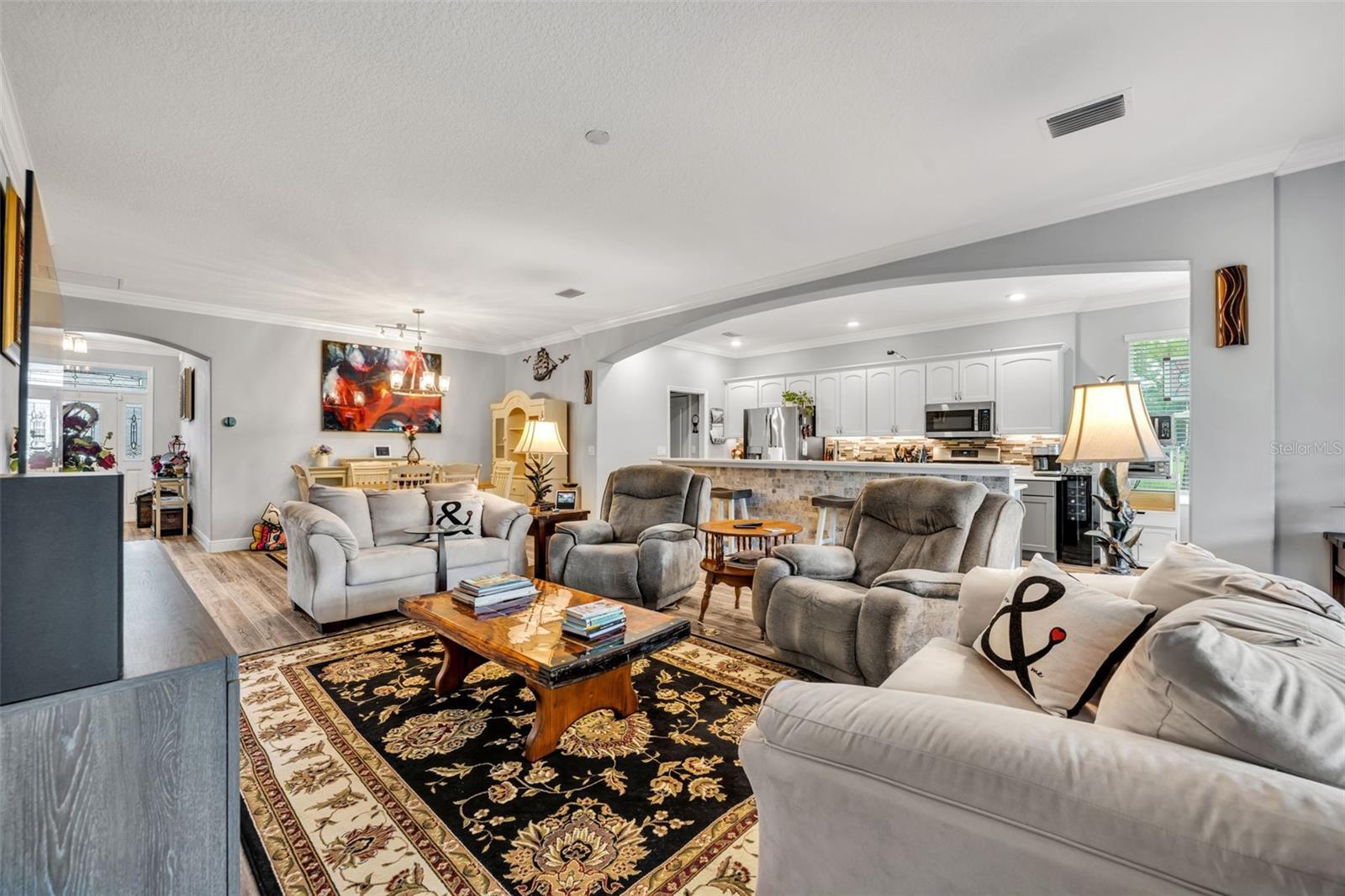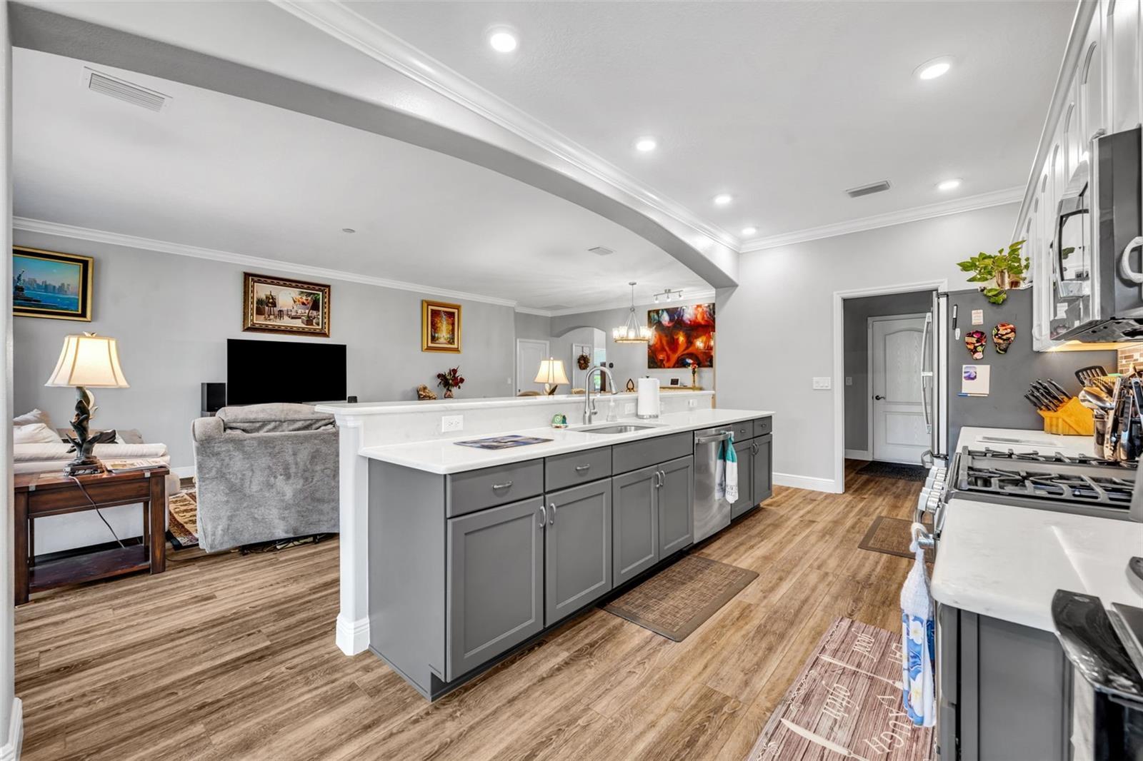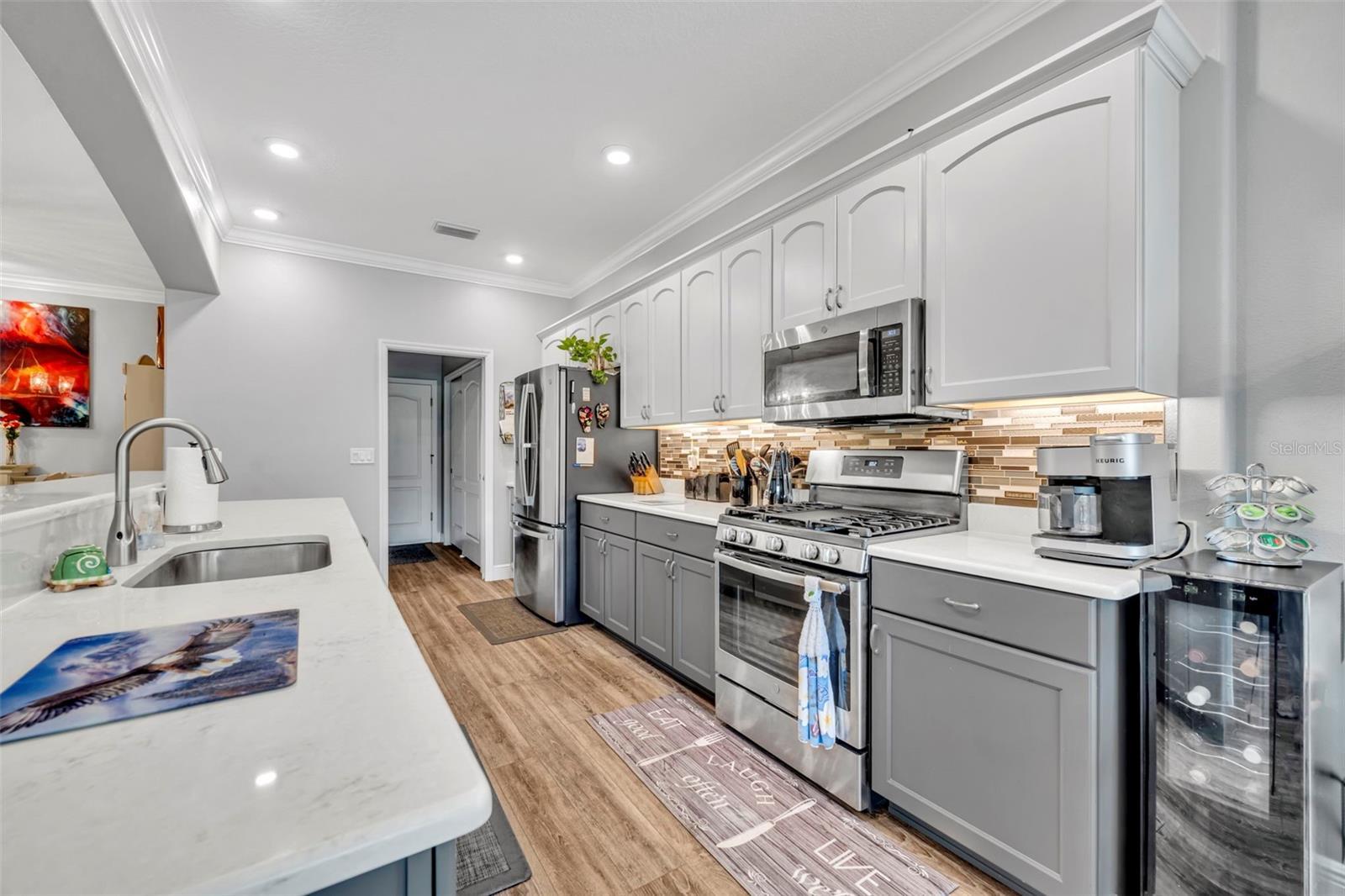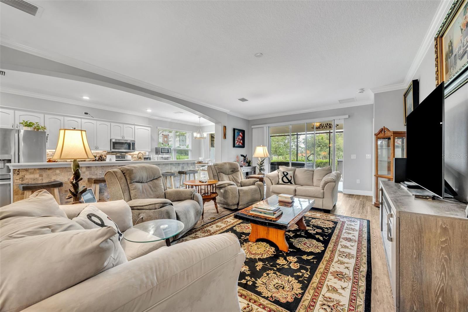 Under contract-accepting backup offers. Located in the premier 55+ golf community of Arlington Ridge, this 3-bedroom, 2-bath home built in 2020 with 2,001 sq. ft. offers a direct view of the 14th tee. Let's talk about the home features: Spacious kitchen with a large center island for extra seating and GE stainless steel appliances Crown molding throughout the main living areas Expanded garage with full sized 10 ft golf cart space, Wi-Fi openers, epoxy flooring and electric door screens Energy upgrades including spray foam insulation, an upgraded Carrier HVAC, WHOLE-HOUSE GENERATOR, hot water recirculating system, and water softener Outdoor living with an extended screened lanai, natural gas grill hookup, waterproof fans, and roll-down shades Exterior features include professional landscaping, concrete curbing, screened front entry, gutters, and a termite bond for peace of mind A full list of upgrades has been uploaded to the MLS for reference! Arlington Ridge offers 18-hole championship golf course, both resort and lap style pools, fitness, dining, Grand Hall for entertainment, cinema, billiards room, Village Tavern, library, pickleball and community activities designed for active adults.