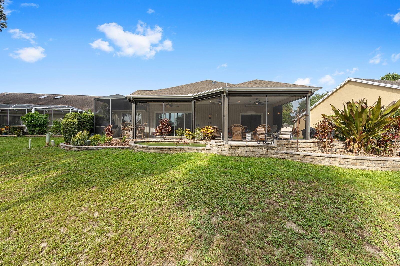 This beauty is getting a new HVAC!...BEAUTIFUL GOLF FRONT! Watch the golfers coming down the #7 fairway of the Hacienda Lakes Course. Updated inside and out with many extra features many homes do not have such as EXTRA HEIGHT 4 panel stacking sliding glass door leading your outdoor living oasis with Twin Eagles ceiling mounted electric radiant heaters for the cool nights, additional power sunscreens over the entire lanai. Inside is a spacious living room with DRY BAR that hosts a 2-drawer refrigerator, PULL-OUT shelves in the cabinets, storage for all your glasses and beverage accessories. THE kitchen is a jaw dropper with all PULL-OUT DRAWERS around the FABULOUS ISLAND with custom powder coated metal countertop from Arkansas. SOFT CLOSE DOORS as well as LED lighted cabinets. Top-tier appliances including Electrolux Icon 32' Freezer and 32” Refrigerator w/custom double vent, GE Monogram Cafe' doors convection oven and GE Monogram induction cooktop with Wolf power ventilator/light. Enjoy the COFFEE BAR with water hook-up for your convenience. The Primary bedroom ha 10 ft high closet storage with double hanging and additional shelves for storage. The Primary bathroom has double sinks with storage tower between them. Custom large glass enclosure shower. Enjoy the privacy of a split floor plan with the guest bedrooms across the living room. Guest bedroom 1 has a closet. Guest bedroom 2 has a space for a closet or could be converted into a large work space w PLANTATION SHUTTERS. The oversized interior laundry room has plenty of space for storage and large laundry sink. The garage is an extra deep 2 car garage with an additional 3rd stall golf cart garage/shop space. Want outdoor living? How about outdoor living Visitors will enjoy the putting green and outdoor patio space or just relaxing with their favorite beverage while watching the golfers on the green. Stunning sunrise view with a variety of pine, palm, and oak trees. Close proximity to the multi modal path available on the other side of the golf course. Click on the virtual tour link for a walk through look. 1-year Home Warranty included.