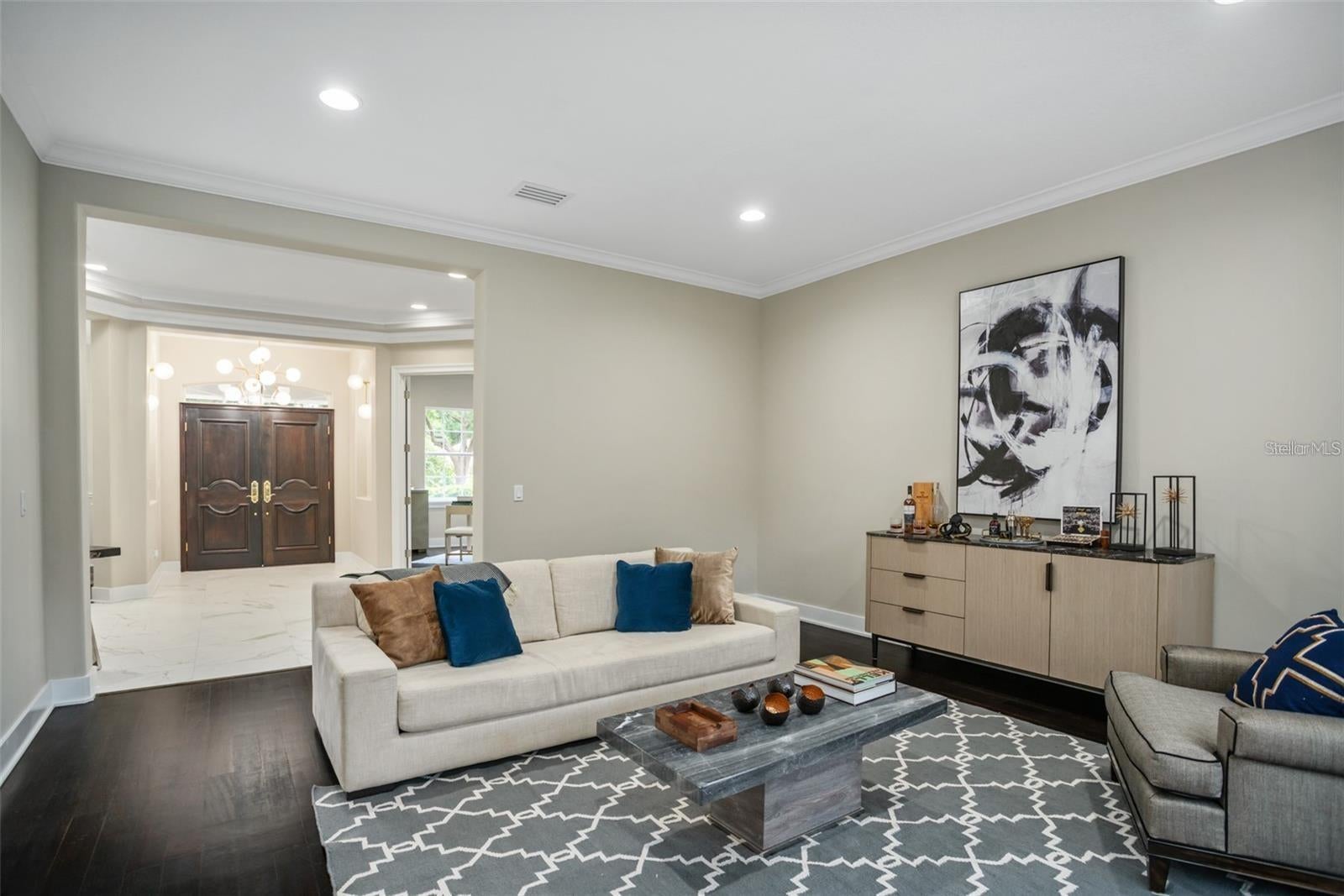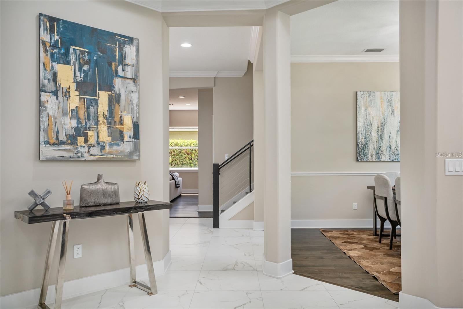 Experience Refined Luxury in the Heart of Dr. Phillips Welcome to a stunningly reimagined estate in the highly sought-after Palm Lake gated community—an exclusive enclave of just 39 luxury homes in one of Orlando’s most prestigious neighborhoods. This move-in ready, 5-bedroom, 5.5-bathroom estate with a spacious upstairs bonus room offers over-the-top elegance and comfort. From the moment you arrive, you’re greeted by immaculate curb appeal—lush, manicured landscaping, a stately paver driveway, and an inviting façade that sets the tone for what lies within. Step inside the grand foyer and be instantly impressed by luxury flooring, a designer chandelier, and seamless sightlines that draw you into the heart of the home. The formal living room features uninterrupted views of the resort-style pool, while the elegant dining room and private home office are adorned with custom lighting and refined finishes—ideal for entertaining or working in style. The chef-inspired kitchen is the ultimate culinary space, boasting premium KitchenAid appliances, including a double convection oven, induction cooktop, and built-in ice maker. The adjoining family room is bathed in natural light, thanks to soaring transom windows that create a bright and welcoming atmosphere. Retreat to the first-floor primary suite, a peaceful sanctuary featuring dual walk-in closets and a luxurious, spa-like bathroom with a soaking tub, oversized walk-in shower, dual vanities, and a show-stopping chandelier. Upstairs, a cozy loft leads to a huge bonus room, pre-wired for surround sound and projector—perfect for your future home theater or game room. Four additional bedrooms, each with access to beautifully appointed bathrooms, provide plenty of space for family or guests. Outside, the screen-enclosed pool area is your private resort. Enjoy the cascading waterfall, elegant stonework, and multiple lounge areas designed for relaxing or hosting unforgettable gatherings. Modern smart features—including a Nest thermostat, Cat-5-E wiring, strategically placed access points, Ring video doorbell, security camera system, and a new 2020 pool pump—ensure this home is as functional as it is beautiful. Thoughtfully upgraded by the original owners, this residence seamlessly blends timeless elegance with Calabasas-inspired luxury, offering a unique lifestyle opportunity in one of Orlando’s most exclusive zip codes. Don’t miss your chance to own this rare gem—where every detail has been curated for those who demand the very best.