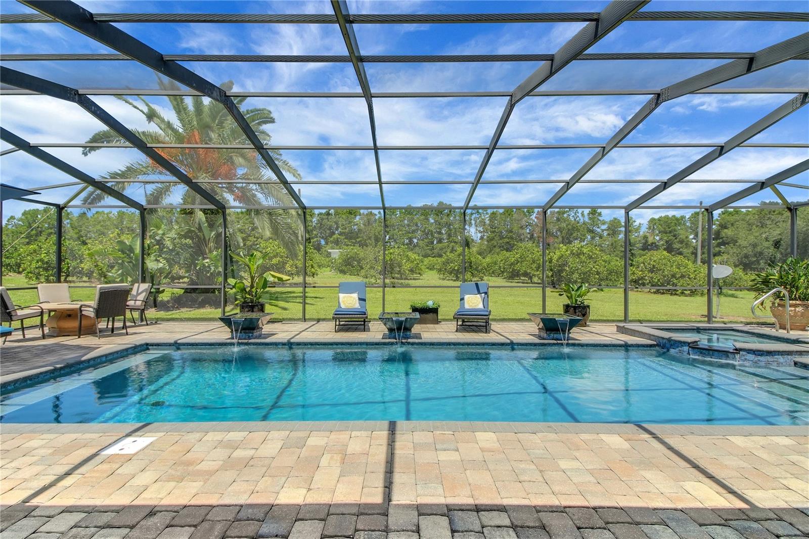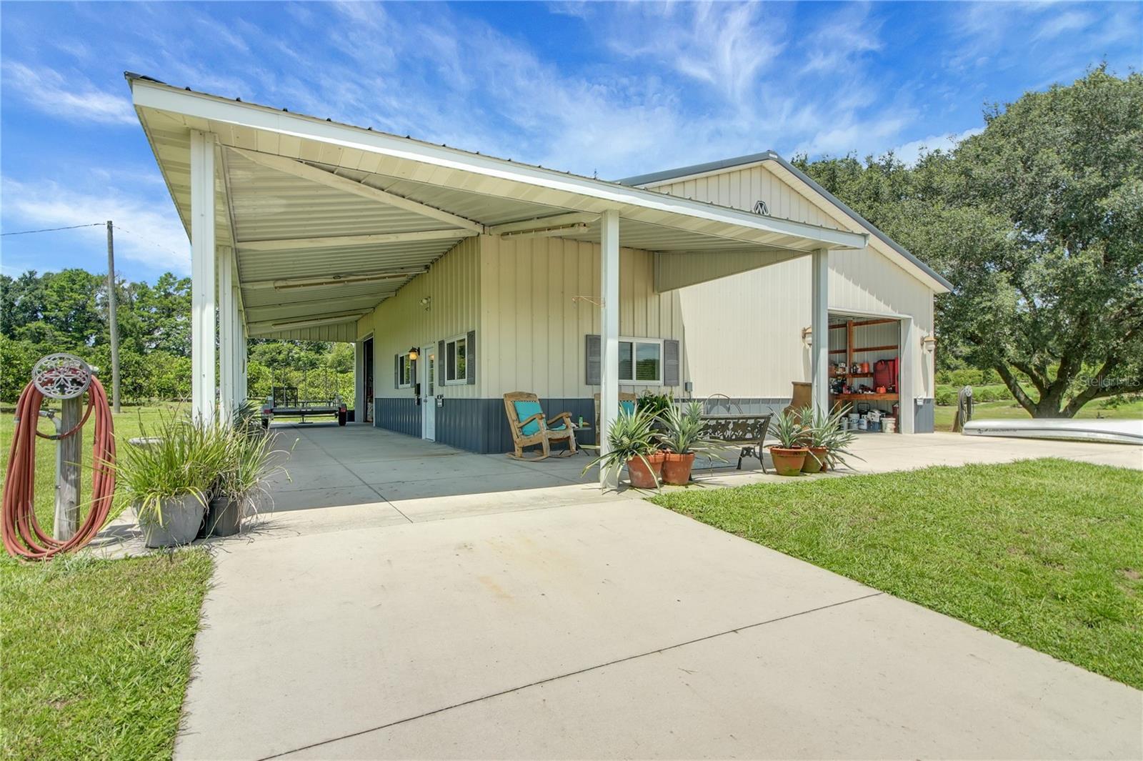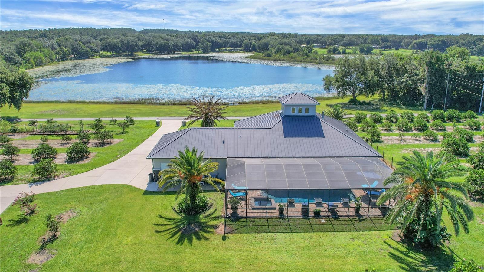 Step into luxury and tranquility with this stunning lakeview pool home nestled on 13.74 acres, built in 2015 and exterior freshly painted in 2024. The main house offers 3 spacious bedrooms and 2 bathrooms plus there is an additional 1 bed 1 bath guest quarters with kitchen plus living room! Southern Living at its finest when you are greeted by this expansive (55 x 14) Veranda with pavers overlooking your almost 100 feet of lake waterfront! From the moment you enter, you’ll notice the rich hardwood floors flowing through the living and dining areas, complemented by crown molding and plantation shutters that add elegance throughout much of the home. The chef’s kitchen is a showstopper, featuring beautiful hickory cabinets, granite countertops, stainless steel appliances, a center island, breakfast bar, and a walk-in pantry—perfect for everyday living and entertaining. The primary suite is a serene retreat with double-door entry, diagonally laid tile flooring, and abundant natural light. The ensuite bath includes a double vanity with granite, a soaking tub, and a walk-in shower with a built-in seat. Enjoy convenience with an inside laundry room offering ample storage, counter space, and a utility sink. Step outside to your private oasis—a 7.6 foot deep saltwater pool with a hot tub, all surrounded by pavers that extend into a covered lanai. Surround sound is installed throughout most of the home and continues into the pool area for the perfect entertaining experience. A durable commercial-grade metal roof and gutters offer long-term peace of mind. Guests will love the separate, tiled guest house which includes a bedroom, bathroom with walk in shower, living room, kitchen and 54 X 13 covered porch—— ideal for extended stays or potential rental income. The Living Room Fireplace, the pool heater, the fire pit and the grill are all supported by a 250 gal GAS propane tank. Attached is a spacious Morton Barn with an RV-height door 12’6 plus 2 electric 10 ft doors providing incredible storage or workshop potential. A peaceful koi pond adds to the serene atmosphere, making this property feel like a private retreat—yet it's just 15 minutes from shopping, restaurants, medical facilities, and The Villages. Copy and Paste this link to view the video: https://bbemaildelivery.com/bbext/?p=video_land&id=11FC600B-78C8-48E3-A16F-DF5D3DDDB169