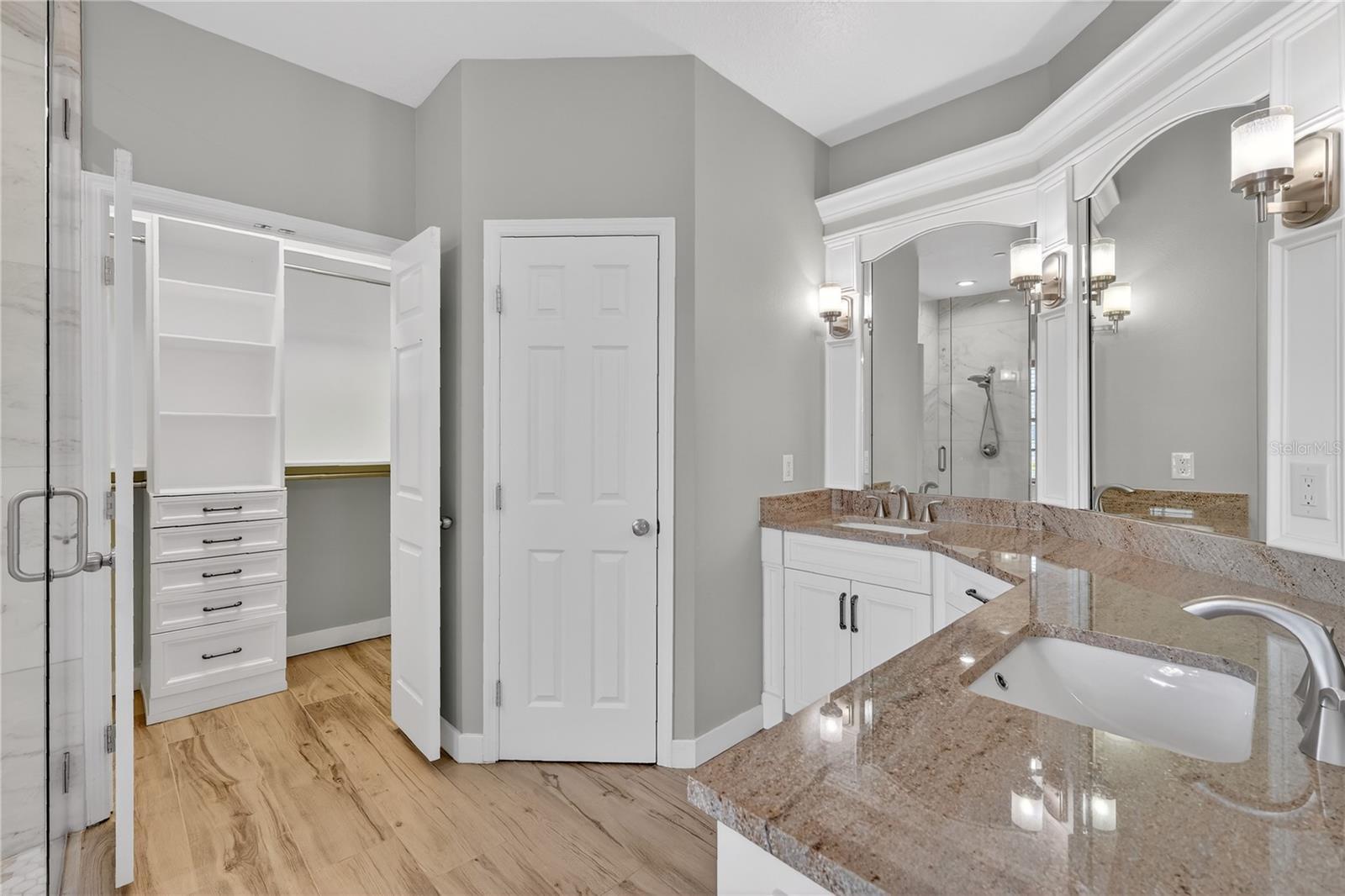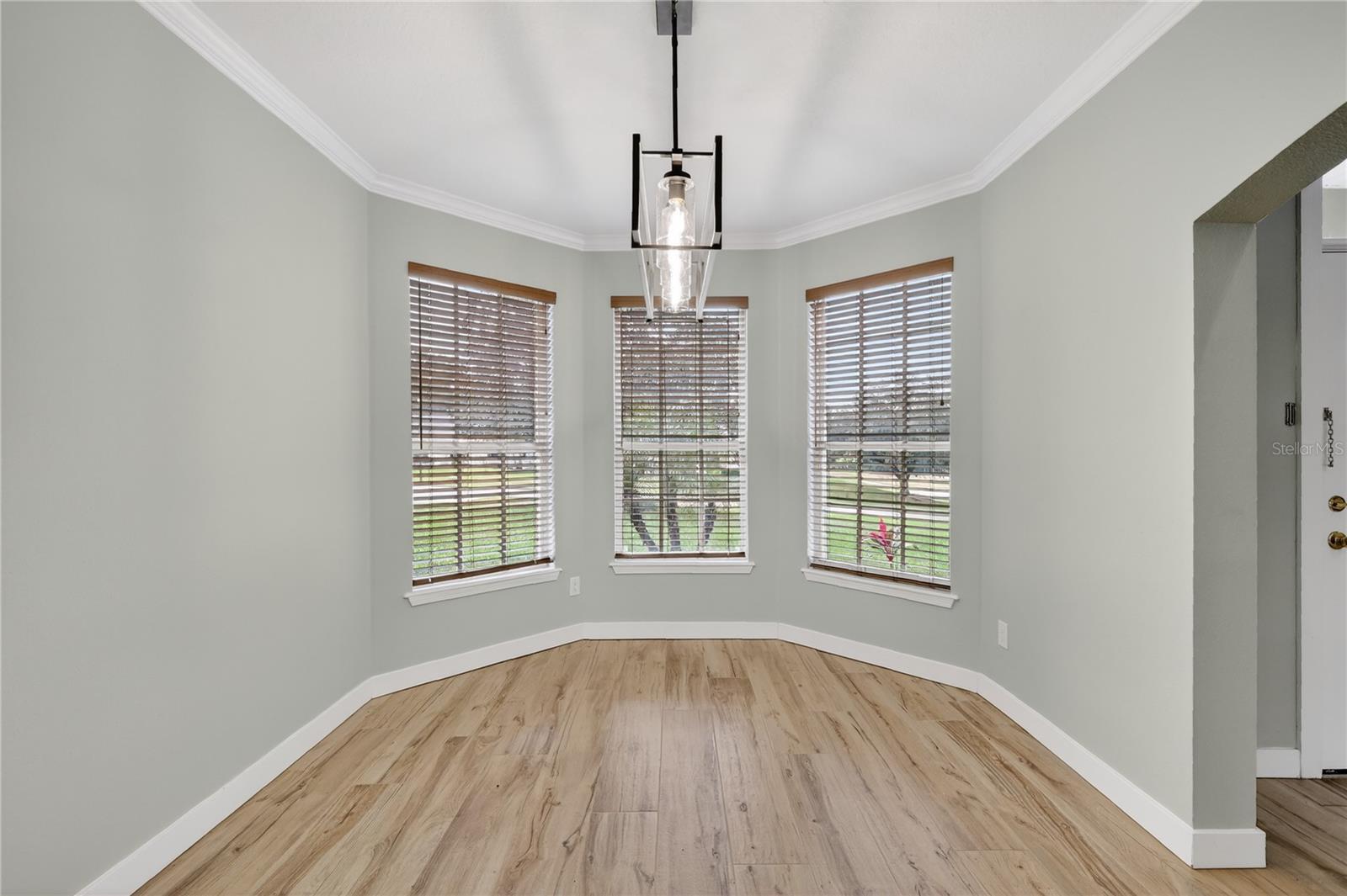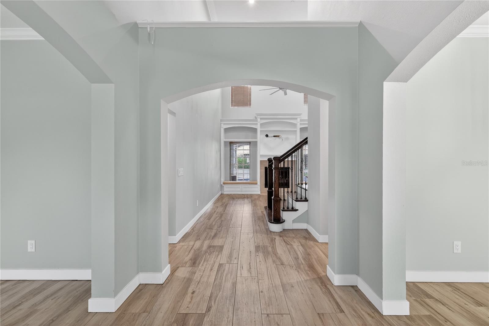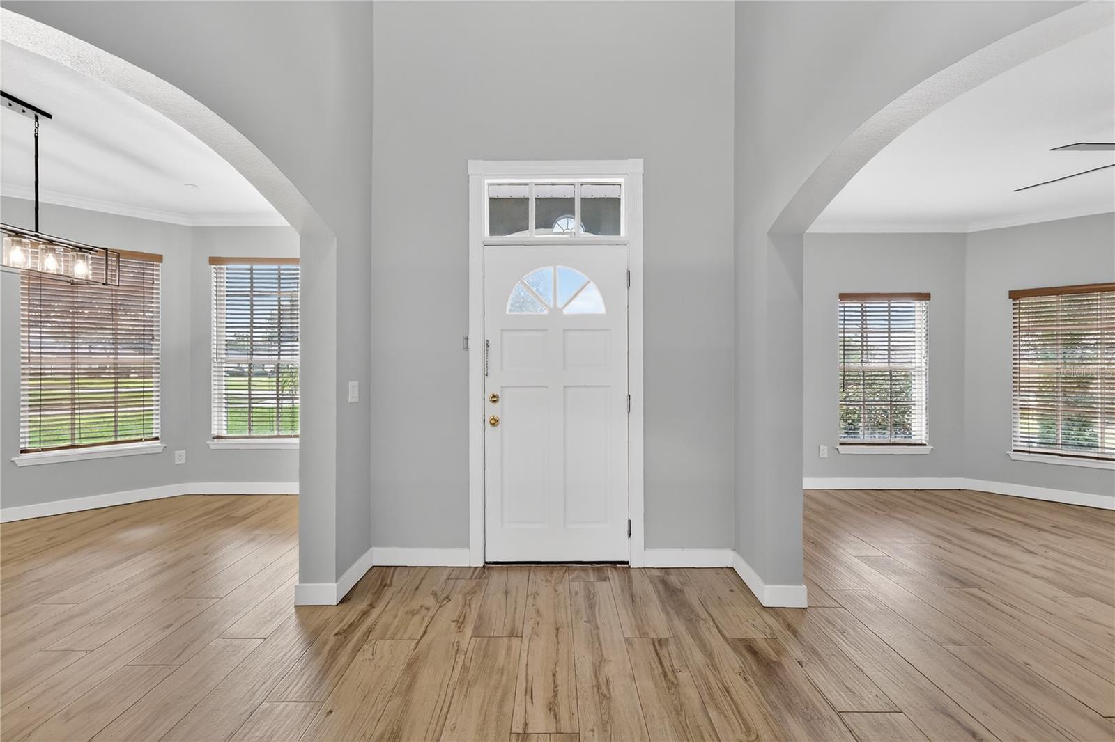- Built-in Features, Crown Molding, Eat-in Kitchen, High Ceilings, Primary Bedroom Main Floor, Split Bedroom, Walk-In Closet(s), Window Treatments