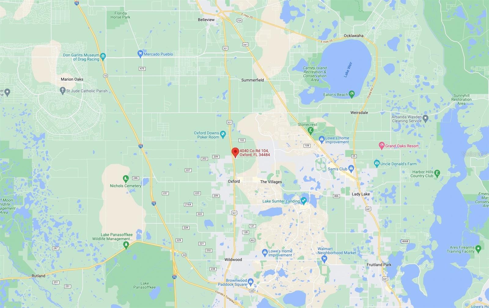 Only 1.2 miles north from intersection of CR 466 & Hwy 301, home to Aldi, 7 Eleven, Wendy’s, new apartments “Mark at Wildwood Apartments”, and new surgery center coming soon. Only 1.6 miles to “The Villages Buffalo Ridge” Power Center approved for more than 1.2 million SF of retail. Oxford has tremendous growth in retail, single family & multifamily with a lot more to come. Average Daily Traffic count along US Hwy 301 is 28,000 (FDOT). Parcels: D05-022 (9.6 acres) & D06-044 (2.4 acres) Property is accessible from CR 104 with full cut-thru from Hwy 301. One Golf, Inc. across the street at 3977 CR 104, Oxford.
