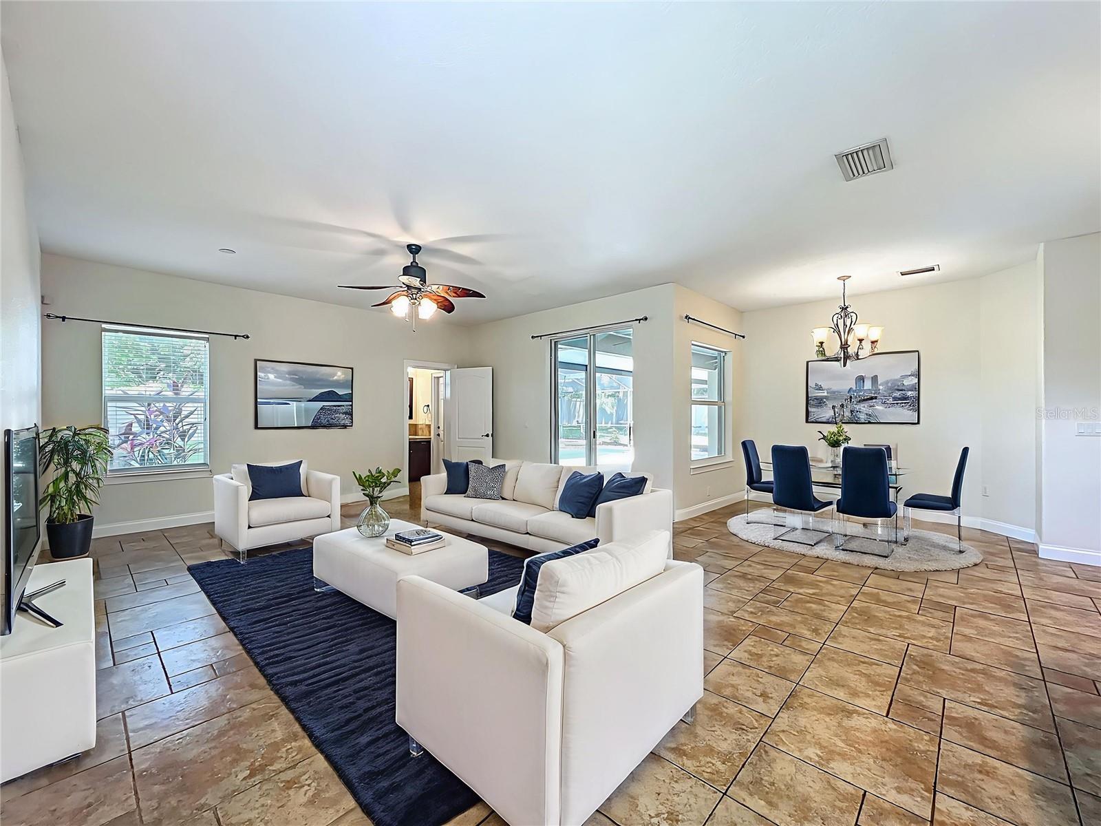 MOTIVATED SELLER! Your Dream Home with a Beautiful Saltwater Pool & Spa! ** Enjoy Florida living at its best with this stunning screened-in saltwater pool and spa featuring waterfalls and color-changing lights—perfect for relaxing evenings or weekend gatherings. This spacious 6-bedroom, 4-bath home offers over 3,300 sq. ft. of comfortable, stylish living with beautiful wood floors, crown molding, and soaring ceilings that create an open and welcoming feel. The formal living room features a cozy wood-burning fireplace, while French doors lead to a private office—ideal for remote work or quiet study. The elegant dining room is perfect for entertaining, and the open kitchen and family room design makes everyday living a breeze. The kitchen includes granite countertops, 42-inch cabinets, stainless-steel appliances, and a large breakfast bar. The first-floor master suite provides a peaceful retreat with a spa-inspired bath featuring dual vanities and an oversized tile shower with dual showerheads. Upstairs, four additional bedrooms and two full baths offer plenty of space for everyone. Outside, enjoy the large paver patio, fenced yard, and even room to park your boat. Recent updates include a **NEW ROOF (2022, lifetime warranty)**, **newer HVAC systems**, **appliances less than a year old**, **fresh interior paint**, and a **new pool filter**. Fantastic location near great schools, shopping, restaurants, and historic downtown Clermont. Minutes to the Clermont Chain of Lakes for boating and fishing, 35 minutes to Disney, and 30 minutes to the Orlando Airport.