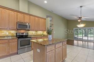 - Ceiling Fans(s), Eat-in Kitchen, High Ceilings, Kitchen/Family Room Combo, Living Room/Dining Room Combo, Open Floorplan, Stone Counters, Walk-In Closet(s), Window Treatments