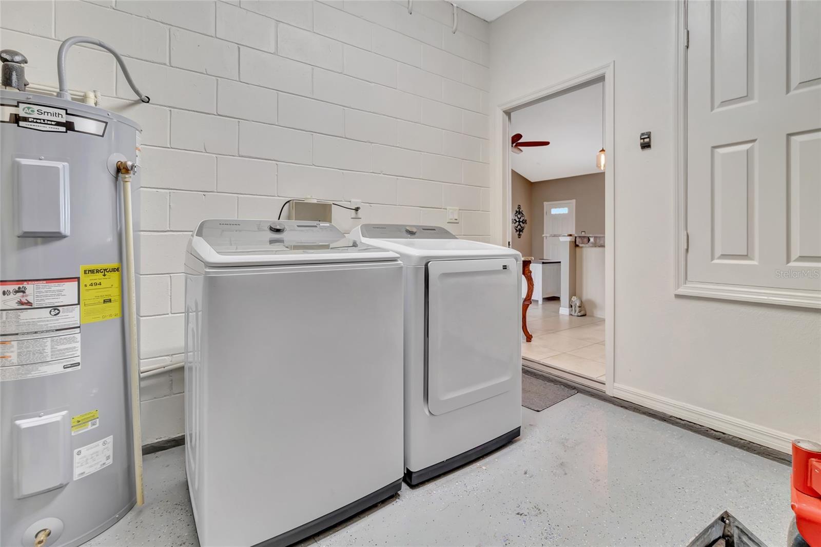 - Dishwasher, Disposal, Dryer, Electric Water Heater, Exhaust Fan, Range, Range Hood, Washer, Water Filtration System, Water Softener