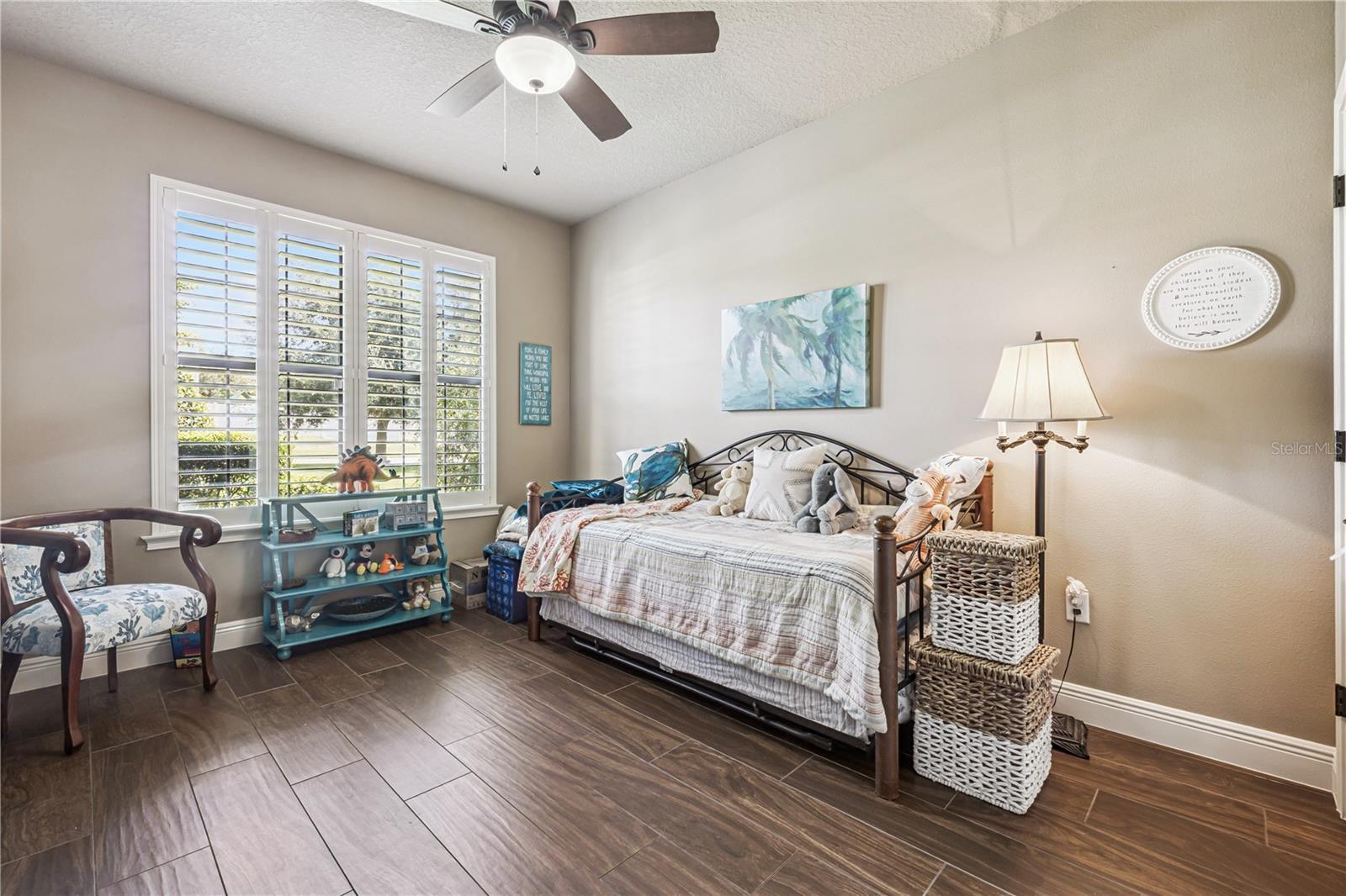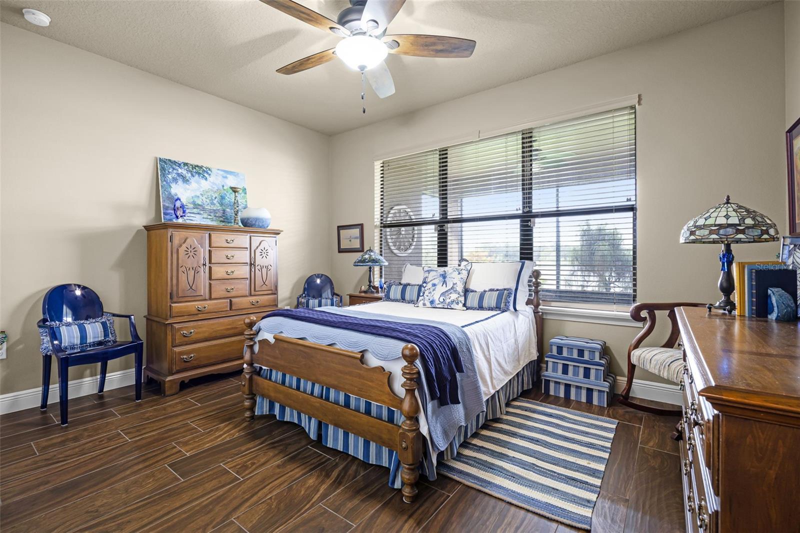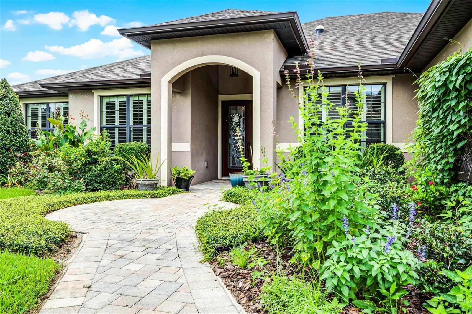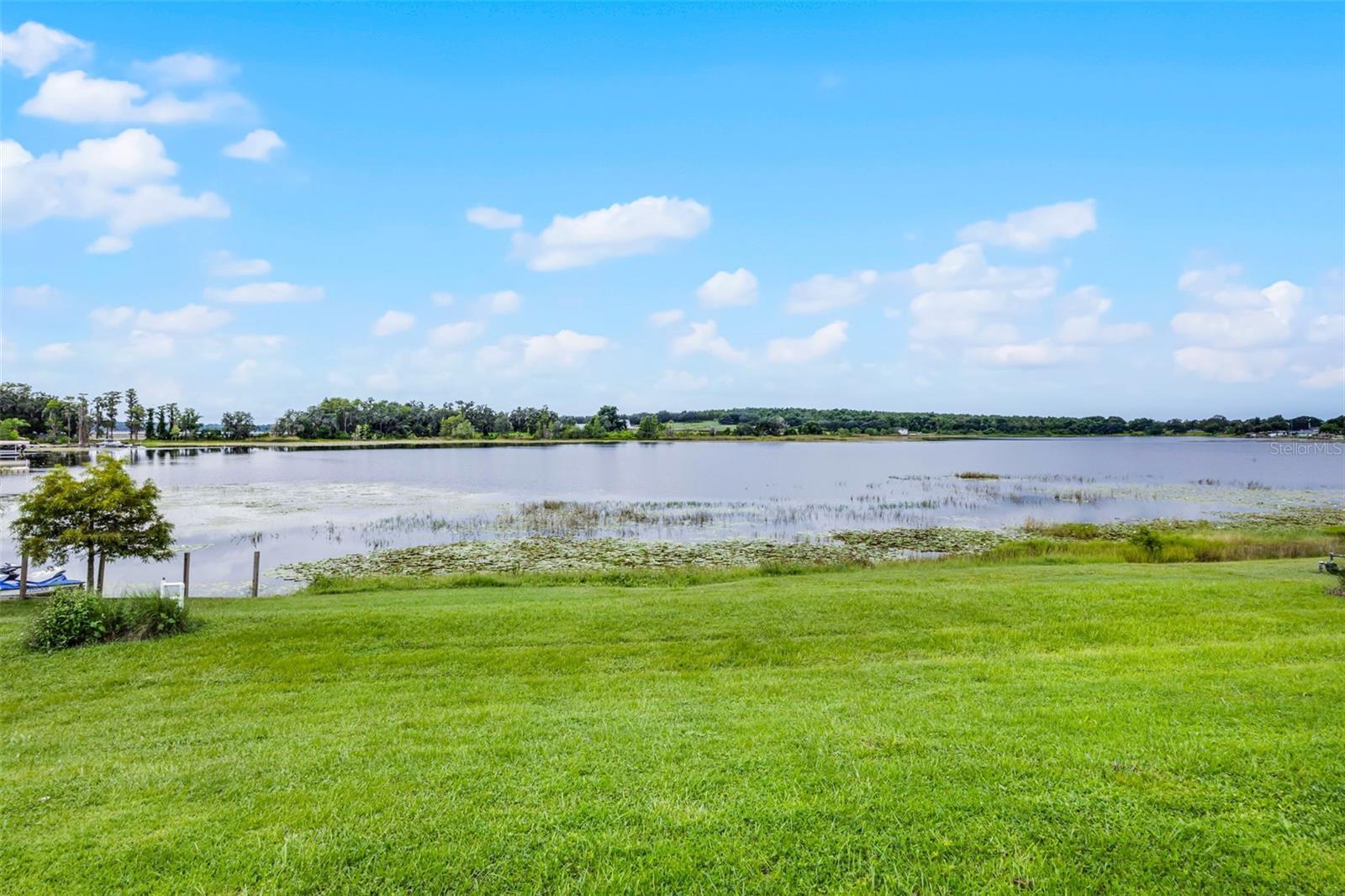Come home to a quiet and peaceful setting directly on Little Lake Nellie. The lake provides incredible sunset views and is great for fishing, skiing, jet skiing, and boating. This custom home is built with attention to detail. Home features trey ceiling with LED cove lighting and decorative panel molding, ceiling speakers, and custom drapery. Also ceramic wood look Tile flooring and plantation shutters. Custom kitchen cabinetry with pullout drawers. Office features corner sliding french doors. As you enter the front double doors, the open layout rewards you with expansive lakefront views from the great room, dining room, second bedroom and primary bedroom. End your day relaxing with cool breezes from your large waterfront lanai. Natural landscaping and lake irrigation welcome Florida native birds and butterflies.