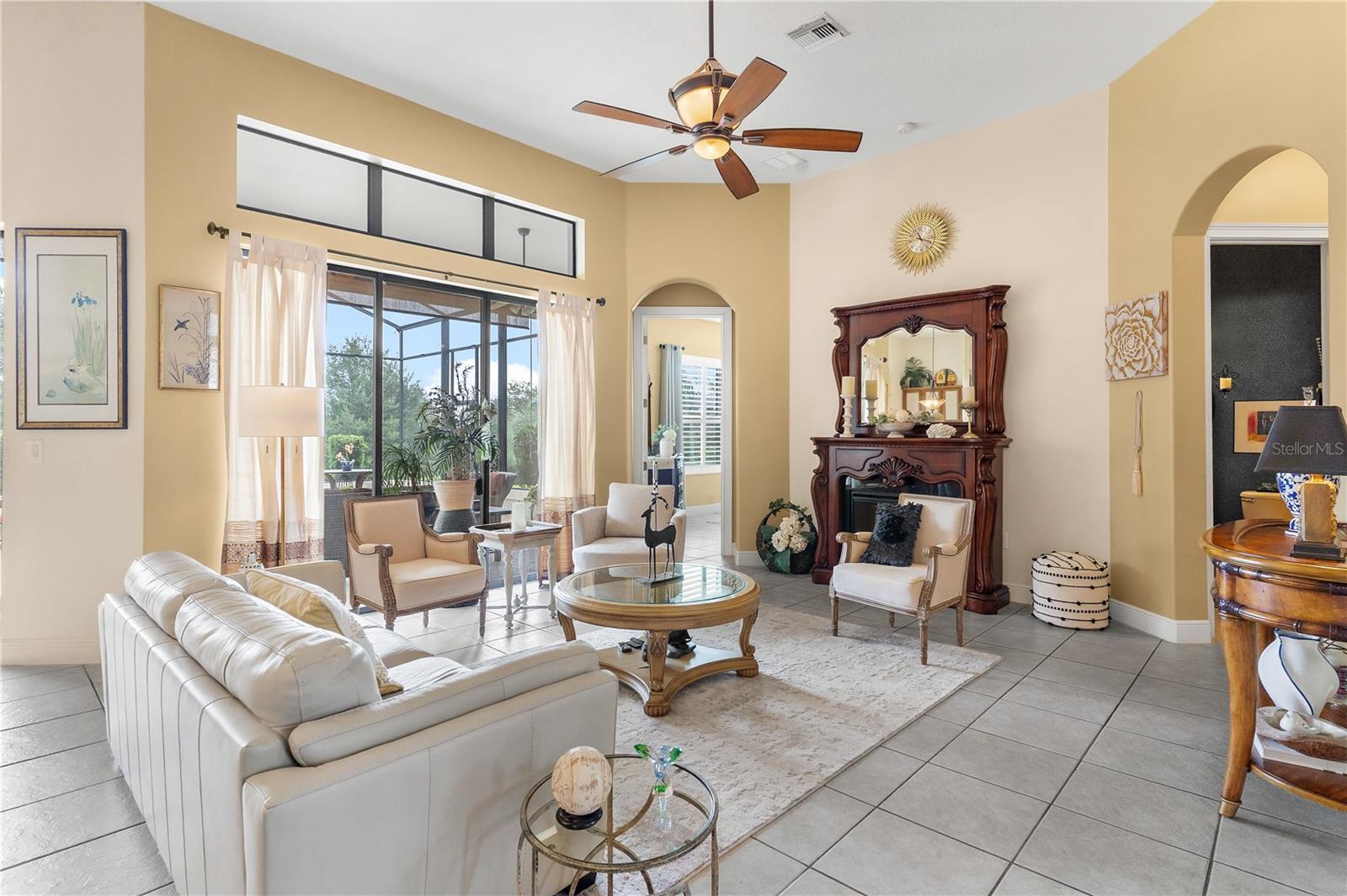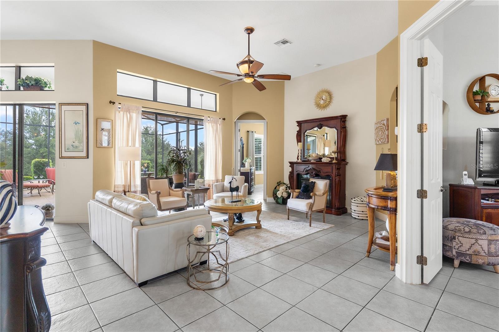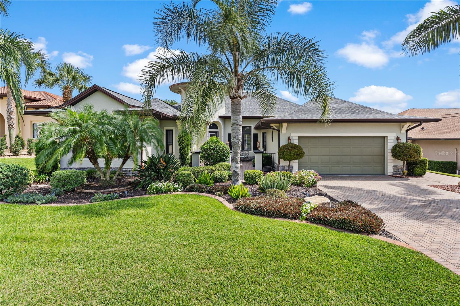DAZZLING DESIGN- UNIQUE HOME! Roof and HVAC approximately 3 years new...Step into over 2,300 sq. ft. of beautifully planned living space with this 3-bedroom, 2.5-bath home featuring huge screened in porch with "birdcage" and IN-GROUND SPA! Oversized 2-car garage with a separate golf cart entrance! Located in this sought after, 24/7 guard-gated golf community, this home blends style, comfort, and convenience. Home features great room that flows seamlessly into the oversized kitchen and breakfast area—complete with abundant cabinetry and Whirlpool "Gold Series" newer appliances to delight the family “chef”—plus a separate formal dining room ideal for entertaining! Home has a large private office/den with elegant double French doors. The primary suite boasts dual closets to include a walk-in. Enjoy a luxurious bath with privacy door, raised dual vanities, a walk-in shower, water closet and a large soaking tub with jets for "bubble bath" relaxation! The split-plan design provides privacy for bedrooms 2 & 3, which share a convenient Jack & Jill bath. Convenient inside Laundry Room with built in sink convey a washer & dryer. You will love the half bath for your guests to enjoy! Come see why this home is a standout in a premier side walked community! Clubhouse membership is optional and available for a separate fee... where you can enjoy a Community Pool Tennis, Fitness, Marina access and more! Call Today to view, it is AFFORDABLE AND ADORABLE!!
