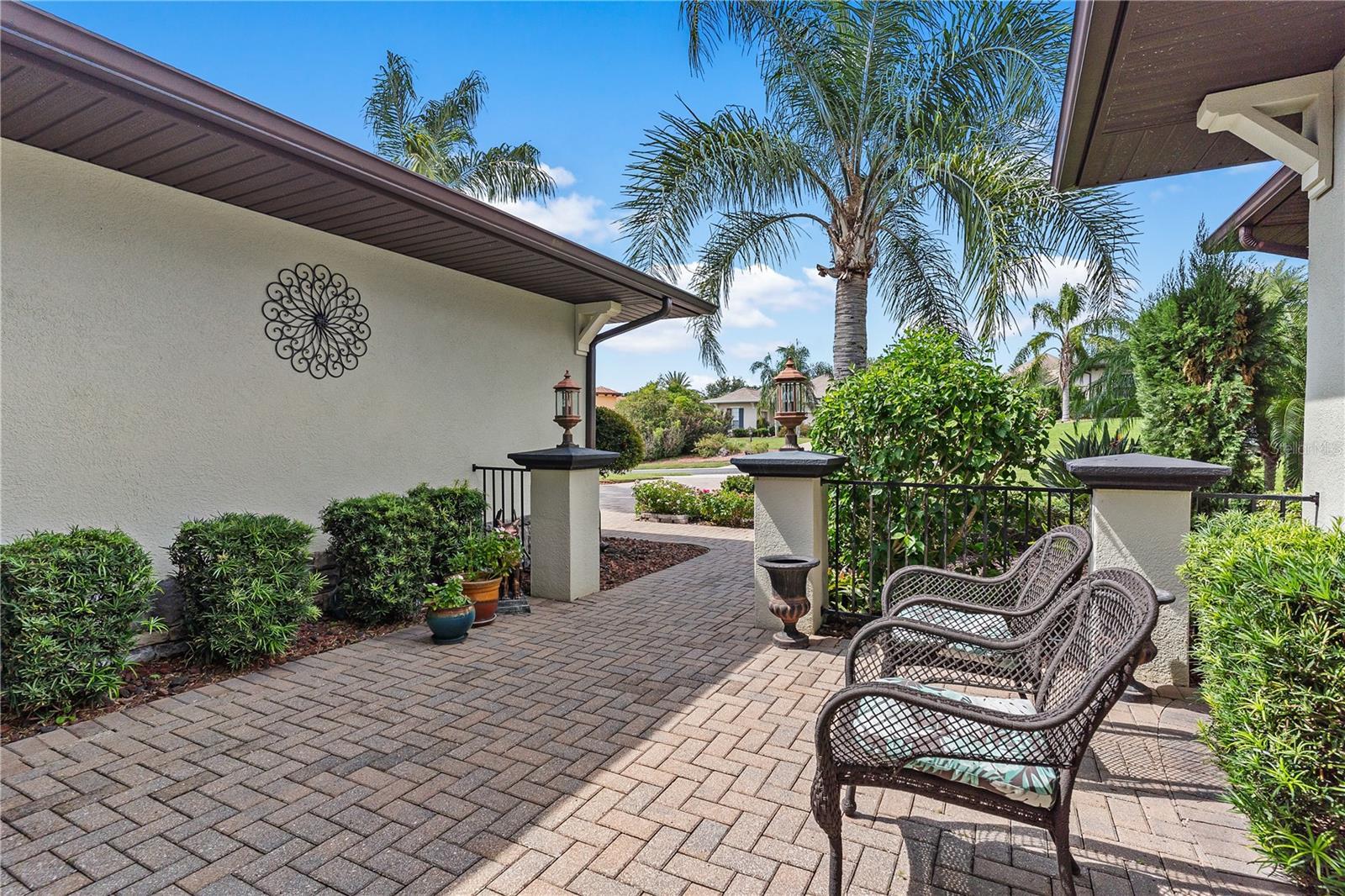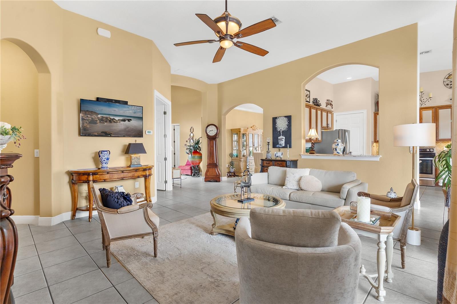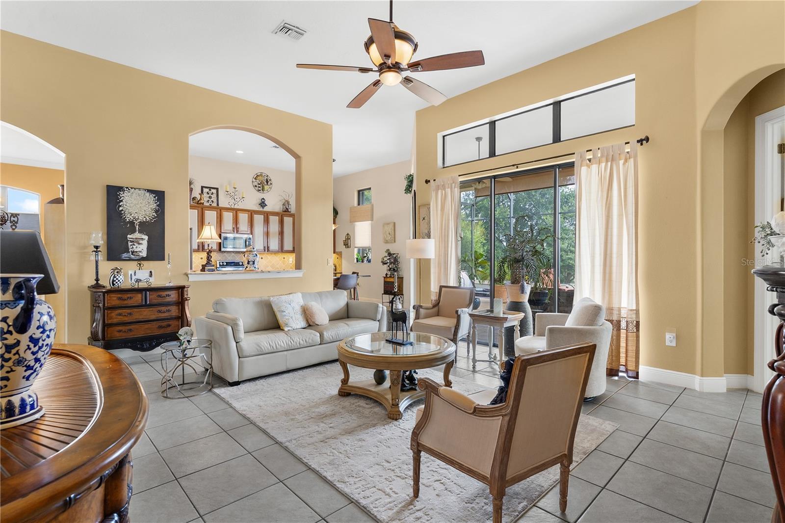 DAZZLING DESIGN- UNIQUE HOME! Roof and HVAC approximately 3 years new...Step into over 2,300 sq. ft. of beautifully planned living space with this 3-bedroom, 2.5-bath home featuring huge screened in porch with "birdcage" and IN-GROUND SPA! Oversized 2-car garage with a separate golf cart entrance! Located in this sought after, 24/7 guard-gated golf community, this home blends style, comfort, and convenience. Home features great room that flows seamlessly into the oversized kitchen and breakfast area—complete with abundant cabinetry and Whirlpool "Gold Series" newer appliances to delight the family “chef”—plus a separate formal dining room ideal for entertaining! Home has a large private office/den with elegant double French doors. The primary suite boasts dual closets to include a walk-in. Enjoy a luxurious bath with privacy door, raised dual vanities, a walk-in shower, water closet and a large soaking tub with jets for "bubble bath" relaxation! The split-plan design provides privacy for bedrooms 2 & 3, which share a convenient Jack & Jill bath. Convenient inside Laundry Room with built in sink convey a washer & dryer. You will love the half bath for your guests to enjoy! Come see why this home is a standout in a premier side walked community! Clubhouse membership is optional and available for a separate fee... where you can enjoy a Community Pool Tennis, Fitness, Marina access and more! Call Today to view, it is AFFORDABLE AND ADORABLE!!