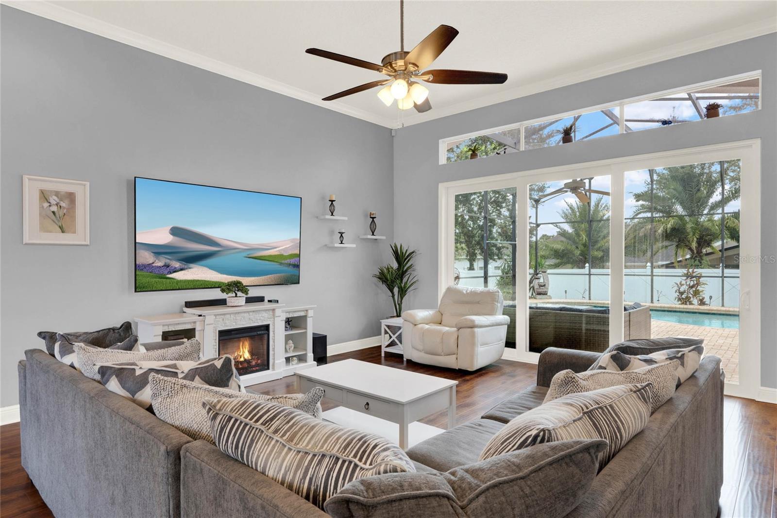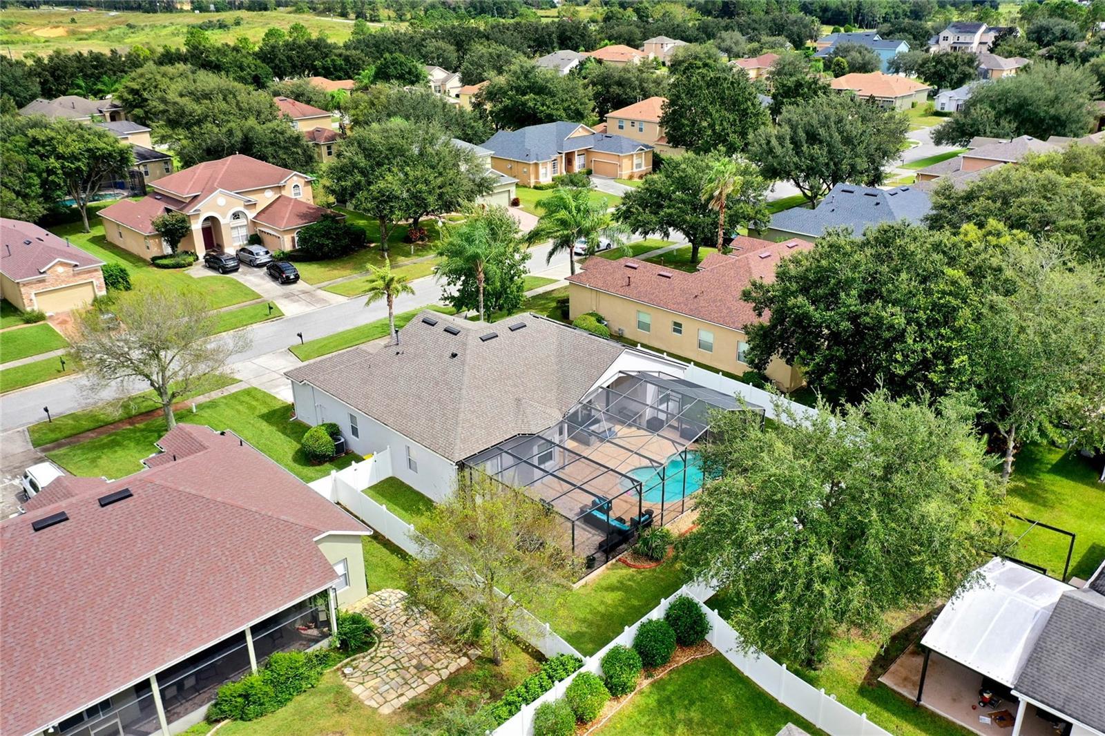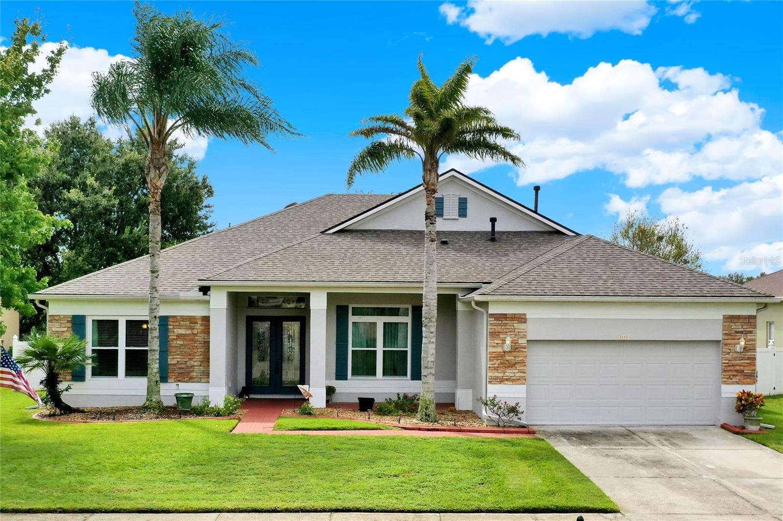 Welcome to this beautifully maintained, move-in ready 4-bedroom, 2-bathroom pool home located in the gated community of Hartwood Reserve. Offering 2,247 square feet of stylish and comfortable living space, this home is better than new with thoughtful updates throughout. As you approach, you’re greeted by large double doors on a charming covered front porch, and once inside, wood-look ceramic tile floors, crown molding, and soaring ceilings create a warm, elegant feel. Natural light pours in through 8-foot sliding glass doors, drawing your eyes straight out to the expansive screened-in pool patio—perfect for swimming, dining, relaxing, and entertaining year-round. The open-concept layout includes a beautifully updated kitchen with quartz counter tops, gas range, tile back splash, a newer refrigerator, dishwasher and microwave (2024), and a cozy breakfast nook, plus formal dining, and space for casual meals in front of the TV. The split-bedroom floor plan offers privacy, with the spacious primary suite featuring an ensuite bath with dual sinks, granite counters, a soaking tub, separate shower, and private water closet. The 2nd and 3rd bedrooms share a hall bath, while the 4th bedroom is ideal as an office, guest room, or playroom. A laundry room with storage and a mop sink adds convenience, and the vinyl-fenced backyard gives pets a safe place to run. Updates include roof (2021), HVAC (2025), kitchen (2022), flooring (2017), windows (2023), pool pump and salt cell (2024), solar heat for the pool (2020). With a newly painted exterior and plenty of indoor and outdoor space, this home truly offers the best of Florida living.