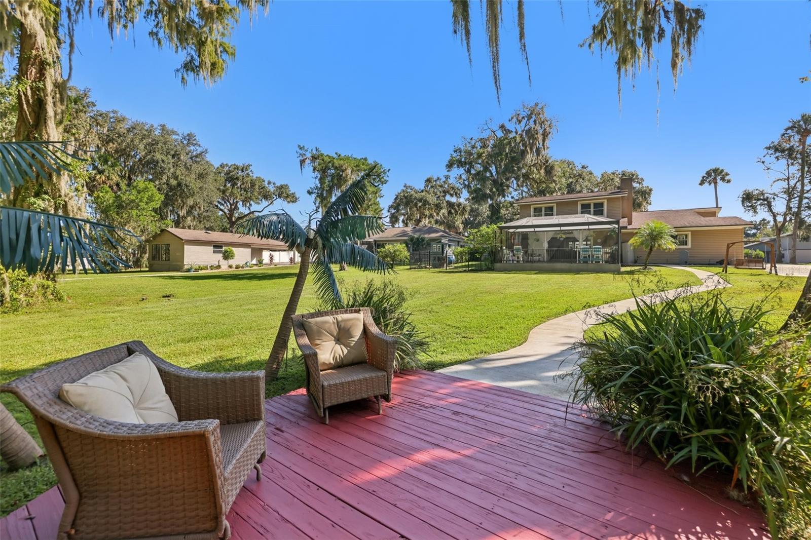 Welcome to this stunning waterfront home in the highly desirable Palmora Park, one of Leesburg’s most established and sought-after neighborhoods. This spacious 3,000+ sq ft lakefront property offers direct access to the Lake Harris Chain of Lakes, making it ideal for anyone seeking a true Florida boating lifestyle. Enjoy your own private screened-in dock with electricity, water, mini-fridge, and boat lift. This dock is perfect for sunset views, fishing, and relaxing on the water. Inside this beautiful professionally renovated 1949 home, over 3,200 sqft blend vintage character with modern comfort. This home features a split floor plan, multiple living areas, and an expansive screened patio overlooking the lagoon. The main-floor primary suite offers a wheelchair-accessible bathroom and a unique hidden walk-in closet tucked behind a mirrored door. Upstairs, a large secondary master suite provides outstanding space for guests or multigenerational living—a highly sought-after feature for today’s buyers. The gourmet kitchen offers ample storage, dedicated instant hot water faucet, smart fridge and much more. The kitchen has a huge eat in dining area and easy access to living spaces. Large windows bring in natural light and capture peaceful water views throughout the home. Outside, the private backyard flows gently to the water’s edge, creating an ideal indoor-outdoor living experience. Located in a golf cart–friendly community with neighborhood parks and quick access to downtown Leesburg, this home combines luxury, lifestyle, and location. Rarely does a waterfront property in Palmora Park with this much character and square footage become available. The seller has put a lot of thought into this property to make it not only move in ready for the next owners but to make it, so they don't need to worry for years to come. Example is when getting a new AC earlier this year they had all ducts cleaned and sealed throughout the whole house and added a UV Light for cleaner air. They also just installed a brand-new roof with top-of-the-line shingles with a 15-year warranty and maintenance package where Eustis Roofing will clean and maintain the roof for 15 years so the roof will last even longer. This home is designed for you to enjoy your life on the water while also providing plenty of storage from the kitchen cabinets, loads of closets, 2 car garage, long driveway and an oversize shed that was lifted and rebuilt in 2024. This shed is a great workshop as it has electricity and a waterspout outside. The shed is also insulated and ready for whatever the next owner wants to store or work on!! All of this in Leesburg’s most beloved, golf-cart-friendly neighborhood just steps from downtown shops, dining, and festivals, with no HOA. A new roof (Oct 2025), new AC (April 2025), and professional renovations (2021/2022) make this rare Palmora Park treasure move-in ready for its next chapter.