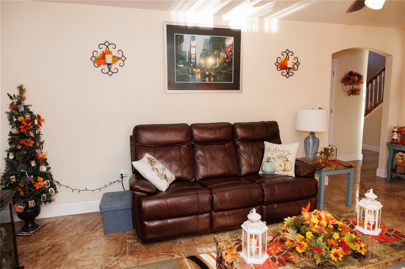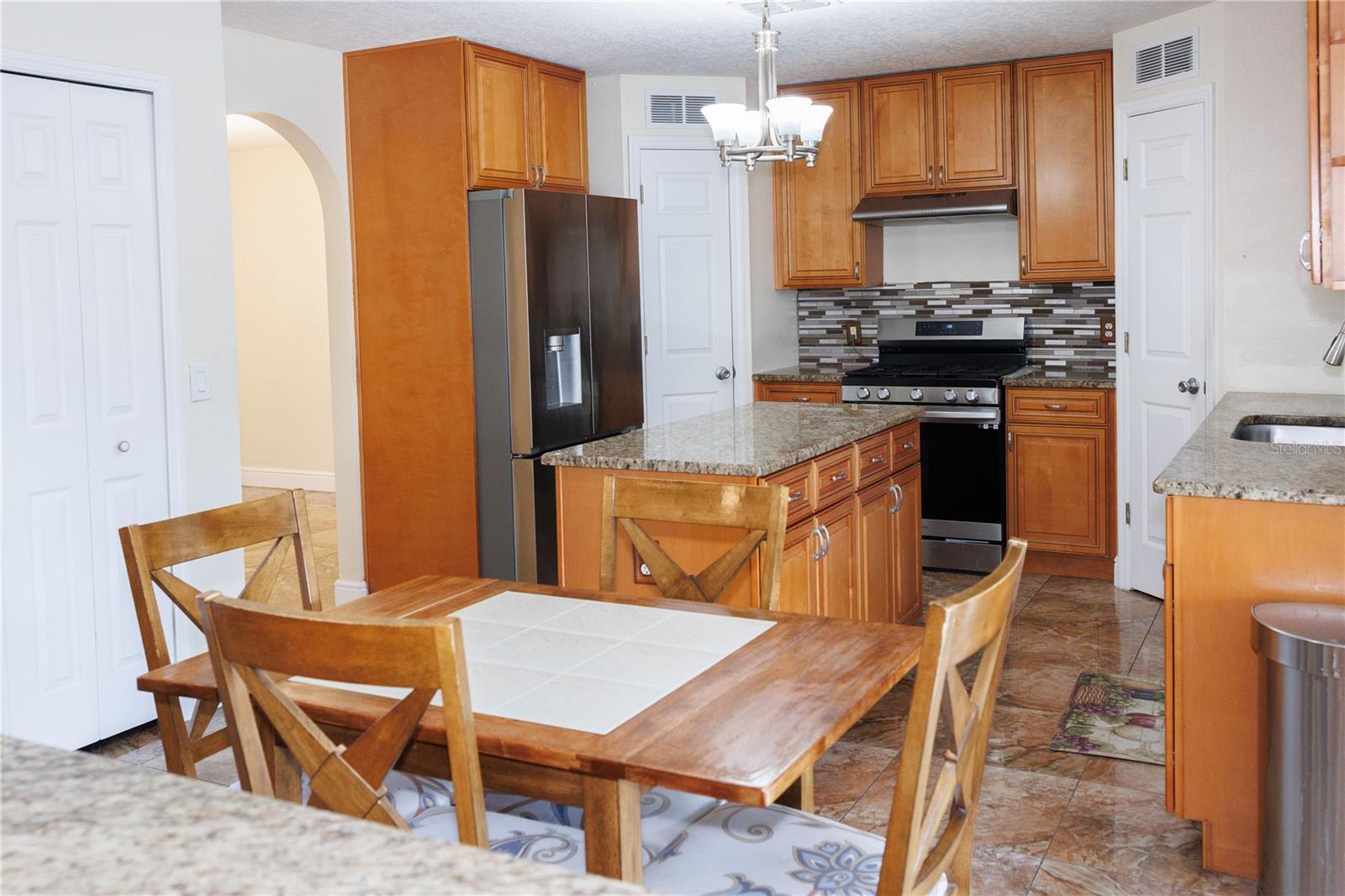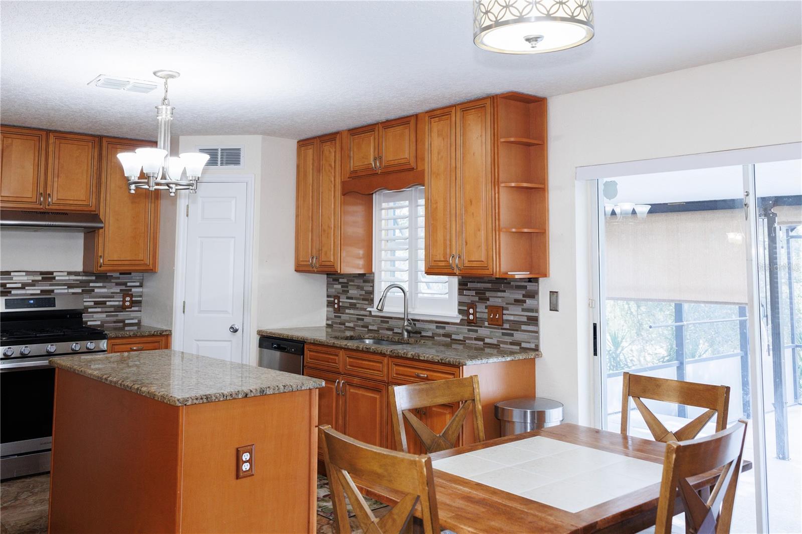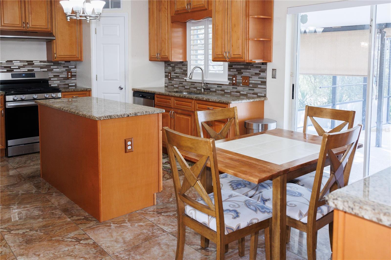 Welcome to your dream home in the highly sought-after Park Ridge community! This beautifully maintained 4-bedroom, 2.5-bath home offers 2,320 sq ft of thoughtfully designed living space and a screened-in pool oasis perfect for entertaining. Inside, you’ll find 20" tile flooring throughout the main living areas, a custom-built office with full-wall cabinetry, and a remodeled kitchen featuring 41" custom cabinets, granite countertops, dual ventilated pantries, and soft-close drawers. The expanded island features built-in power outlets, and the gas stove can be easily converted to electric. Enjoy the open-concept living and dining areas, a spacious primary suite with two walk-in closets, and a spa-like bathroom with dual sinks, a garden tub, and a separate shower. Smart home features include app-controlled shades and remote pool lighting. Step outside to a private screened-in pool with UV-blocking shades, upgraded landscaping with custom concrete edging, an irrigation system, and overhead garage storage. Park Ridge also has an exclusive community beach with access to Lake Minneola! Additional updates include a new roof (2018) and AC (2021). Conveniently located near the Florida Turnpike, top-rated schools, shopping, and dining. Low HOA of just $27/month. Interior Features Bright open floor plan with 20-inch gloss tile throughout main living areas. Dedicated custom-built office with full wall cabinetry and built-in desk. The remodeled kitchen (2015) features 41-inch custom New Yorker cabinets, granite countertops, soft-close drawers, dual ventilated pantries, and a large island with integrated power outlets for cooking or casual dining. Stainless appliances included (gas stove convertible to electric, dishwasher, refrigerator, washer, dryer). Smart shades (remote/app-controlled), modern half bath, and spacious upstairs with remodeled bath and luxurious primary suite featuring dual walk-in closets. Exterior Features Private outdoor retreat with screened pool, child-safe enclosure, and Coolaroo UV-blocking shades for year-round enjoyment. Upgraded landscaping with custom brick-red concrete edging, irrigation system, and low-maintenance curb appeal. Roof replaced in 2018; energy-efficient AC (2021). Two-car garage with overhead storage. Situated on a 10,693 sq ft lot, this home offers space, comfort, and convenience, just minutes from parks, schools, and shopping—with a low monthly HOA fee of $27. This home is perfect for those seeking modern Florida living, complete with thoughtful upgrades both inside and out. Furniture shown in the vacant home photos (dinette table, chair, foot bench) is available for purchase by the new owner. This custom home combines comfort, functionality, and modern upgrades in one stunning package — schedule your private showing today!