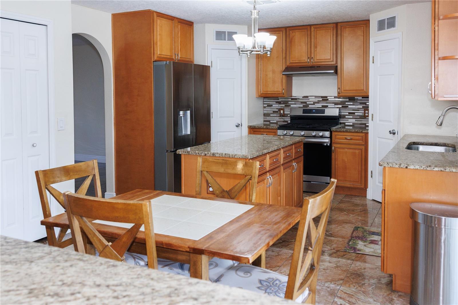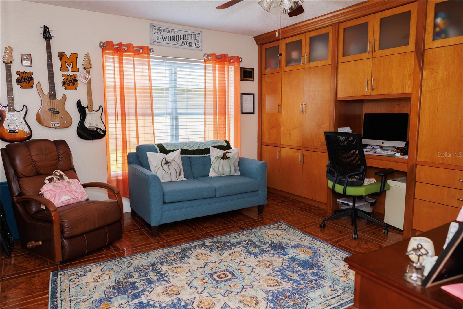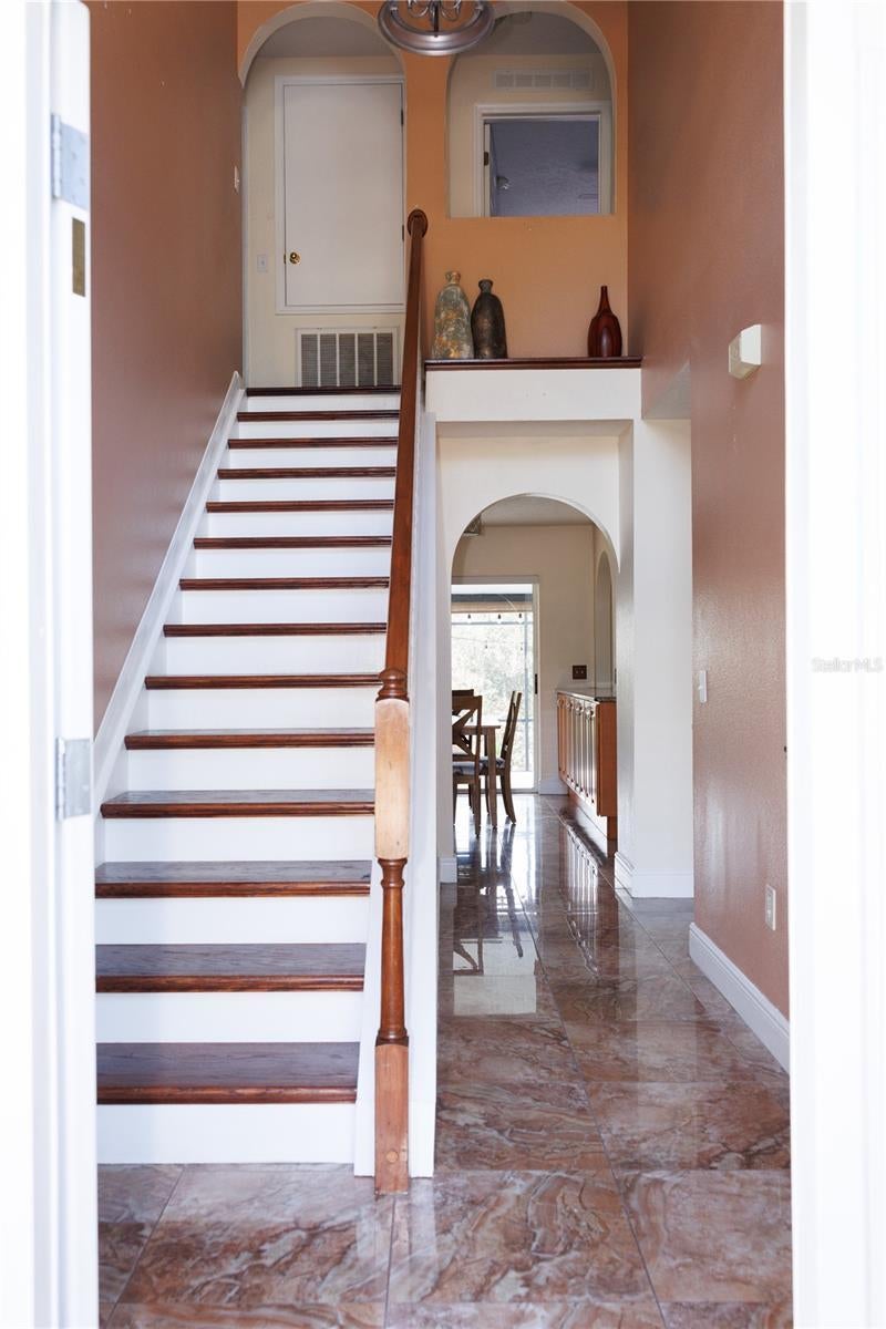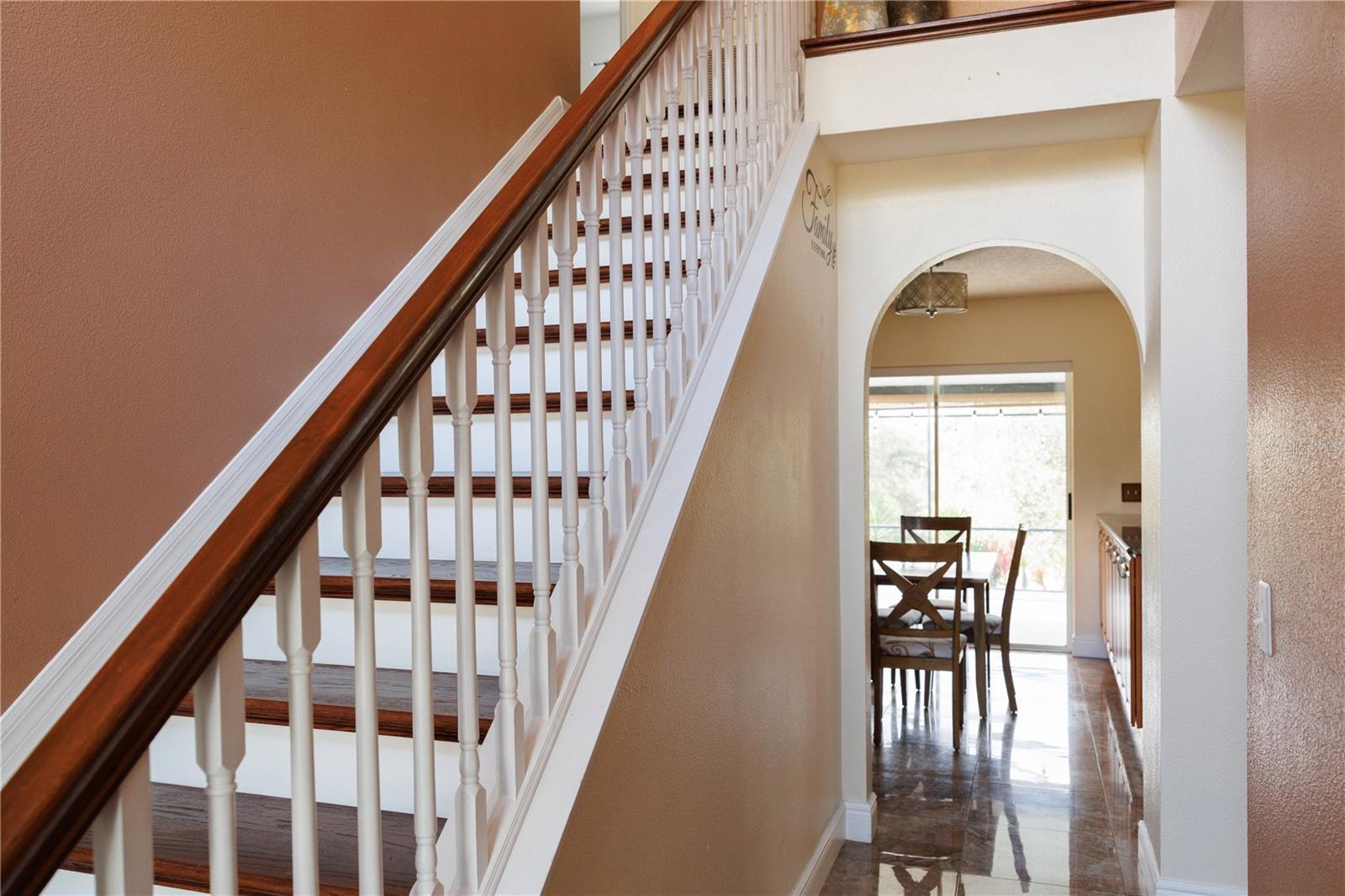 Welcome to your dream home in the highly sought-after Park Ridge community! This beautifully maintained 4-bedroom, 2.5-bath home offers 2,320 sq ft of thoughtfully designed living space and a screened-in pool oasis perfect for entertaining. Inside, you’ll find 20" tile flooring throughout the main living areas, a custom-built office with full-wall cabinetry, and a remodeled kitchen featuring 41" custom cabinets, granite countertops, dual ventilated pantries, and soft-close drawers. The expanded island features built-in power outlets, and the gas stove can be easily converted to electric. Enjoy the open-concept living and dining areas, a spacious primary suite with two walk-in closets, and a spa-like bathroom with dual sinks, a garden tub, and a separate shower. Smart home features include app-controlled shades and remote pool lighting. Step outside to a private screened-in pool with UV-blocking shades, upgraded landscaping with custom concrete edging, an irrigation system, and overhead garage storage. Park Ridge also has an exclusive community beach with access to Lake Minneola! Additional updates include a new roof (2018) and AC (2021). Conveniently located near the Florida Turnpike, top-rated schools, shopping, and dining. Low HOA of just $27/month. Interior Features Bright open floor plan with 20-inch gloss tile throughout main living areas. Dedicated custom-built office with full wall cabinetry and built-in desk. The remodeled kitchen (2015) features 41-inch custom New Yorker cabinets, granite countertops, soft-close drawers, dual ventilated pantries, and a large island with integrated power outlets for cooking or casual dining. Stainless appliances included (gas stove convertible to electric, dishwasher, refrigerator, washer, dryer). Smart shades (remote/app-controlled), modern half bath, and spacious upstairs with remodeled bath and luxurious primary suite featuring dual walk-in closets. Exterior Features Private outdoor retreat with screened pool, child-safe enclosure, and Coolaroo UV-blocking shades for year-round enjoyment. Upgraded landscaping with custom brick-red concrete edging, irrigation system, and low-maintenance curb appeal. Roof replaced in 2018; energy-efficient AC (2021). Two-car garage with overhead storage. Situated on a 10,693 sq ft lot, this home offers space, comfort, and convenience, just minutes from parks, schools, and shopping—with a low monthly HOA fee of $27. This home is perfect for those seeking modern Florida living, complete with thoughtful upgrades both inside and out. Furniture shown in the vacant home photos (dinette table, chair, foot bench) is available for purchase by the new owner. This custom home combines comfort, functionality, and modern upgrades in one stunning package — schedule your private showing today!