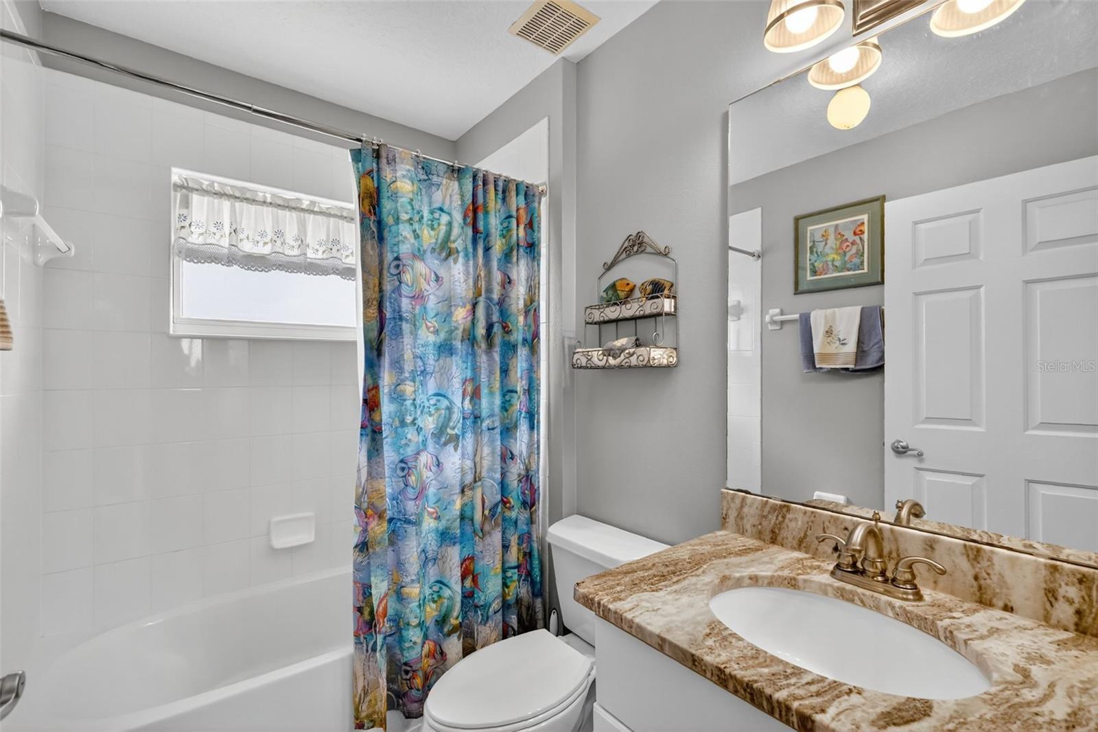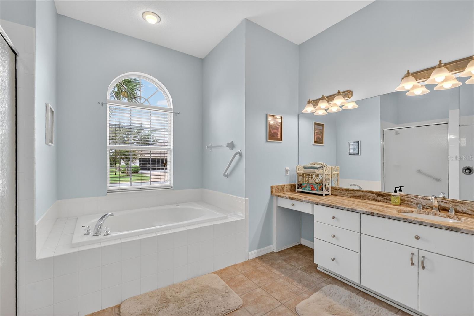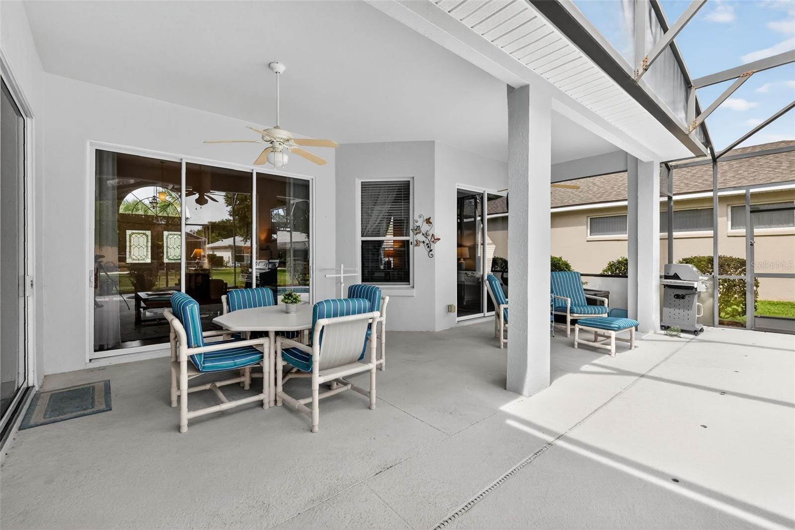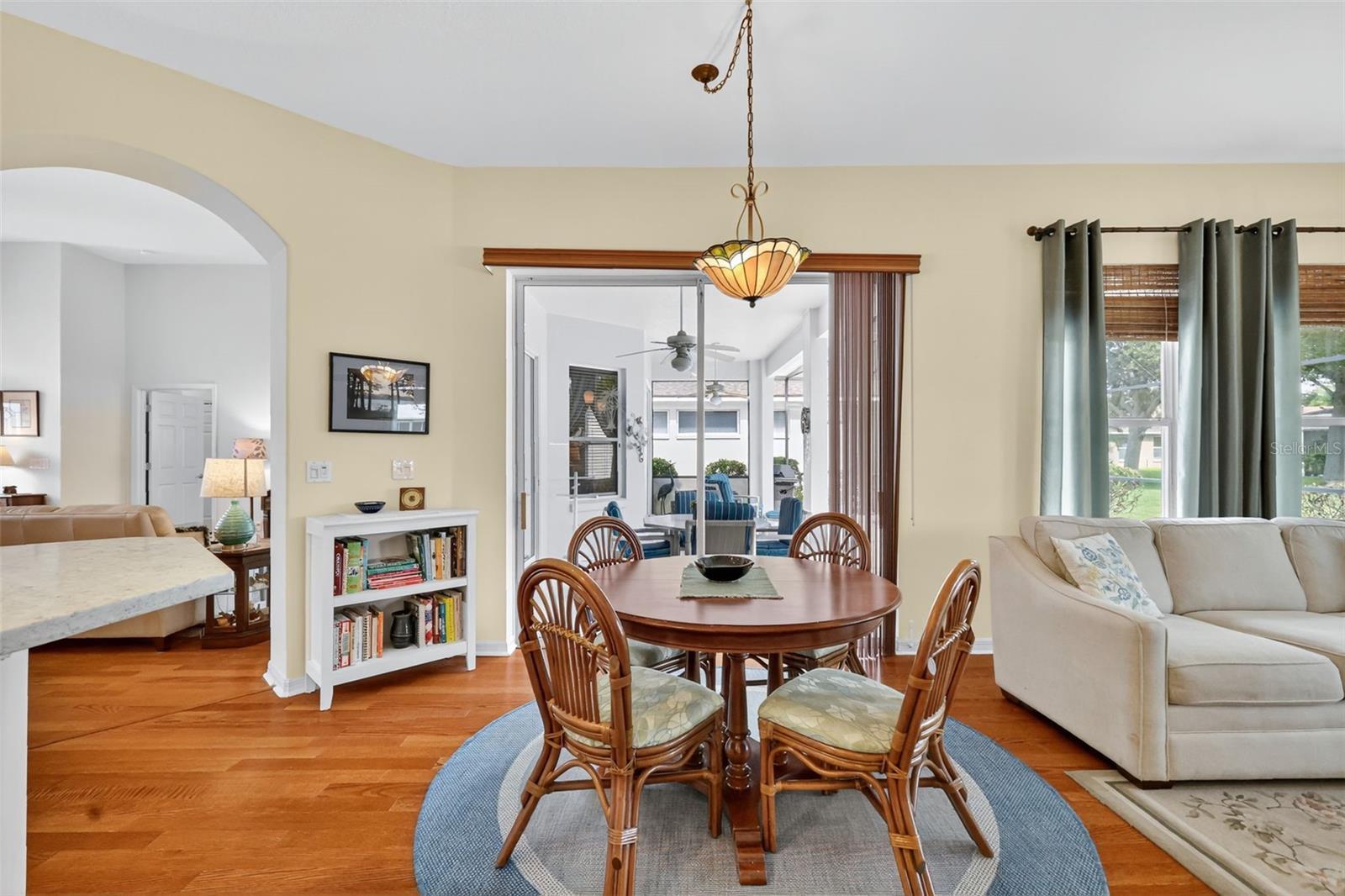 Welcome to this beautifully landscaped Scarsborough model pool home with a golf cart garage, perfectly situated in the desirable 55+ Royal Highlands community with guarded entry. Designed for both comfort and style, this 3-bedroom, 2-bath residence offers a formal living and dining room, a spacious family room, and an open split-bedroom layout filled with natural light. The remodeled kitchen (2017) is a true highlight, featuring 42” cabinetry, granite counters, gas range, closet pantry, built-in microwave, breakfast bar, and a cheerful breakfast nook. The handicap-accessible primary suite boasts two generous walk-in closets and a spa-like bath with a jetted tub, walk-in shower with grab bar, and linen closet. Enjoy year-round Florida living with your screen-enclosed, heated swimming pool—updated with all new equipment just two years ago—and freshly painted pool deck (2023). Roof (2015), A/C & furnace (2011) with Aprilaire HEPA filter, Radiant barrier, transferable termite bond, and approximately 80 sq. ft. of floored attic storage. The home also includes an interior laundry with utility sink, washer/dryer (gas dryer added 2017), high ceilings in the living and family rooms, and a sliding screen door on the two + golf cart garage. Royal Highlands is a premier, resident-owned community offering two pools (indoor & outdoor), an 18-hole golf course, restaurant, pro shop, tennis & pickleball, softball, billiards, fitness center, and a grand recreation hall for concerts, plays, and social events. HOA fee includes cable, internet, and secure RV/boat storage.