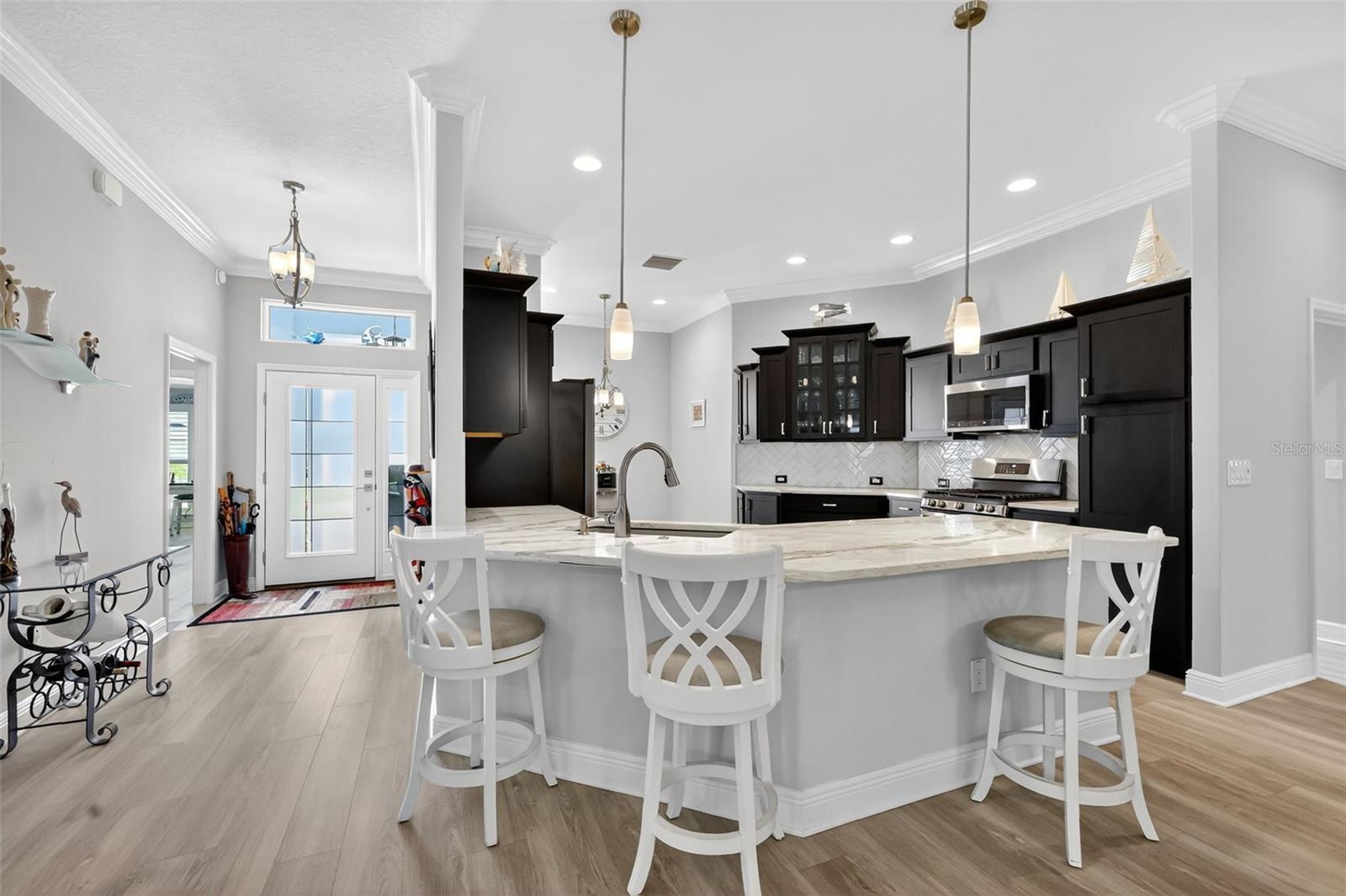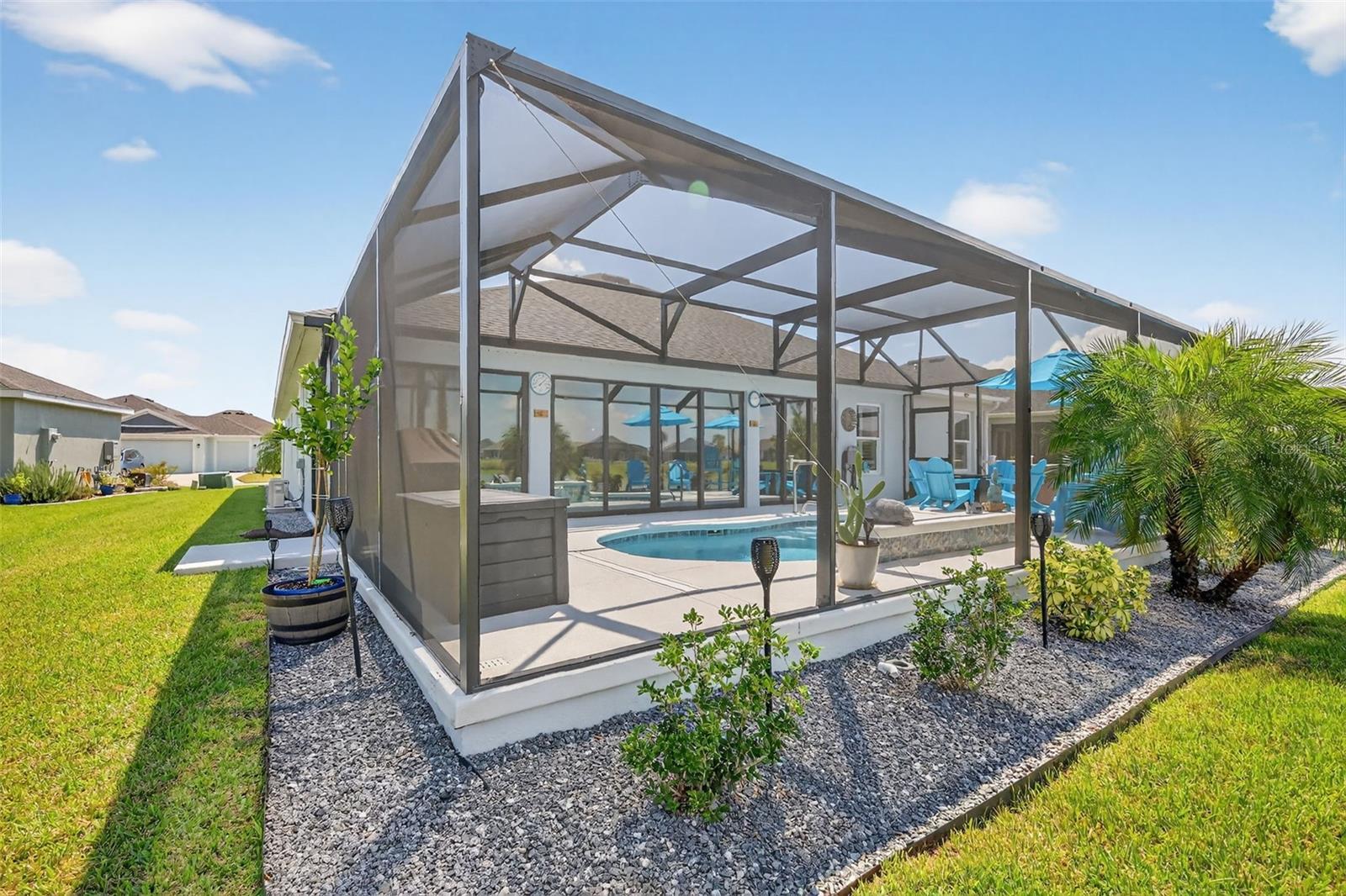 ENJOY SPECTACULAR WATERFRONT VIEWS in this ABSOLUTELY STUNNING 3/2 EXPANDED BEGONIA with CUSTOM SWIMMING POOL, PAVER DECK, 330sf CLIMATE-CONTROLLED ENCLOSED COVERED LANAI, and OVERSIZED 667sf TWO CAR + GOLF CART GARAGE in the CONTEMPORARY Village of Newell! JUST MINUTES from Sawgrass Grove; Franklin, Homestead, and Ezell Pool and Recreation Centers; and Southern Oaks Championship Course! STONED planting beds with CURBED edges, DECORATIVE STAMP driveway, and a beautiful FROSTED GLASS door with transom, side-lite, and RETRACTABLE SCREEN welcome you into the foyer of this MAGNIFICENT home! Built in 2023, this nearly NEW home offers LOW-MAINTENANCE peace of mind with MODERN DESIGN and boasts an ABUNDANCE of UPGRADES including PLANTATION SHUTTERS, LUXURY VINYL PLANK FLOORING throughout, HIGH BASEBOARDS, and Nova WATER FILTRATION and FULL HOUSE SURGE PROTECTION! The main living area features an EXPANSIVE OPEN LAYOUT with SOARING VAULTED ceilings adorned with CROWN MOLDING. From these rooms, sliding glass doors with a CUSTOM CORNICE lead you into the 30’x11’ CLIMATE-CONTROLLED ENCLOSED LANAI! This FANTASTIC room adds 330sf of living area and features a MINI-SPLIT and four sets of FULL-PANEL, TINTED sliding glass doors that open to the INCREDIBLE OUTDOOR OASIS of the POOL and SPA area! The HEATED POOL boasts a WATERFALL and a HIDDEN, IN-GROUND SOLAR COVER! If you’ve been dreaming of RESORT-STYLE LIVING AT HOME—THIS IS IT! Dive into the refreshing POOL, soak up the sun on the deck, or simply enjoy the PEACEFUL WATERFRONT VIEWS! Back inside, the AMAZING kitchen showcases STAGGERED EBONY cabinetry with PULL-OUTS, QUARTZ countertops, built-in PANTRY, STAINLESS appliances, herringbone TILE backsplash, GAS cooking, COUNTER-HEIGHT EAT-IN counter, and an ADJACENT DINETTE. The luxurious primary bedroom boasts a TRAY ceiling and TWO LARGE CUSTOMIZED WALK-IN closets. Its en-suite bathroom features JACK & JILL vanities, QUARTZ counters, TILED WALK-IN ROMAN shower, BUILT-IN LINEN closet, and separate water closet. The SPLIT floor plan offers two additional bedrooms and second bathroom, conveniently hidden behind a POCKET door near the front of the home, creating a PRIVATE GUEST WING and/or QUIET home office. Bedroom two boasts a walk in BAY window, TRAY ceiling, and built-in closet. A third bedroom features VAULTED ceiling, DOUBLE windows, and built-in closet. The second bathroom offers a SPACIOUS blue vanity with QUARTZ countertop, TILED WALK-IN shower, and a hallway LINEN closet. A centrally located INTERIOR laundry room features EBONY cabinetry, shelving, and a utility sink. Completing the package is an OVERSIZED 31’x25’ TWO CAR + GOLF CART GARAGE with MOTORIZED garage SCREEN, attic insulation and exhaust fan, insulated garage doors, and attic access stairs. DON'T MISS YOUR OPPORTUNITY TO MAKE THIS EXCEPTIONAL WATERFRONT POOL HOME YOUR OWN! The Village of Newell is close to Sawgrass Grove, Brownwood Paddock Square, and the new upcoming Eastport Square; six neighborhood pools and recreation centers (Franklin, St. Catherine, Bradford, Aviary, Hawkins, Homestead); three large regional recreation complexes (Ezell, Everglades, and Rohan); Southern Oaks Country Club and Championship Golf Course; Clifton Cove Putting Course; Mickylee Pitch and Putt; shopping and dining at Magnolia Plaza; Homestead dog park for your furry friends and more! PLEASE WATCH OUR WALKTHROUGH VIDEO OF THIS EXCEPTIONAL HOME and call today to schedule your Private Showing or Virtual Tour!