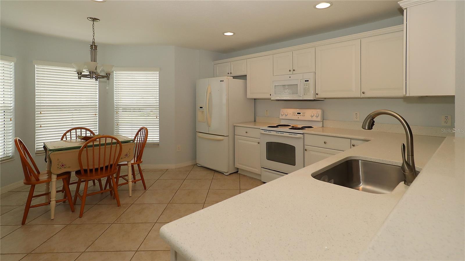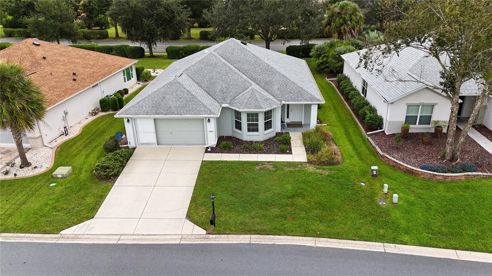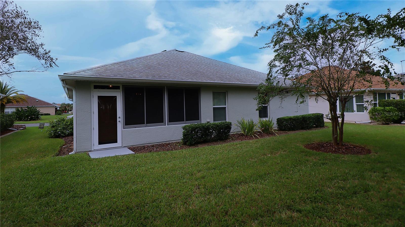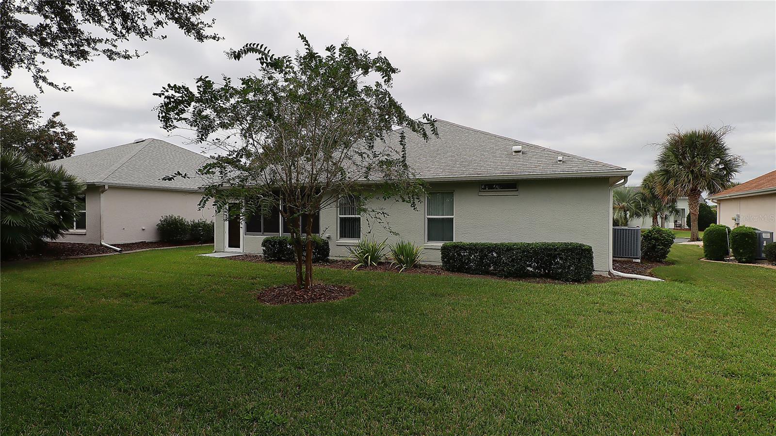 This is a great way to start enjoying the awesome snowbird season in Florida. This concrete block and stucco, 2/2/2 Challedon model fills the bill. Not too big and not too small. Located close to the back gate with access to CR 25. Great front eat-in kitchen with bay window built specifically to house the breakfast table and enjoy watching the world go by. Large double door pantry, Quartz countertops and large bowl sink. Upgraded appliances. Combination living/dining room and is flexible enough to accommodate your needs and wants. Use it as a dining room or as this homeowner is doing, use it as a reading nook. Inside laundry complete with washer and dryer and upper storage cabinetry. Large primary suite (laminate flooring) with en-suite bath (ceramic tile) featuring double raised vanity, large step-in shower, water closet and walk-in closet. Guest room also features laminate flooring. Guest bath has shower/tub combo, raised toilet and raised single sink vanity. Enclosed climate controlled lanai with great eastern exposure with vertical blinds for privacy. Two-car garage has privacy screens and keyless entry. This home has been re-piped in the ceiling and side walls. HVAC 2018. Shingles, gutters and downspouts 2021. Exterior painted 2020. Lots of activities in this community. One can do as much as you want or nothing at all. Completely up to you. Check out our Community Center, Restaurant (Liberty Grill) and the Pro Shop (4 - 9 hole golf courses). Three heated swimming pools, fitness center, pickleball, tennis, softball, bocce, shuffleboard and so much more. Walking trails, sidewalks and dog park. Make this home today.