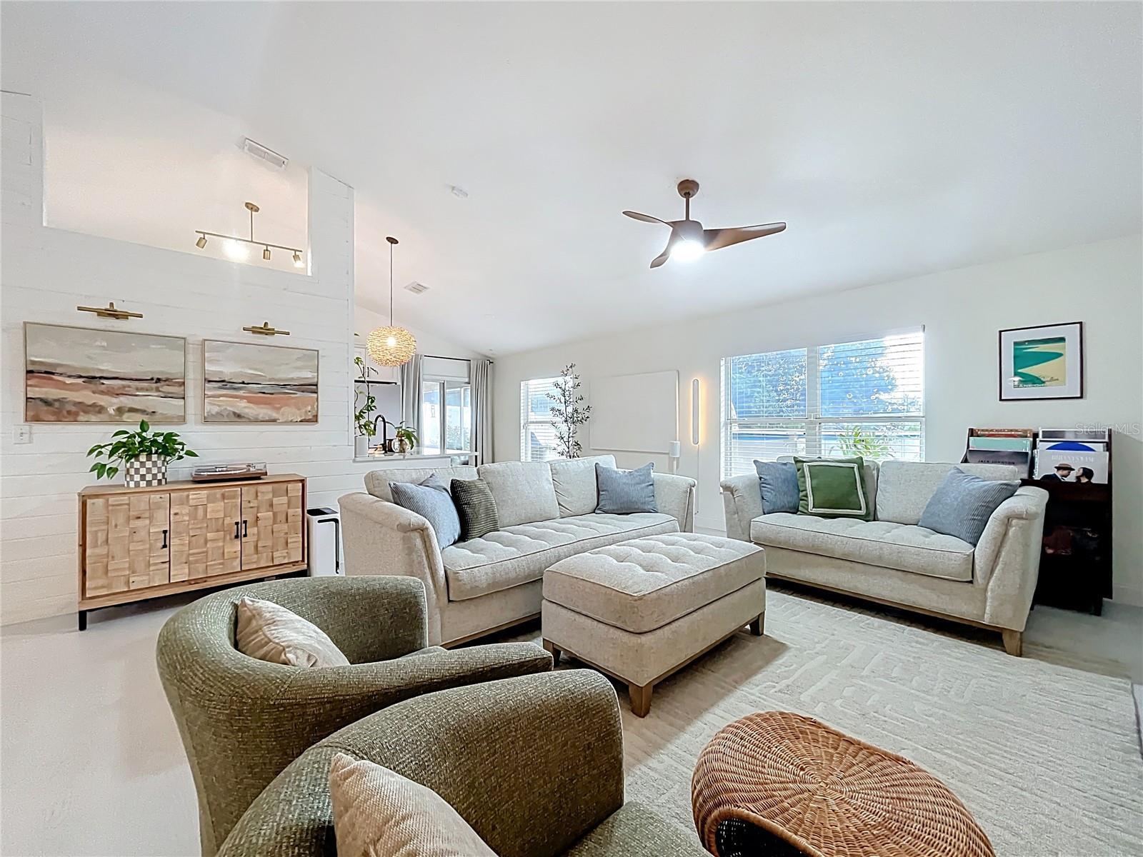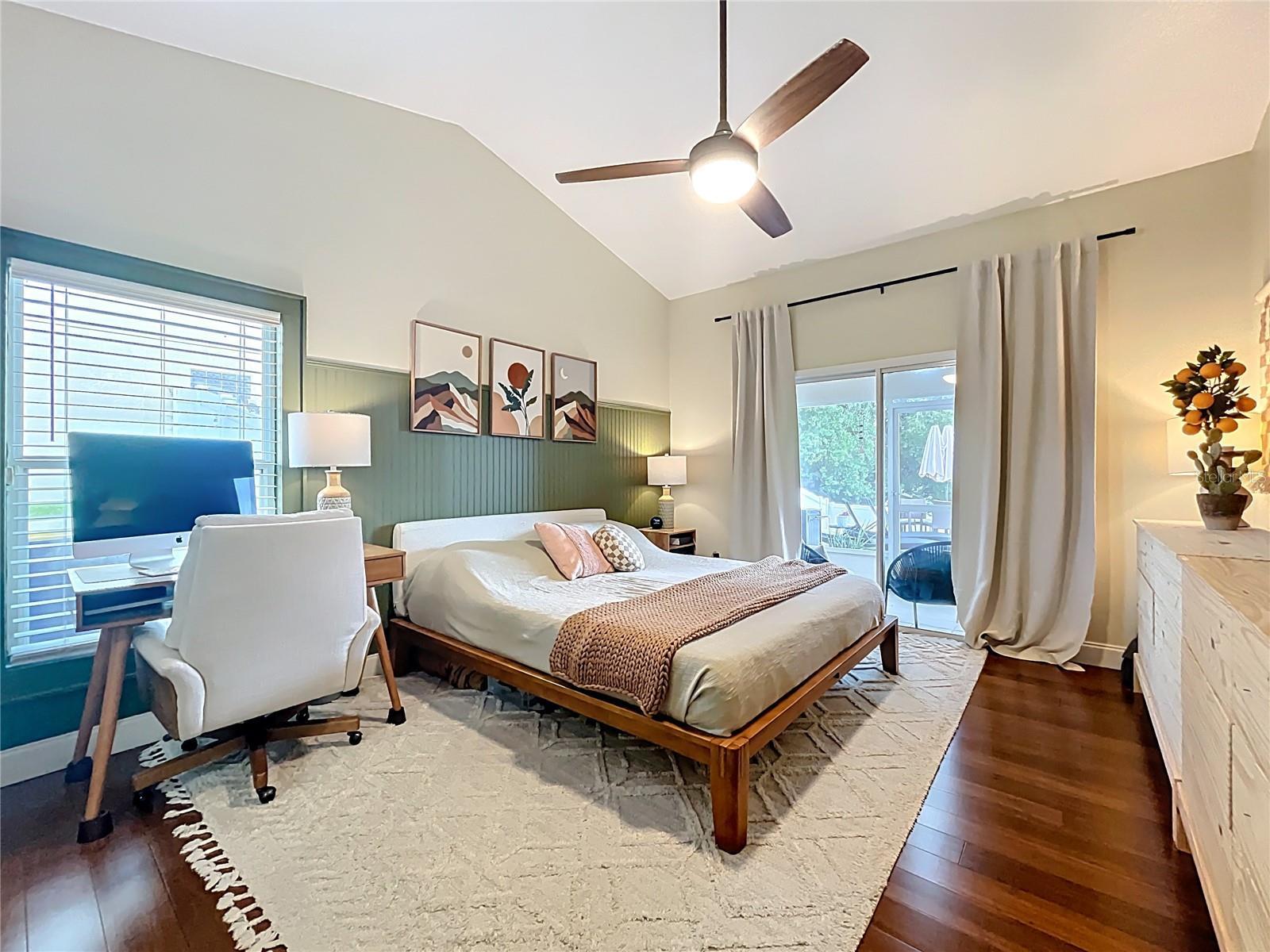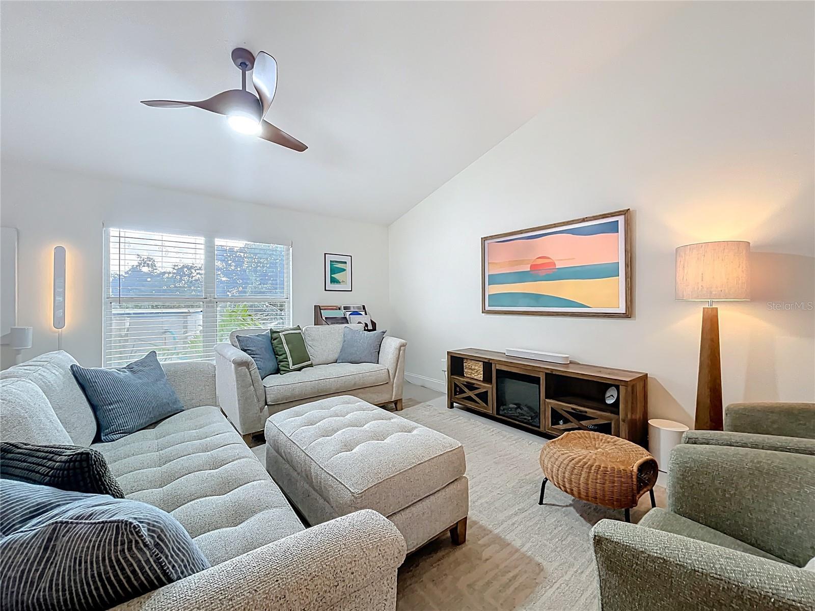 - Ceiling Fans(s), High Ceilings, Open Floorplan, Primary Bedroom Main Floor, Solid Surface Counters, Split Bedroom, Vaulted Ceiling(s)