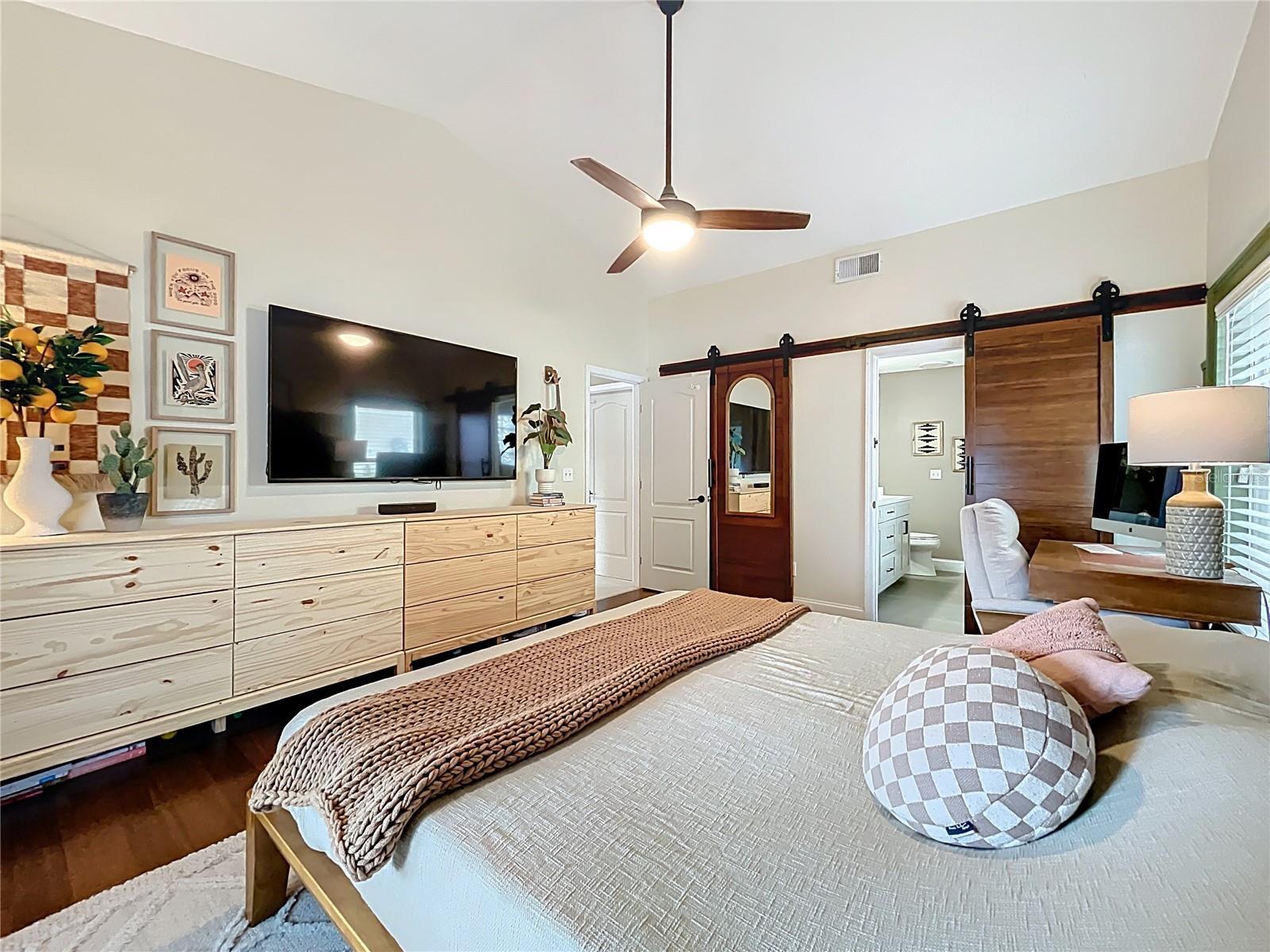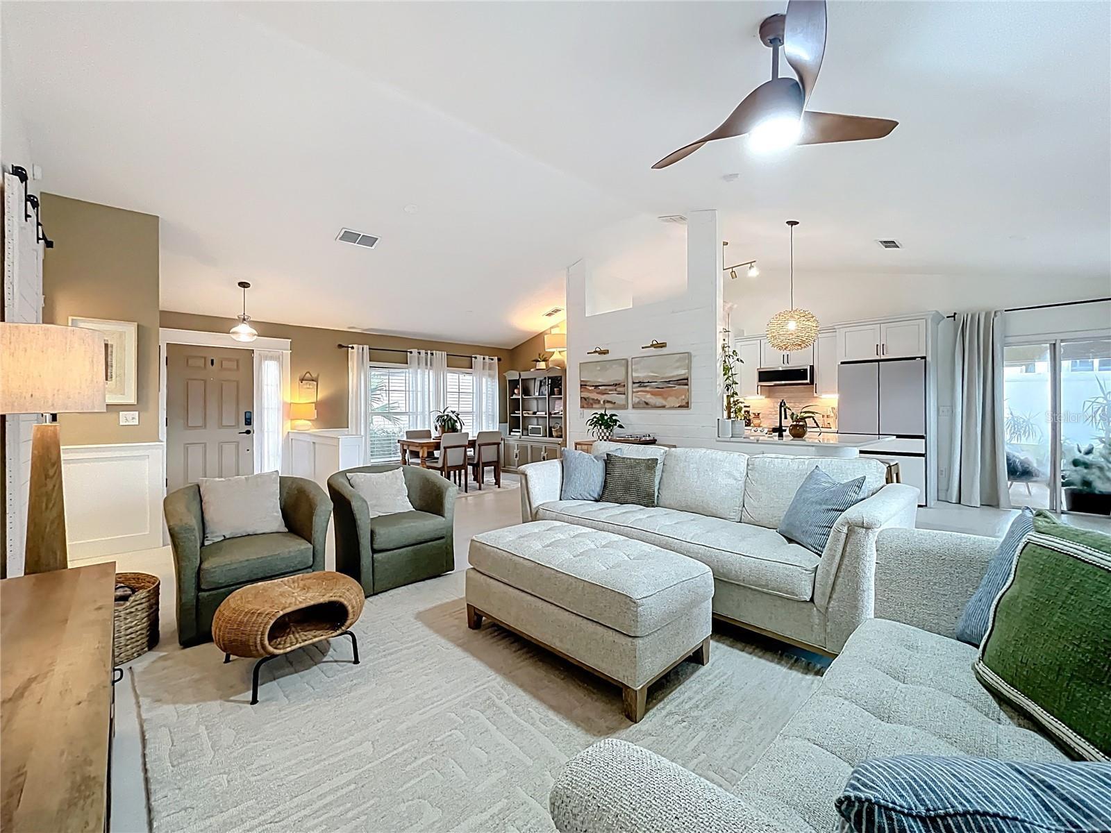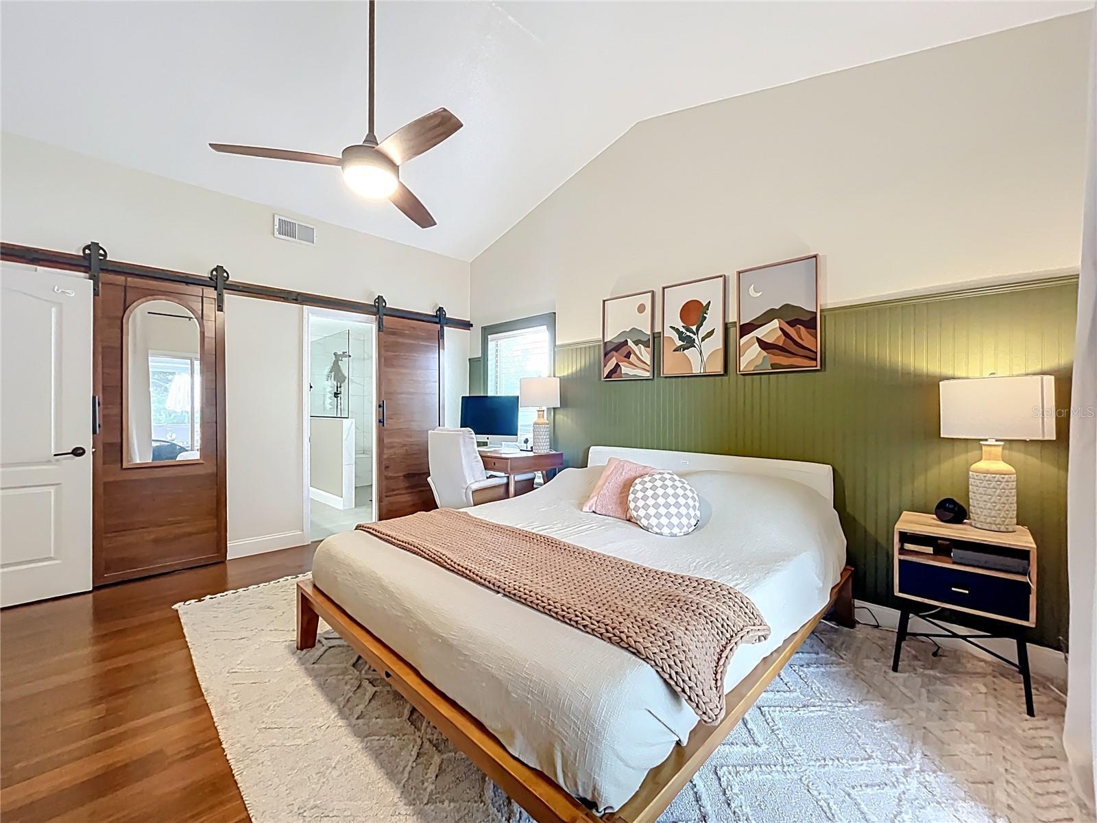 - Ceiling Fans(s), High Ceilings, Open Floorplan, Primary Bedroom Main Floor, Solid Surface Counters, Split Bedroom, Vaulted Ceiling(s)