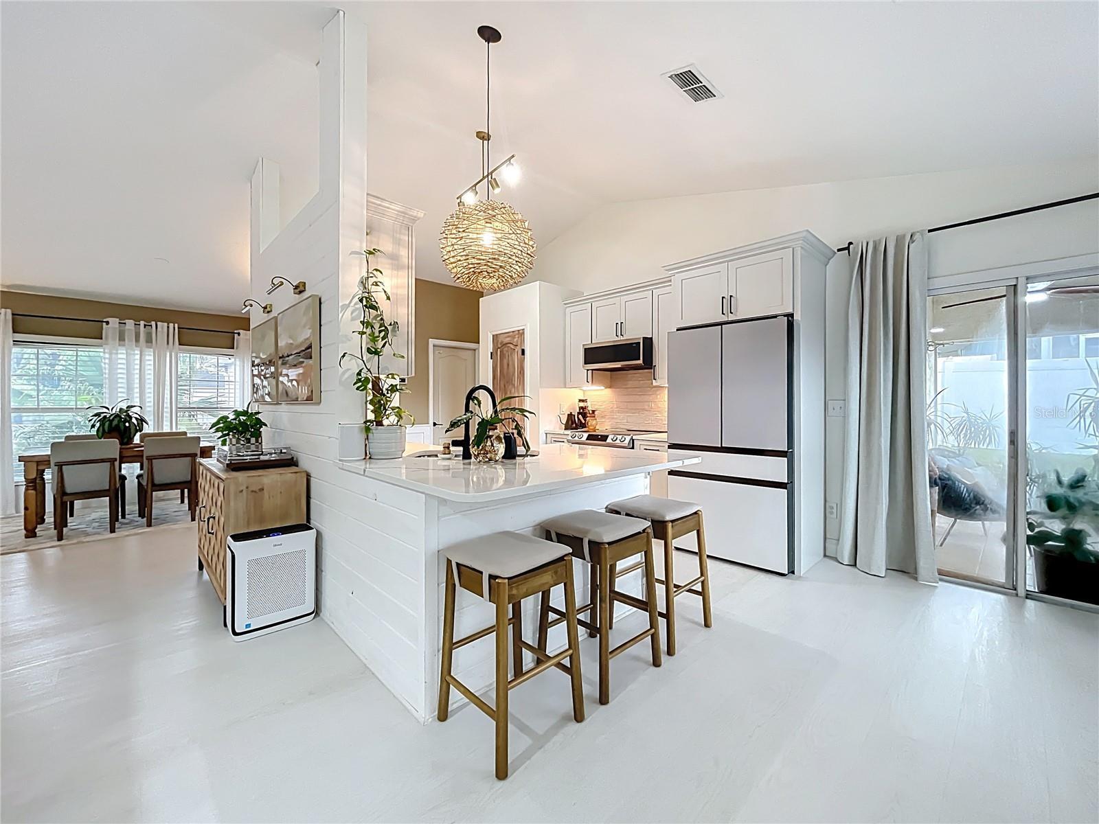 Under contract-accepting backup offers. Welcome to this inviting 3-bedroom, 2-bath home in the desirable Eastridge community of Minneola. Set on a landscaped corner lot with fruit trees—mango and avocado right in your own yard—you’ll enjoy both charm and function from the moment you arrive. The freshly painted exterior and 2-car garage add to the home’s curb appeal and convenience. Step inside to an inviting open floor plan with vaulted ceilings and natural light that fills the bright, airy interior. Bamboo and luxury vinyl flooring flow throughout the living spaces, enhancing both style and durability. The gourmet kitchen is designed for everyday living and entertaining, featuring stainless steel appliances, quartz counters, soft-close cabinets, ample storage, and a breakfast bar that connects seamlessly to the dining and living areas. The spacious primary suite offers a peaceful retreat with a walk-in closet and ensuite bath complete with dual sinks. Two additional bedrooms provide space for family, guests, or a home office. Out back, unwind on the covered, screened-in patio overlooking your private above-ground pool, updated in 2025 with new equipment. With a brand-new A/C in 2025 and roof from 2017, this home is move-in ready. All in a prime location close to schools, shopping, and dining—making it easy to enjoy the Florida lifestyle.
