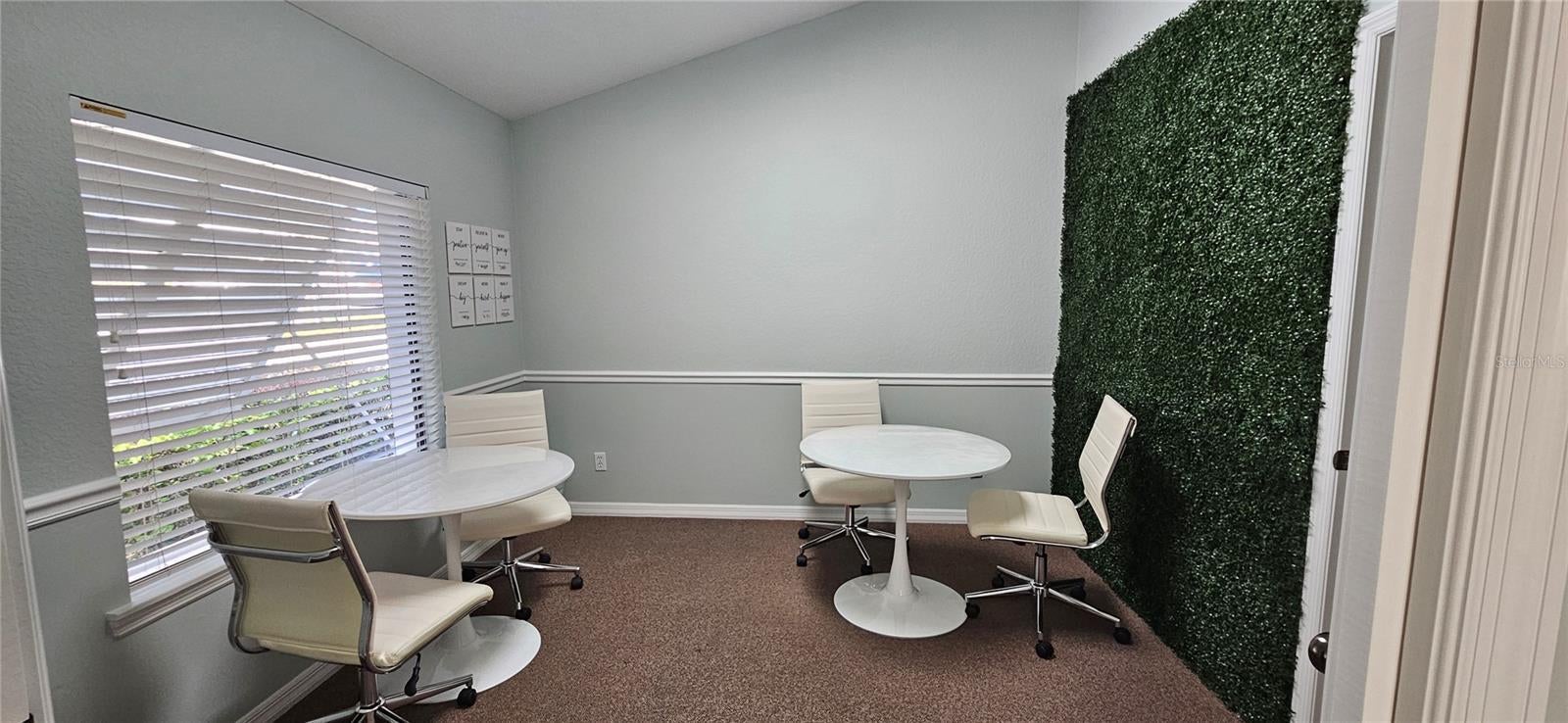Shared office space for lease for professional office uses. Available December 1st. One office and a reception area. Office furniture in pictures is not included with the exception of the built-in reception desk. Shared conference room, kitchen and bathroom. Net leasable area does not include the common areas.