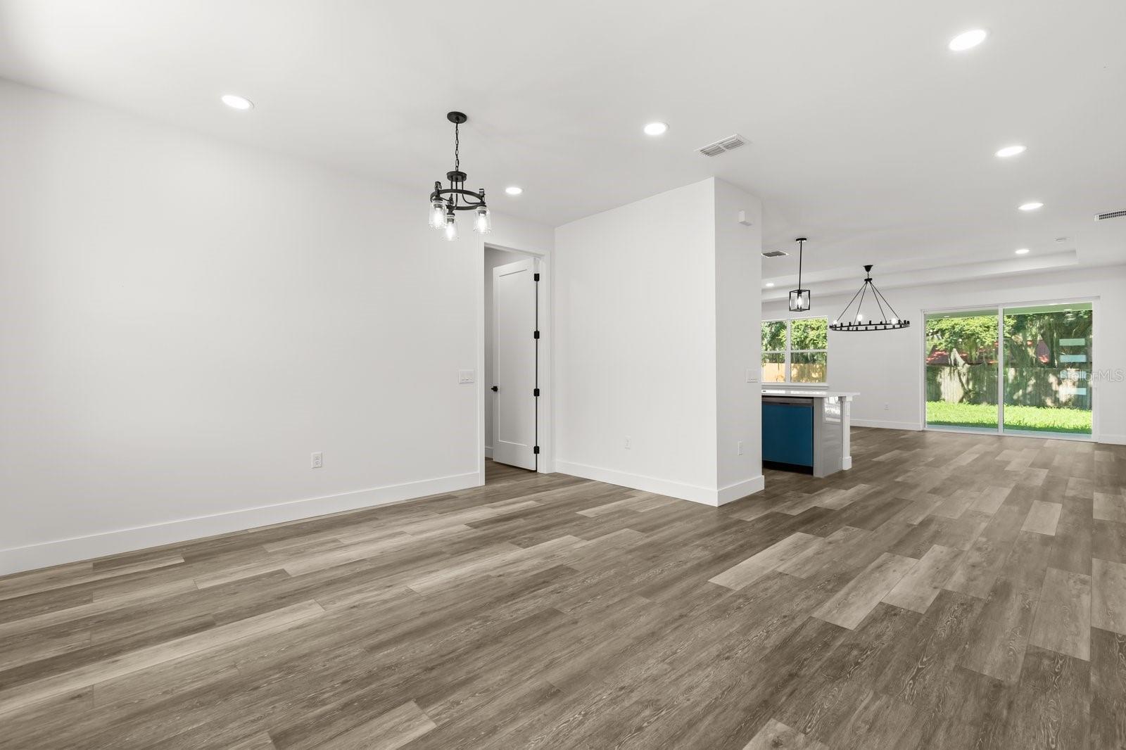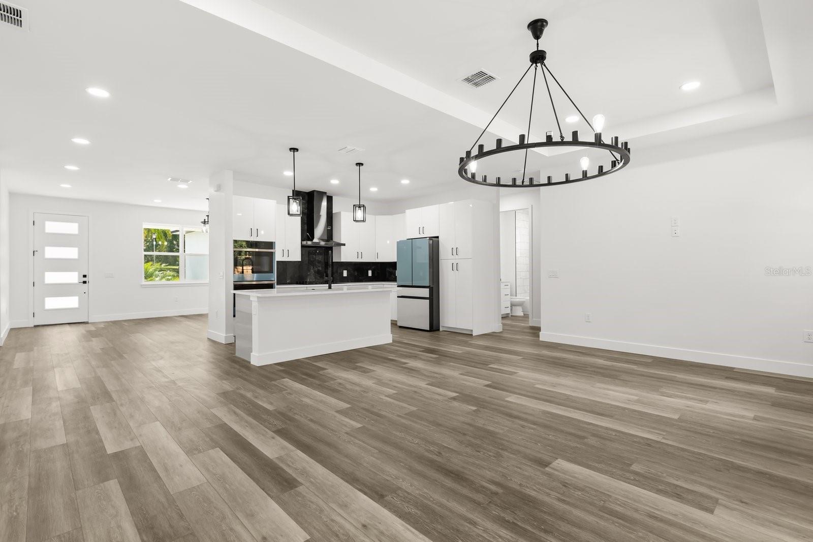 - Ceiling Fans(s), Eat-in Kitchen, High Ceilings, Kitchen/Family Room Combo, Open Floorplan, Solid Wood Cabinets, Thermostat, Vaulted Ceiling(s)