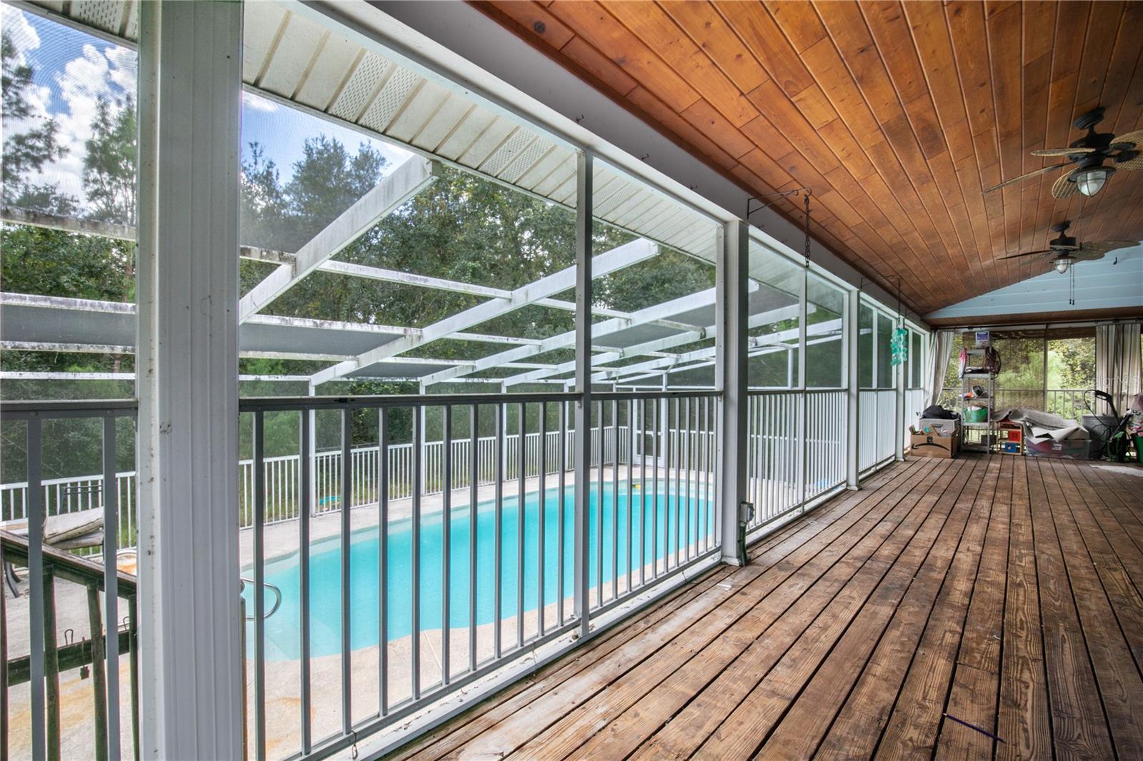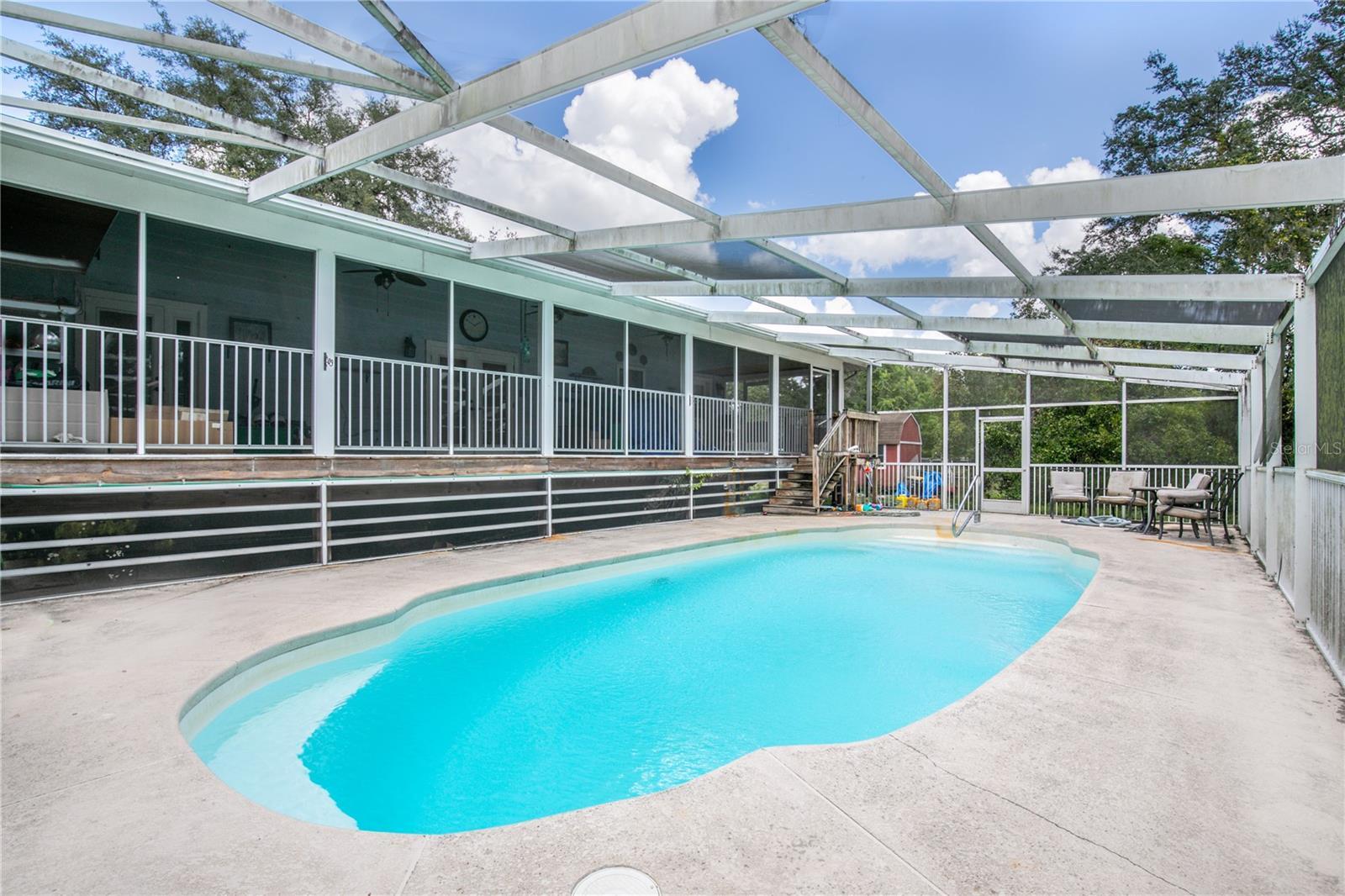 Welcome to your private retreat on 5 beautiful acres with a pond, offering the perfect blend of peace, privacy, and outdoor living. Sellers are motivated and willing to negotiate toward a roof replacement, giving you added peace of mind as you make this home your own. Tucked away from the busyness of town, this spacious 4-bedroom, 2-bath pool home gives you the freedom to truly enjoy the quiet of nature while still being just a short drive to shopping, dining, and the St. Johns River. Designed with relaxation and entertaining in mind, this home features a large screened-in pool and an expansive screened back porch - ideal for hosting family gatherings, weekend cookouts, or simply unwinding while taking in the views of your property. Inside, the home is warm and functional with French doors in the living room and primary bedroom that open directly to the porch for seamless indoor-outdoor living. The primary suite offers new carpet, a private bath with shower/tub combo, and direct porch access for added privacy. Down the hall, you’ll find three additional bedrooms, two with new carpet, and a full bath with walk-in shower. The kitchen is well-equipped with ample cabinetry, two refrigerators, a brand-new gas stove with hood vent, and a dishwasher, making meal prep a breeze. A separate laundry room with a new water heater adds to the convenience. Outdoors, the possibilities are endless. Whether it’s fishing in your own pond, exploring your acreage, or simply soaking in the peace and quiet, this property is a haven for nature lovers. With no HOA and plenty of room to spread out, you’ll have the freedom to create the lifestyle you’ve always wanted. A storage shed is also included. If you’ve been dreaming of a private pool home surrounded by land, with the space to relax, entertain, and breathe easy - this is the one! This home is just 25 minutes to downtown Mount Dora and Tavares, 15 minutes to downtown Eustis or DeLand, and only about an hour to Florida’s world-famous beaches, Orlando theme parks, and the airport - making it the perfect balance of country living with easy access to all the amenities and attractions Central Florida has to offer.