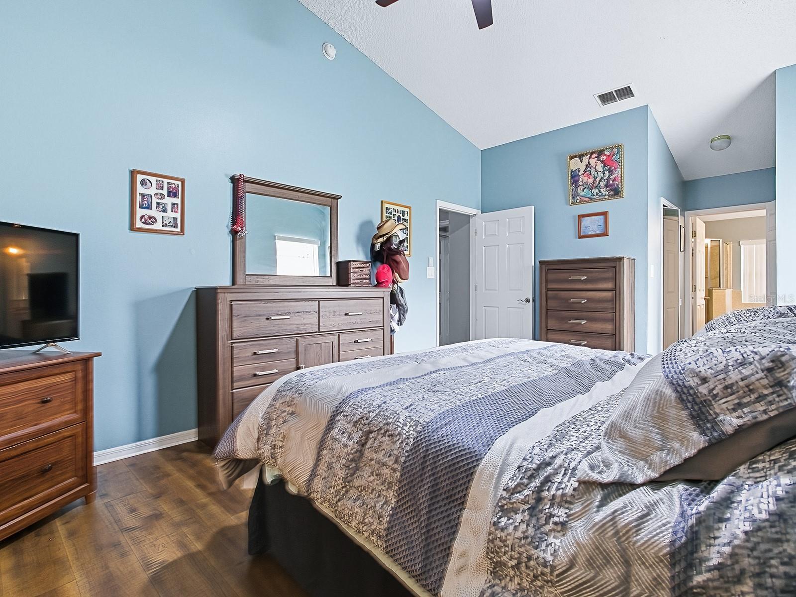 - Ceiling Fans(s), Eat-in Kitchen, High Ceilings, Kitchen/Family Room Combo, Open Floorplan, Primary Bedroom Main Floor, Split Bedroom, Walk-In Closet(s)