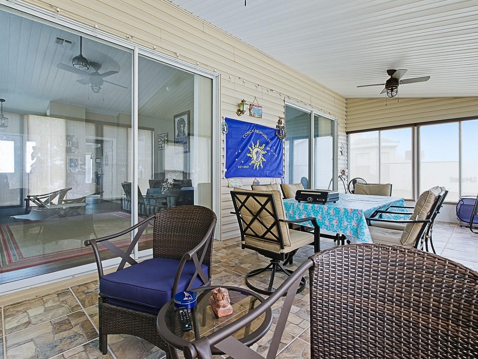 Spacious and updated home offering 2,158 sq. ft. of comfortable living in the highly desirable Plantation at Leesburg. This home features 2 owner’s suites, each with private bathrooms and walk-in closets, perfect for guests or multi-generational living. The split floor plan provides ultimate privacy. The kitchen is open to the family room, creating an ideal space for entertaining, with a large dining area nearby. Formal living and dining rooms add flexible space for gatherings. The third bedroom (11x13) makes a great office, den, or hobby room. You'll also enjoy the convenience of an indoor laundry room with a half bath. Relax year-round in the enclosed lanai with glass windows, or step outside to the paver patio, perfect for grilling. Home also features a 2-car garage plus a separate golf cart garage. Recent Updates Include: Roof (2018) Hot water heater (2024) Solar-powered attic fans for energy efficiency New Wi-Fi-enabled sprinkler system and garage door opener The Plantation offers resort-style living with 2 golf courses, 3 clubhouses, 3 pools, hot tubs, fitness centers, saunas, tennis, pickleball, softball, billiards, walking trails, on-site restaurant, and a full calendar of social events and entertainment. Golf cart-friendly community. Don't miss this opportunity to own a beautiful home in one of Central Florida's premier 55+ communities!