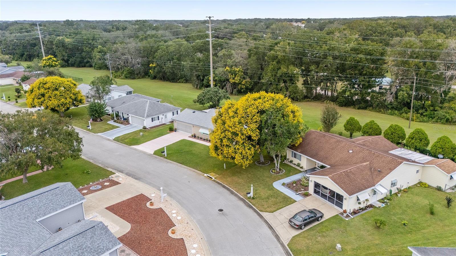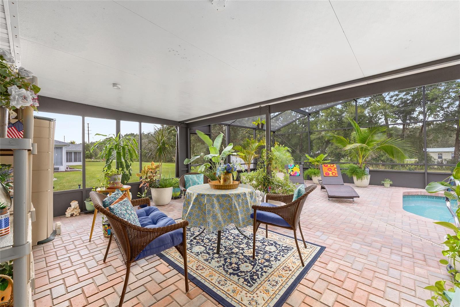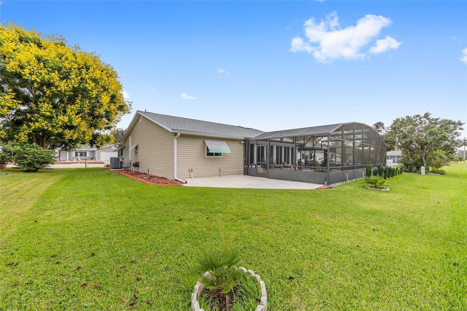 FLORIDA PARADISE AT ITS BEST! THIS 2-BEDROOM, 2-BATHROOM, SALTWATER POOL HOME WELCOMES YOU! Located just 1 mile from The Villages ®, in the sought-after 55+ Spruce Creek South community offers perfect blend of comfort, convenience & Florida living. The elegant crystal windowed Front Door(2024) invites you into the Entry Area showcasing luxury vinyl floors that flow seamlessly throughout the home. The Entry opens into a spacious Living room with vaulted ceiling, ample space to accommodate large furniture, oversized window brings in ample light with a 4-light ceiling fan adds to extra comfort. The living room flows into a specious Dining room with ample wall space, vaulted ceiling and bright 6-1-light chandelier. Beautiful Eat-in Kitchen has generous counter space and cabinets, custom pantry with pull-out drawers, Whirlpool appliances, double sink, skylight with ceiling fan and light. The Florida room opens to a stunning outdoor retreat with a large covered Lanai, Birdcage, and a SOLAR HEATED, SALTWATER IN-GROUND POOL overlooking a private backyard with no rear neighbor. Includes Pool Robot Vacuum. The pool area is paved with beautiful pink bricks. The Florida room under air, with acrylic windows, and tile flooring, perfect for relaxing with your morning coffee, or as game room, or accommodate guests. The bright 2-fan lights may easily convert it into an art-crafts room. The speciose Primary Suite features a window to the backyard, large shirt closet, ceiling fan, en-suite bathroom with step-in tiled shower with double rain glass doors (2025), solar tube/exhaust fan (2024), single sink with large mirror, and 2-walk-in closets (clothing/utility). The Guest bedroom is also nice size with 2 windows, ceiling fan, and walk-in closet. The Guest Bathroom features 1 sink with large mirror, walk-in resurfaced shower (2025) with double rain glass doors (2025), solar tube (2024), and exhaust fan (2025). The Garage houses the Washer and Dryer (2025), Sink, Water Heater, Wall Cabinets and Shelves, Overhead Storage Rack, Attic has R38 sprayed insulation, attic pulldown for extra storage, and 2-Ceiling Fans with Lights. The Garage Door (2025) has 2-remote openers, and screen outside doors. The Outside has long Custom Painted Driveway, Street Light, house lights (2024) and the Mailbox. The landscaping has been meticulously maintained all around the house. New double pane windows installed by Window World, New awnings and shutters by Whyte Aluminum, 25 commercial white roof above the lanai. All New blinds installed throughout the house. This beautifully updated home offers Country Club living with the convenience of nearby shopping, dining, VA and medical facilities, all accessible by golf cart. Spruce Creek South offers resort style amenities, including: 24/7 guard house, Restaurant, Clubhouse with fitness center, his/her sauna, card game room, art/crafts room, library, billiard room, kitchen, entertainment center with stage, outdoor picnic area with pool and jacuzzi, 18-hole golf course, Volleyball/Pickleball/Tennis courts, Shuffle Board, Softball field, Gated storage for RVs and extra vehicles (at low cost), Dog park, Dozens of Clubs and Social events, and more to enjoy year-round. Roof(2024), Vinyl Siding (2024), Gutters, Leafguard & Downspouts(2024). All Pool equipment including solar heat panel(2023), Birdcage(2022).