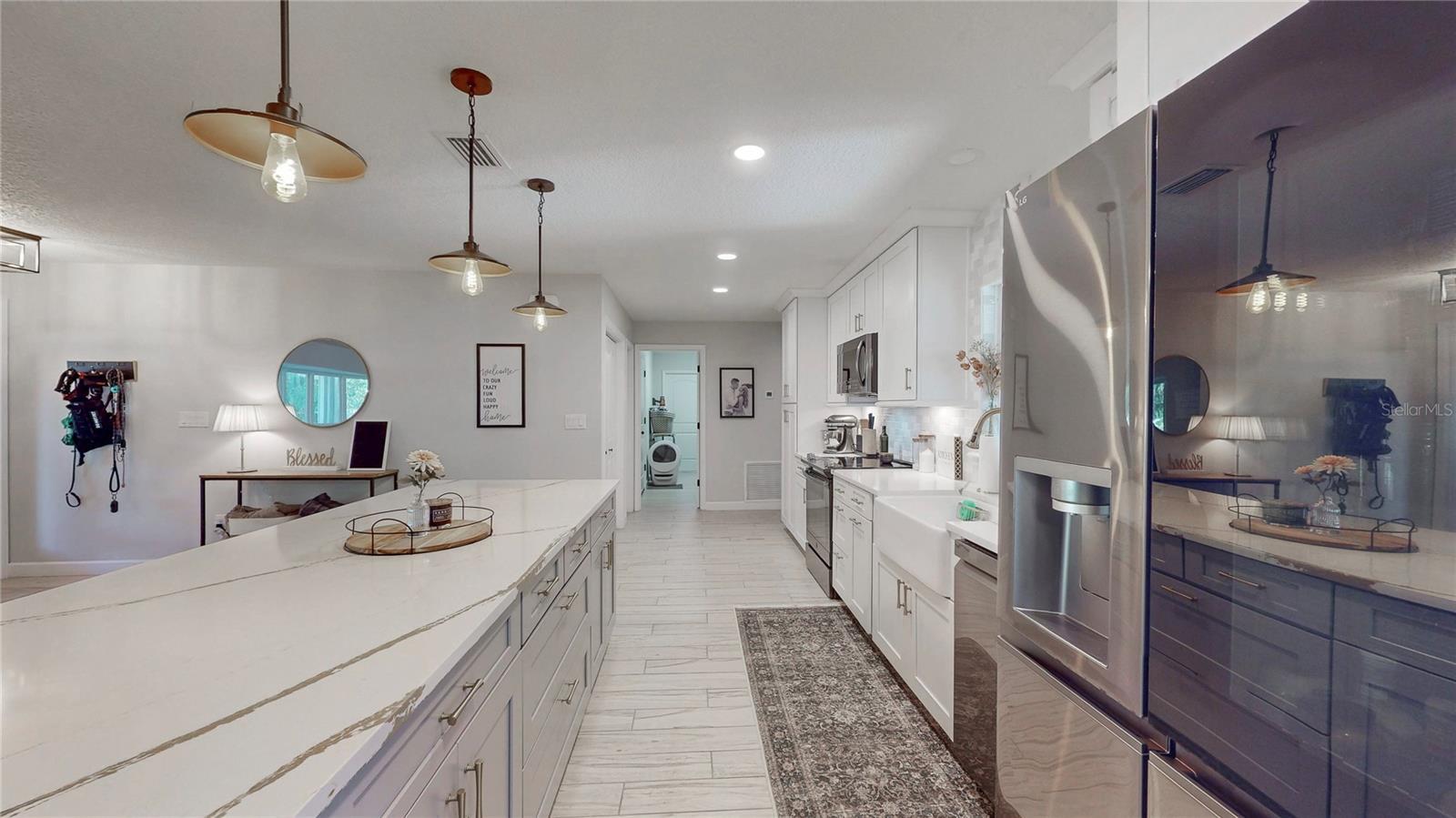 Under contract-accepting backup offers. Beautifully fully renovated 3-bedroom, 2-bath pool home nestled in unincorporated Mount Dora. Completely remodeled in 2020 with new AC, roof, and windows. Recent updates include a new drain field, Solar Panels, Entry door, Repaved and widened Driveway with room for boat or RV, screened in porches front and back adorned with a beautiful tongue-&-groove ceiling and Epoxy Flooring for amazing Florida Living. This beautiful property right by Lakeshore drive close to Downtown Mount Dora offers freedom without the constraints of an HOA or historical district. This updated home has new kitchen and baths, new fixtures, tile wood plank floors, quartz counters, wood cabinetry, and newer stainless-steel appliances. An additional family room perfect for family fun, office, game, or hobby room. Indoor laundry room with washer and dryer. The entire backyard fenced for pets or family or fun and the oversized driveway offers space for additional parking, especially useful for entertaining family and friends. Very close to downtown Mount Dora with access to all the quaint shops, the annual Mount Dora Art and other Festivals, and great restaurants. Close to Gilbert Park and the boat ramp where you can enjoy the great outdoors and take in the entrancing views of Lake Dora. Fantastic location...Amazing house!