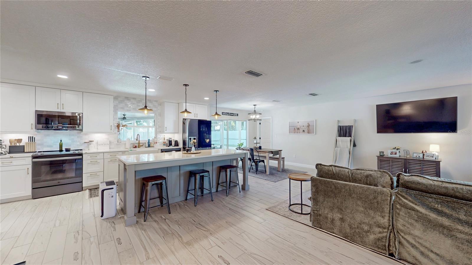 - Dry Bar, Eat-in Kitchen, Open Floorplan, Solid Wood Cabinets, Split Bedroom, Stone Counters, Walk-In Closet(s), Window Treatments