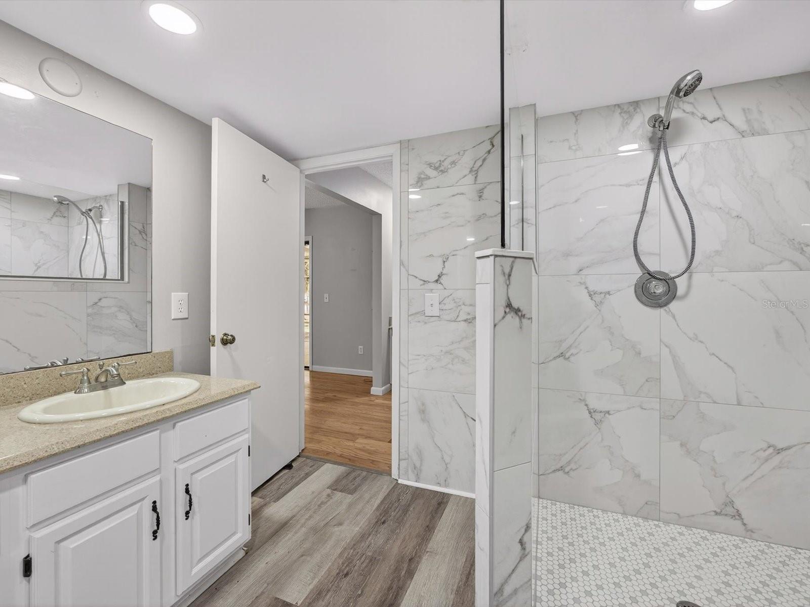 - Accessibility Features, Ceiling Fans(s), Dry Bar, Eat-in Kitchen, High Ceilings, Kitchen/Family Room Combo, Living Room/Dining Room Combo, Open Floorplan, Pest Guard System, Primary Bedroom Main Floor, Solid Surface Counters, Solid Wood Cabinets, Split Bedroom, Walk-In Closet(s), Wet Bar