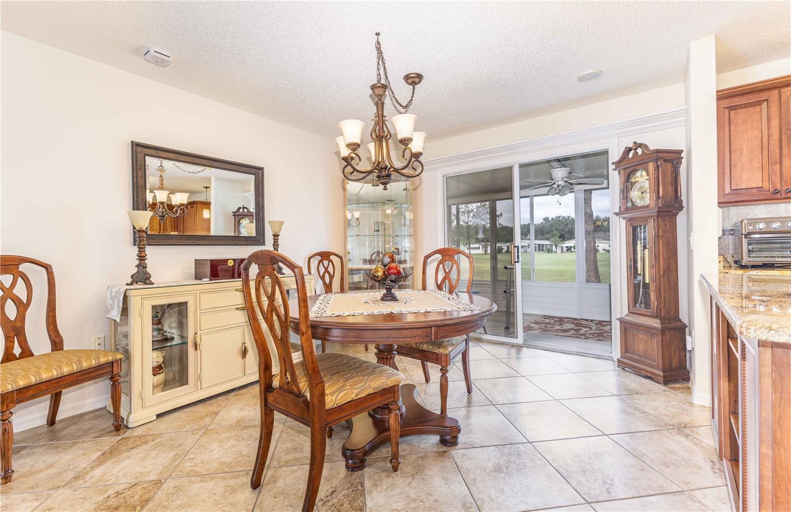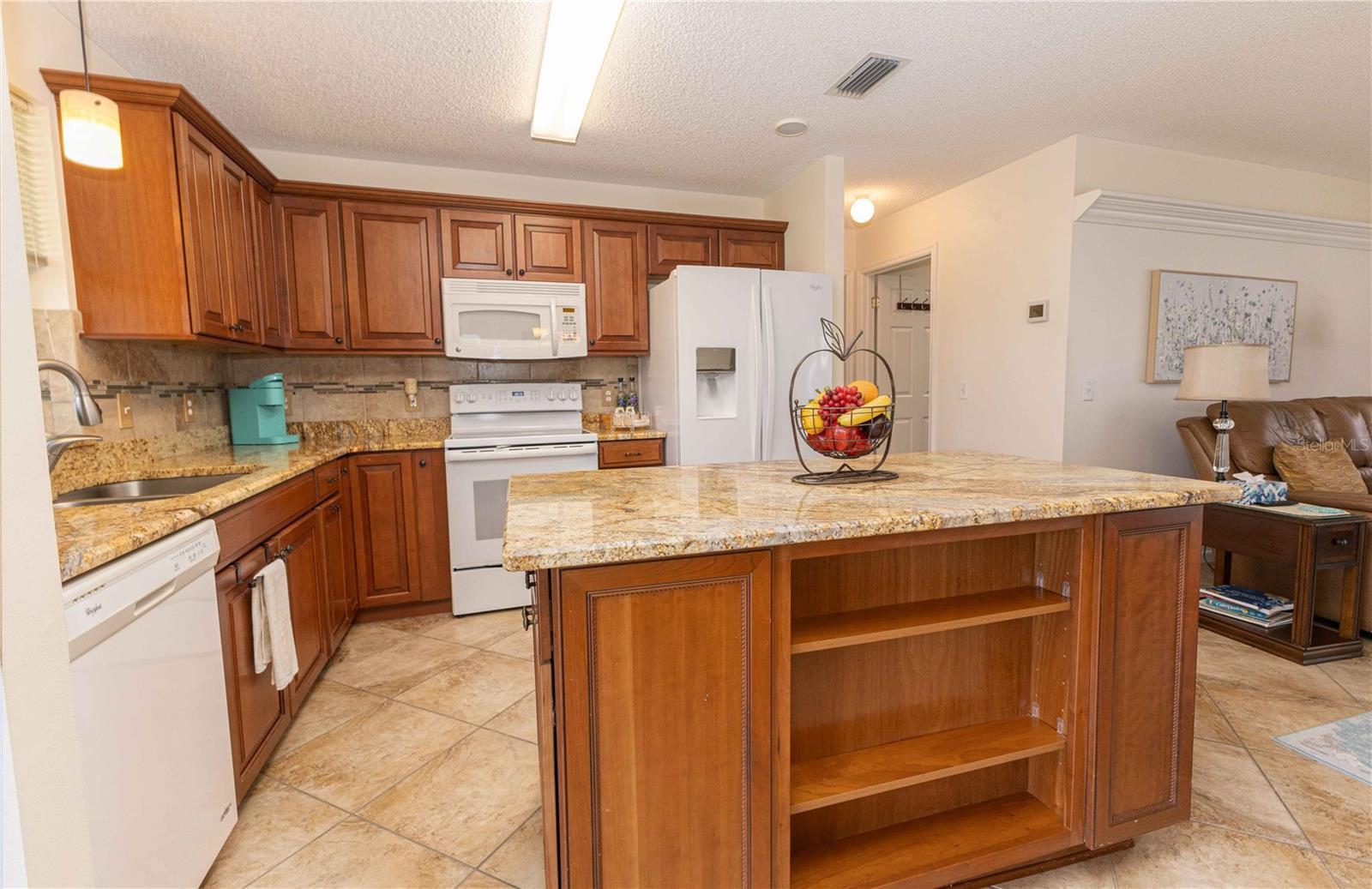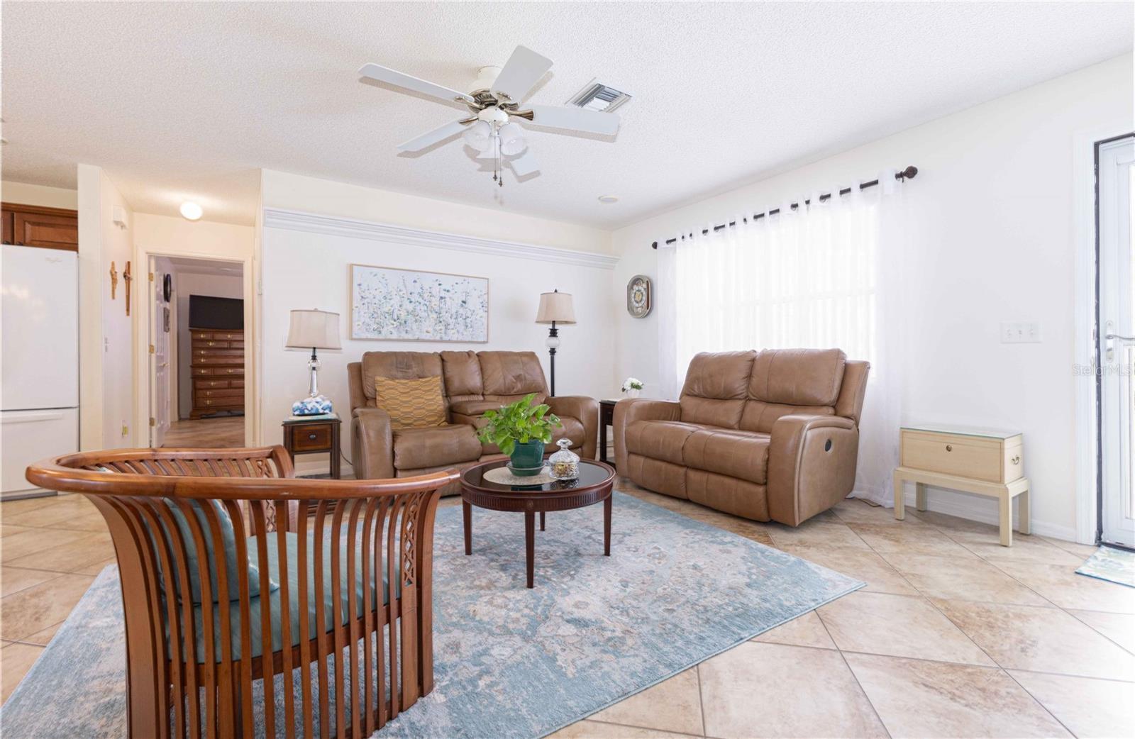 !!!NO BOND!!!Step inside this charming and meticulously maintained 3-bedroom, 2-bath home nestled on the Historic Side of The Villages. From the lanai you’ll be greeted by peaceful golf-front views, framed by mature trees that create a serene backdrop. Perfectly positioned just a golf-cart ride away from Orange Blossom Hills Country Club and Paradise Recreation Center, it effortlessly blends convenience with lifestyle. You’ll immediately notice the thoughtful upgrades and care put into this home. Beautiful tile flooring flows throughout the living spaces, paired with bright, fresh finishes. The kitchen is a standout—beautiful wooden cabinets, gleaming granite countertops, and a stylish tile backsplash add both elegance and practicality. A large center island provides the perfect hub for entertaining, meal prep, or casual gathering. Both bathrooms have been tastefully refreshed with, offering a modern, clean aesthetic. And with three comfortable bedrooms, you have the flexibility for a home office, guest room, or creative space. Outside, the lanai is your haven for relaxing or entertaining—imagine morning coffee or evening cocktails while overlooking the golf course. The laundry area is conveniently tucked into the utility room off the garage, keeping everyday chores out of sight. This home is move-in ready—to begin enjoying The Villages’ amenities from day one. Comfort, style, and functionality await—schedule your private showing today and discover what makes this home so special.