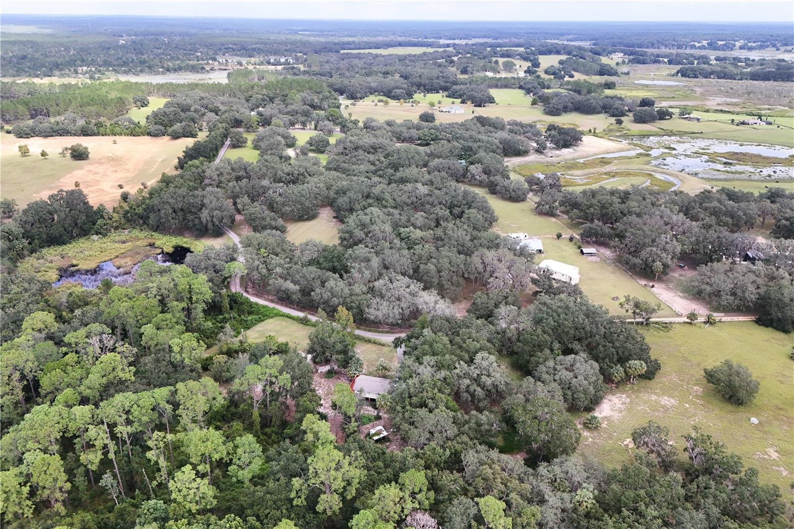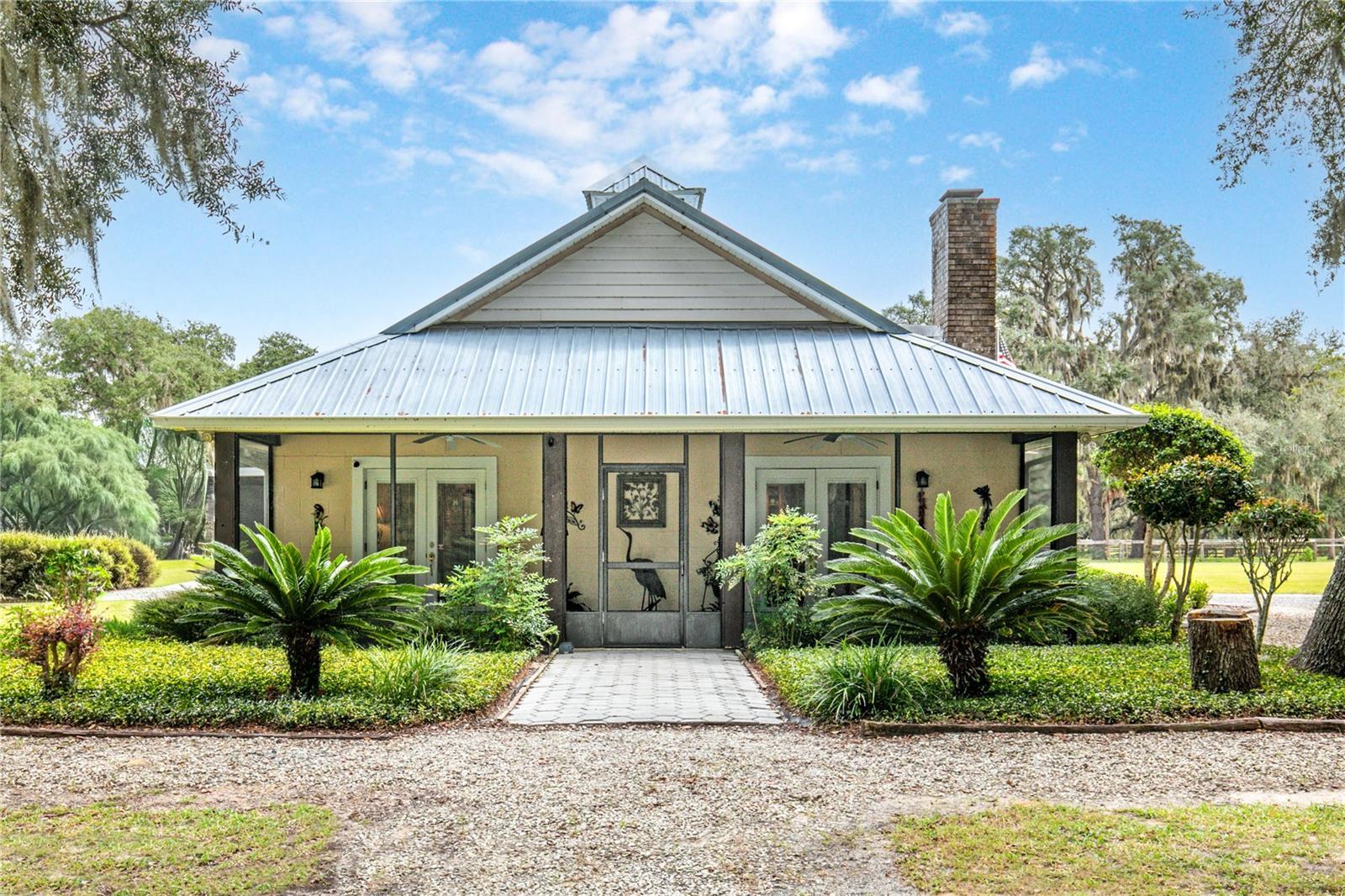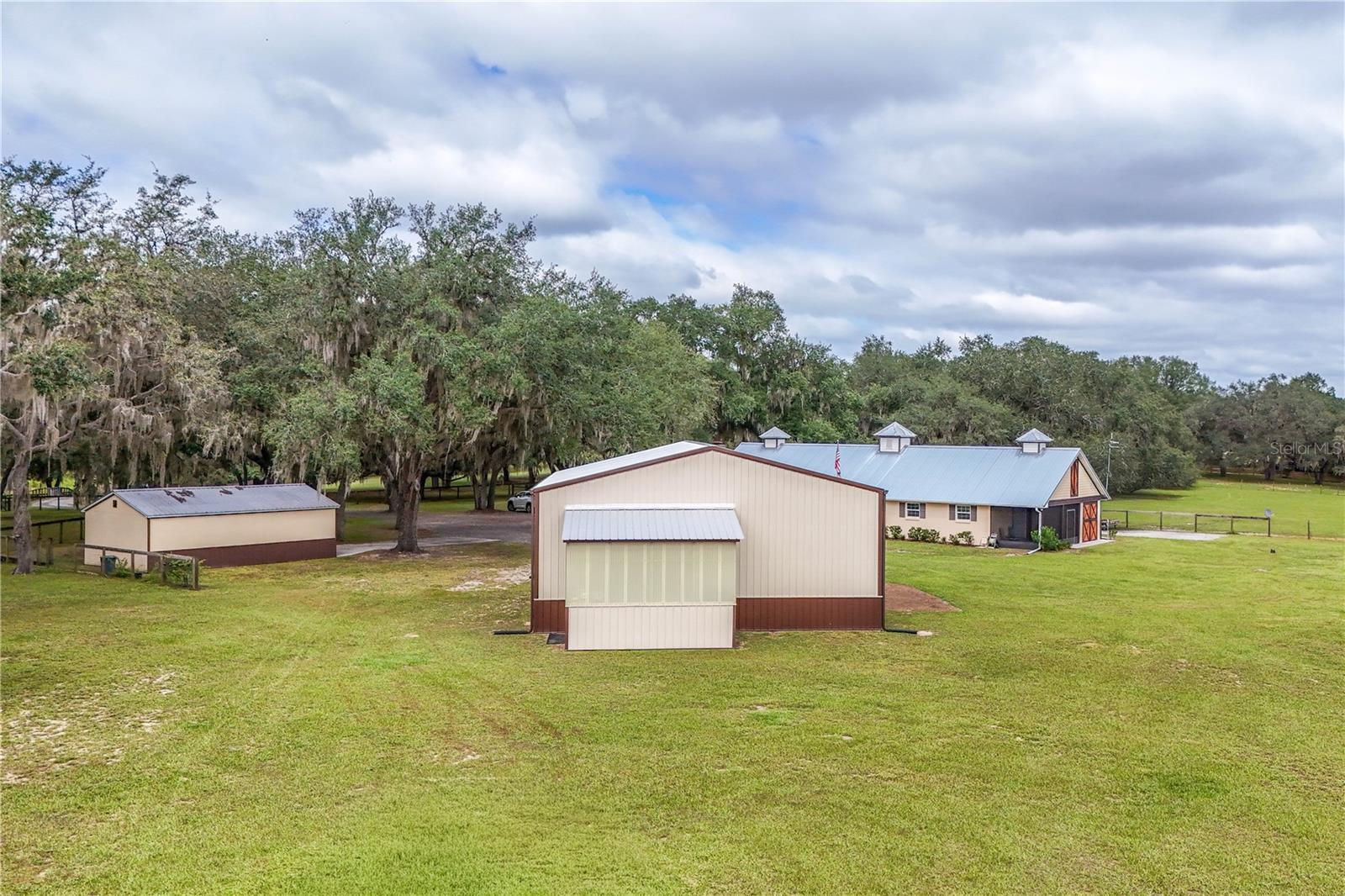 Private 10-Acres of rolling acreage with Barn, RV Pad & Endless Potential. Once in a while you find that tranquil property that is so inviting that it must be seen in person to appreciate the possibilities it offers. Set on 10 pristine acres of towering oaks and manicured pastures, this one-of-a-kind property offers unmatched privacy, serenity, and opportunity. The main home currently features just under 1,000 sq. ft. of finished living space, with an additional +/-1,000 sq. ft. under air already integrated and easily converted to living space—bringing the home’s potential to approximately just over 2,000 sq. ft. with minimal effort. Designed for comfort and efficiency, the home includes a commercial-grade AC system, heavy insulation, and four screened lanais—each offering a unique and tranquil view of the property’s natural beauty. Outdoors, you’ll find fruit trees, a full hookup RV pad, and a spacious storage garage. The impressive 36x48x14 barn is fully insulated, air-conditioned, and built for versatility, featuring heavy-duty concrete for a lift, 110 amp service, and dual high-lift garage doors—perfect for a workshop, car enthusiast, or agricultural use. With multiple fenced pastures, this property is ideal for horses, cattle, or any livestock of your choice. This is more than a property—it’s a lifestyle. Rarely does an estate offer such peace, privacy, and potential all in one place. Don’t miss your chance to own this truly unique piece of paradise!