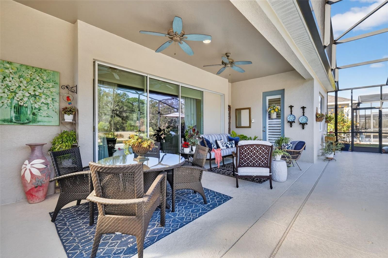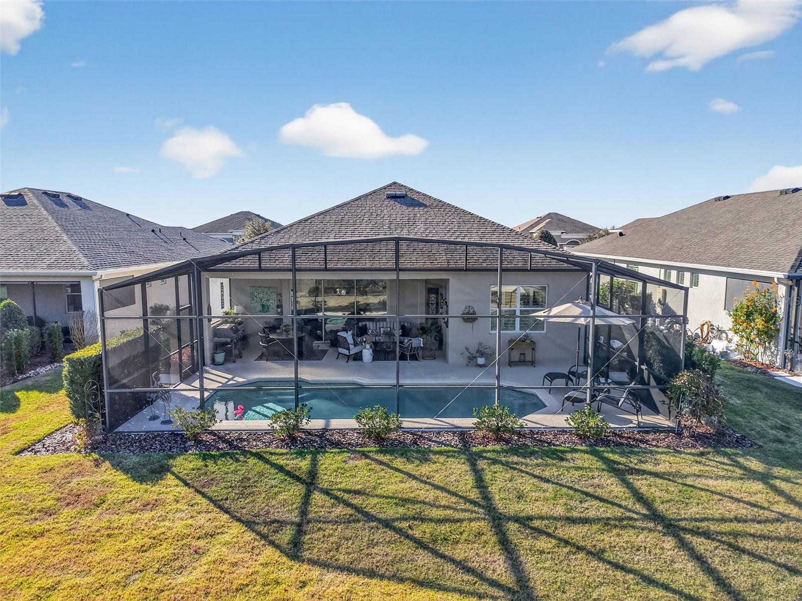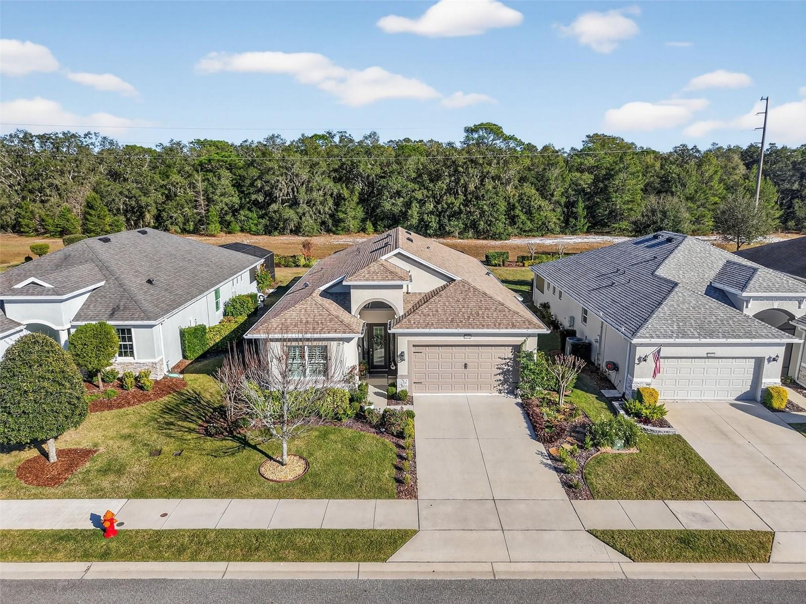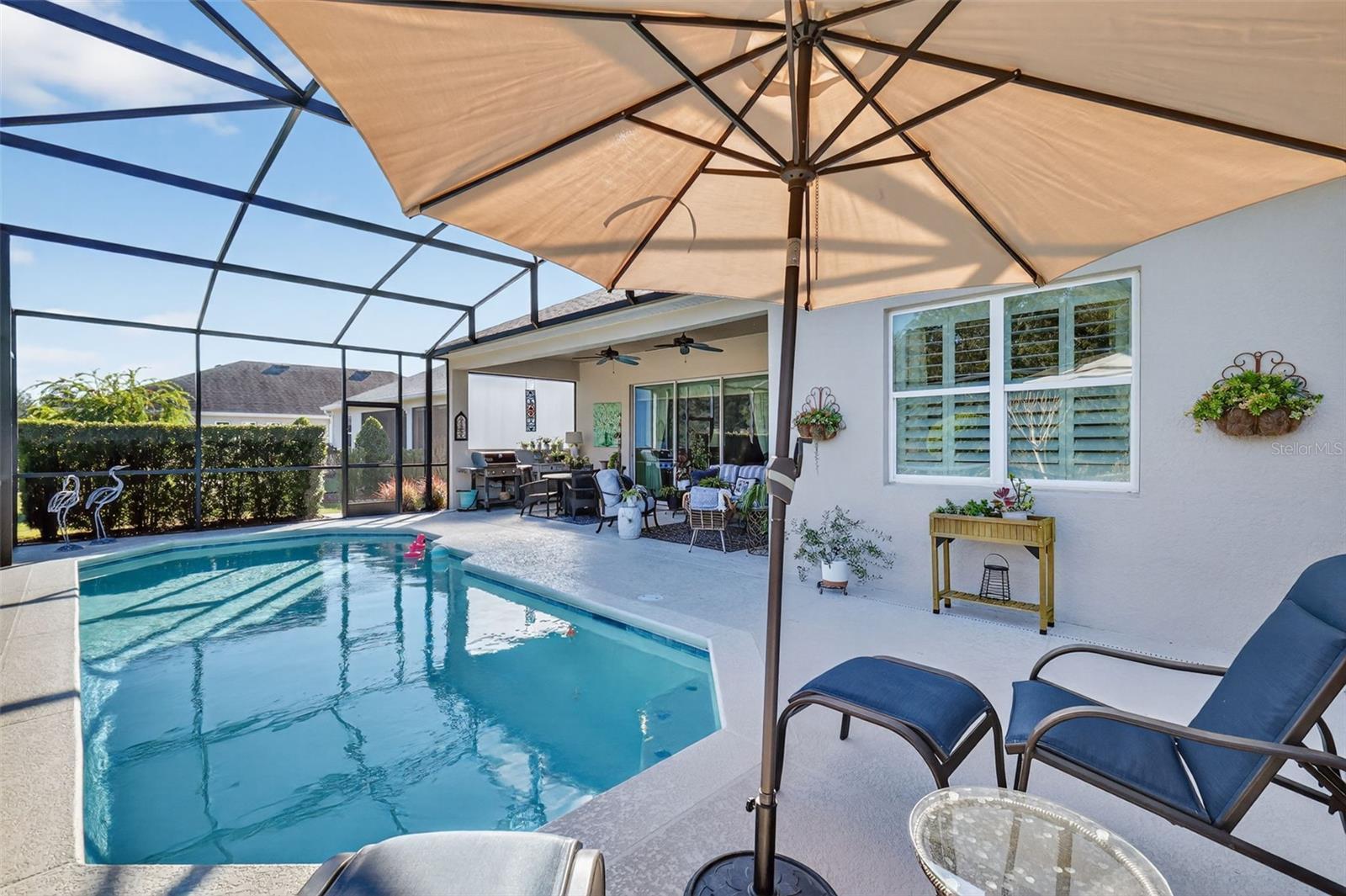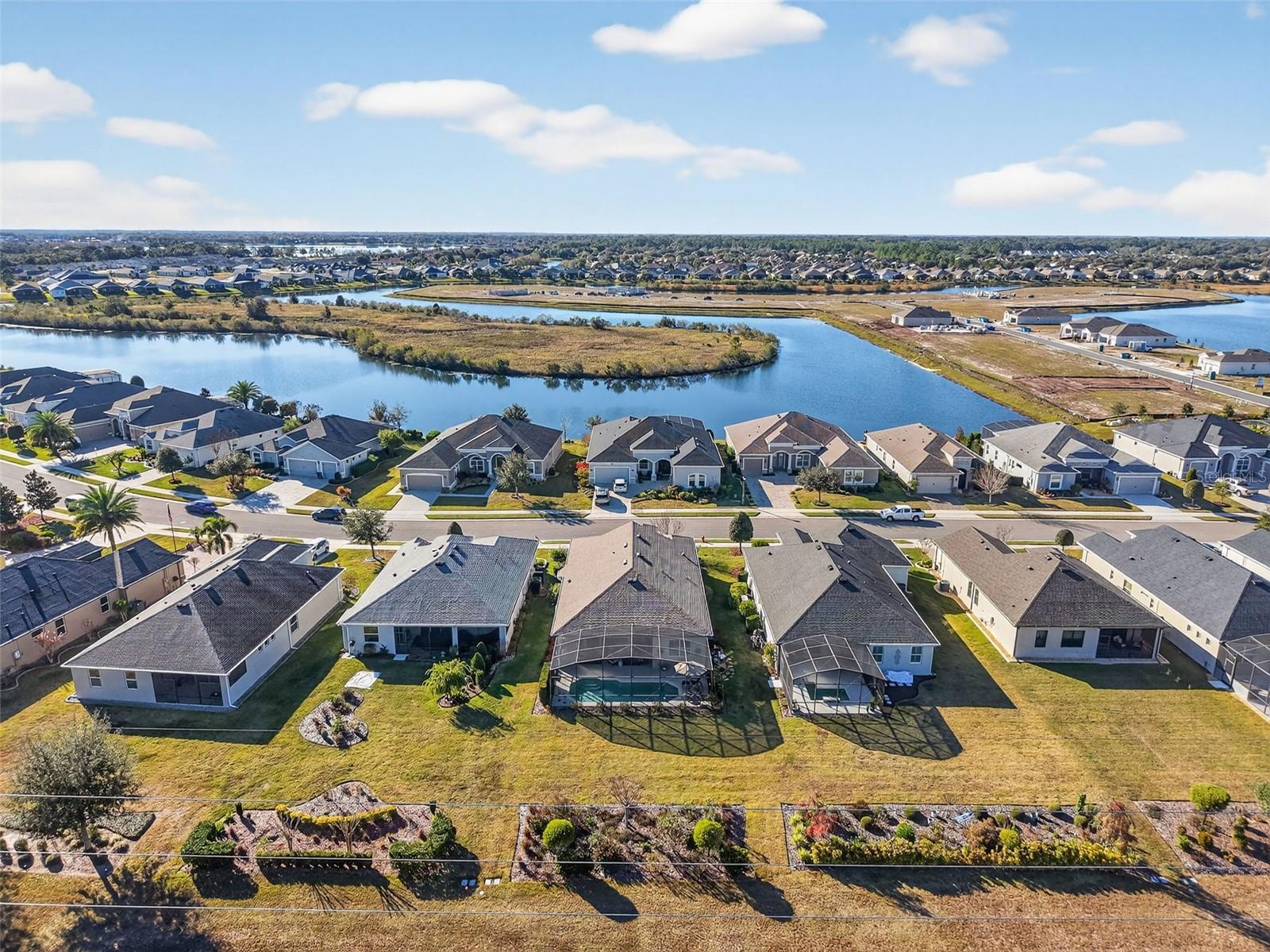 Under contract-accepting backup offers. Huge price improvement—motivated sellers! Welcome to 8464 Bridgeport Bay Circle, located in the highly sought-after Lakes of Mount Dora, a premier 55+ active adult community. This beautifully maintained Granada model offers 2 bedrooms, 2 bathrooms, a den, and a private pool, thoughtfully designed for comfort, entertaining, and an active Florida lifestyle. This 2,033-square-foot home centers around a light-filled great room featuring soaring coffered ceilings that create an open, inviting atmosphere. A charming reading nook provides a quiet retreat while remaining seamlessly connected to the open-concept layout—ideal for both everyday living and entertaining. Built in 2018, the home features an entertainer’s kitchen equipped with GE Profile stainless steel appliances, including a 5-burner natural gas cooktop with a custom range hood, quartz countertops, 42-inch cabinetry, and under-cabinet lighting. A stylish dry bar with wine refrigerator adds a touch of sophistication. The eat-in kitchen is highlighted by a sun-filled bay window with built-in bench seating, while a central island with barstool seating offers additional gathering space. The primary suite is a private oasis with room for a king-sized bed, dual quartz vanities, a curbless walk-in shower with built-in bench, and a private water closet. Plantation shutters provide both elegance and light control. Three glass pocket doors open directly to the lanai and private pool, creating a seamless indoor-outdoor living experience—perfect for morning coffee, entertaining, or relaxing in the Florida sunshine. Residents of Lakes of Mount Dora enjoy an exceptional array of resort-style amenities, including an 18,000-square-foot clubhouse, resort-style pool, pickleball and tennis courts, bocce ball, croquet lawn, four miles of scenic trails and interconnecting waterways, community fire pits, and gated RV and boat parking. The $280 monthly HOA fee includes internet, cable, irrigation, and access to numerous clubs and social activities. Golf enthusiasts will appreciate the close proximity to the Country Club of Mount Dora, while the charming towns of Mount Dora and Eustis offer art galleries, festivals, dining, and shopping. Central Florida beaches and world-famous theme parks are just 45–60 minutes away. This home offers a perfect blend of elegant design, modern amenities, and a vibrant 55+ active lifestyle in one of Central Florida’s most desirable communities.