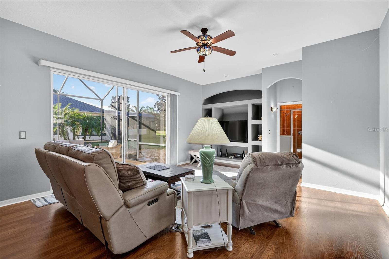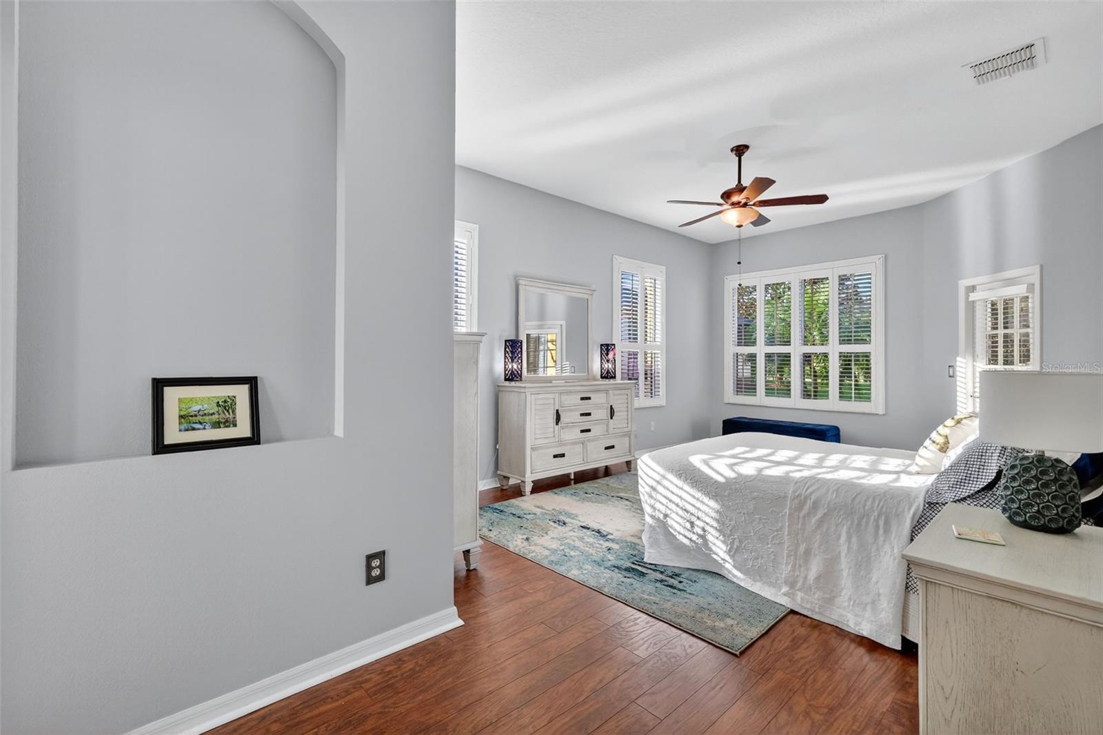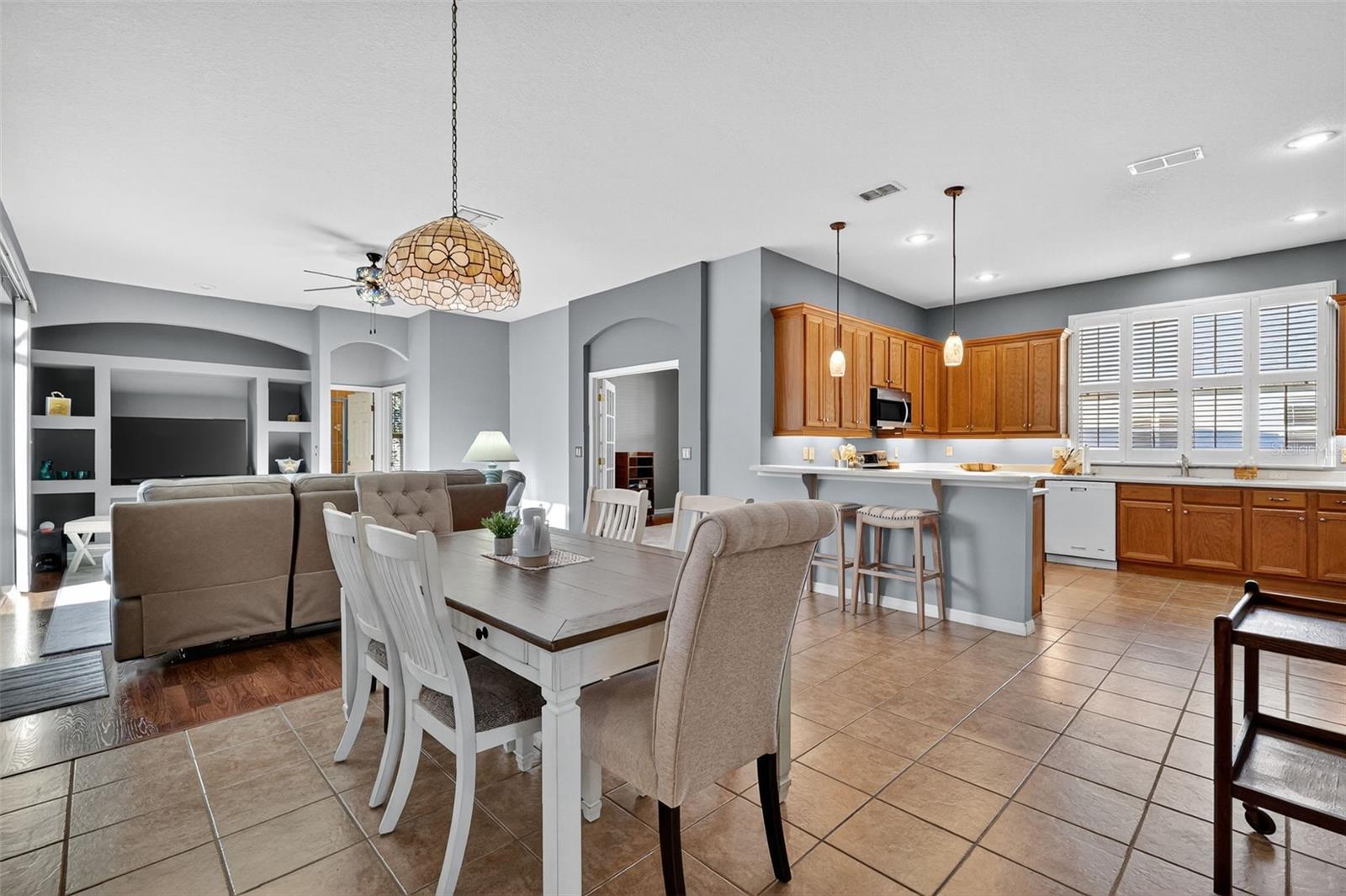 - Built-in Features, Ceiling Fans(s), High Ceilings, Living Room/Dining Room Combo, Open Floorplan, Solid Surface Counters, Solid Wood Cabinets, Split Bedroom, Walk-In Closet(s)