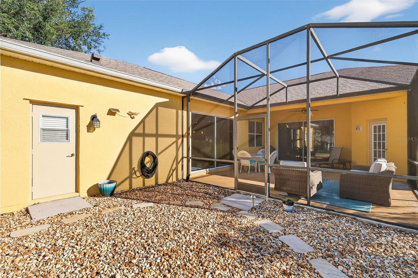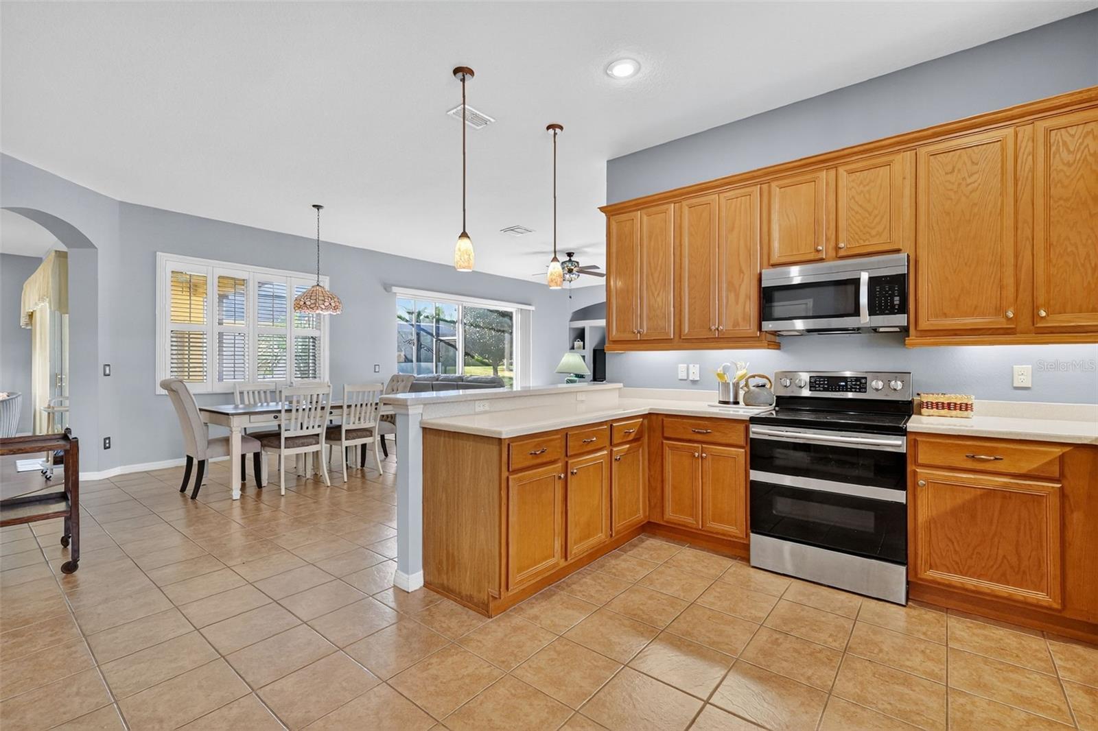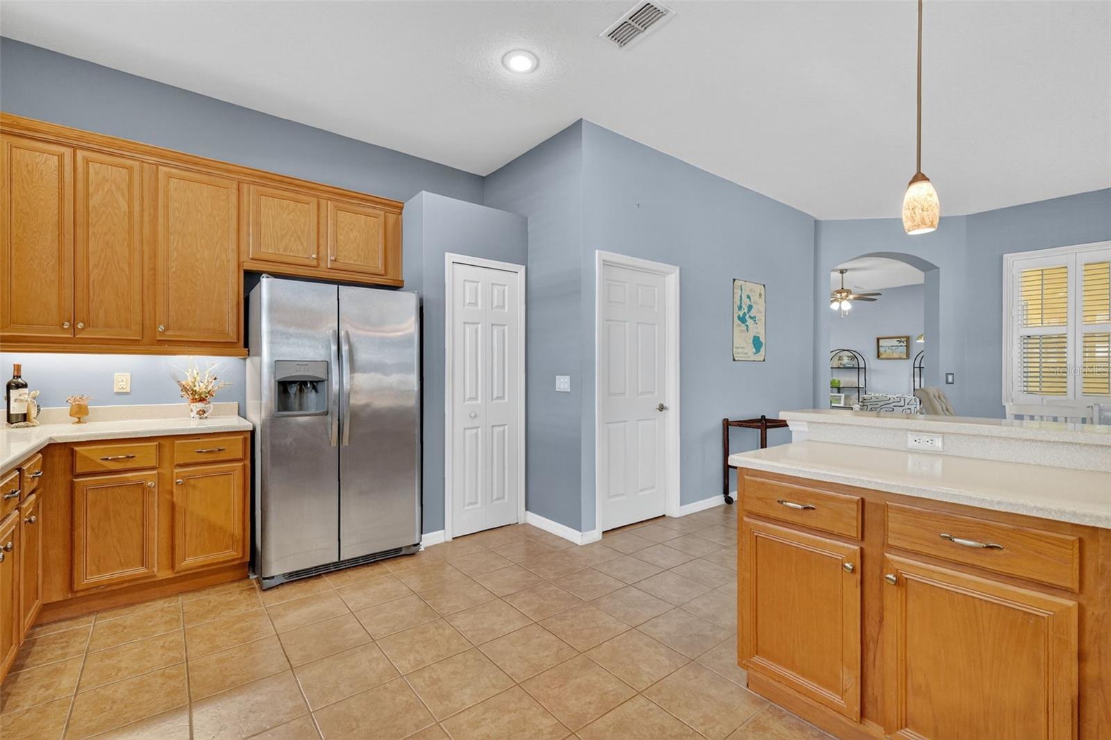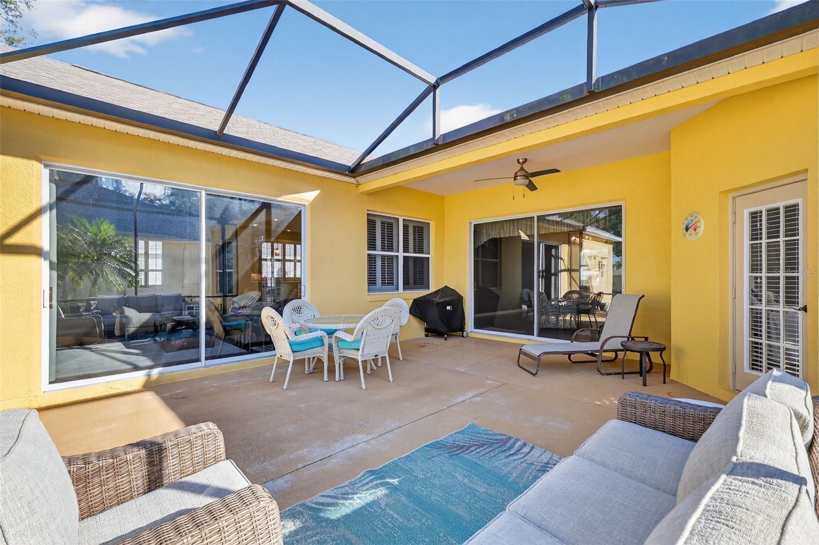 Welcome to this beautifully maintained Bird of Paradise model located in the desirable Ashland Village of Plantation at Leesburg. This spacious 2-bedroom, 2-bathroom home plus private study/den offers an impressive 2,399 square feet of comfortable living space and is being sold TURNKEY (completely furnished with newer furniture), allowing you to move right in and start enjoying the Florida lifestyle. Designed for both elegance and ease, the open floor plan features high ceilings, abundant natural light, and formal living and dining rooms that flow seamlessly into the heart of the home. The kitchen is a true highlight, complete with a window above the sink, extensive counter space, plentiful cabinetry, a large pantry, and upgraded pendant lighting above the breakfast bar. Enjoy the Florida lifestyle year-round from the covered and screened 20x19 lanai, overlooking a serene green space. The sought-after 2-bay plus golf cart garage (25x21) provides ample parking and storage. The primary suite is bright and spacious, offering a walk-in closet and an en suite bath with a double vanity, soaking tub, and large walk-in shower. The guest suite, thoughtfully designed for privacy, features its own full bath with a walk-in shower and upgraded lighting. Throughout the home, you’ll find white plantation shutters and high-quality laminate flooring, no carpet anywhere. Additional highlights include a large indoor laundry room with a utility sink and storage cabinets, HVAC replaced in 2020, updated irrigation (2023), and an updated roof (2024) for peace of mind. Plantation at Leesburg is a scenic, guard-gated 55+ community offering resort-style living with two 18-hole championship golf courses, a restaurant, three activity centers, three heated pools, fitness centers, tennis and pickleball courts, walking trails, and optional RV and boat storage. Experience comfort, style, and active living, all in one of Central Florida’s most sought-after retirement communities.