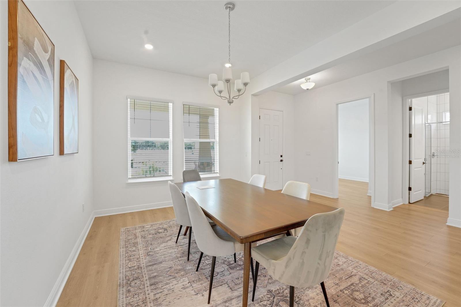 - Eat-in Kitchen, High Ceilings, Kitchen/Family Room Combo, Living Room/Dining Room Combo, Open Floorplan, Primary Bedroom Main Floor, Solid Surface Counters, Thermostat, Walk-In Closet(s)
