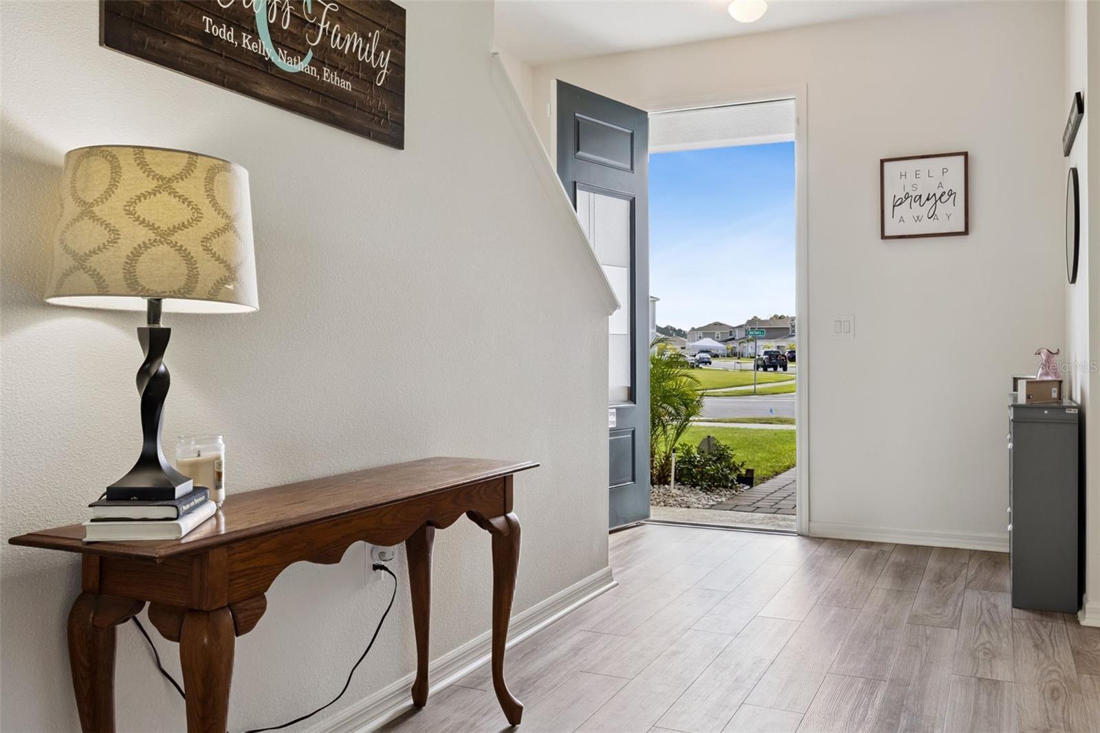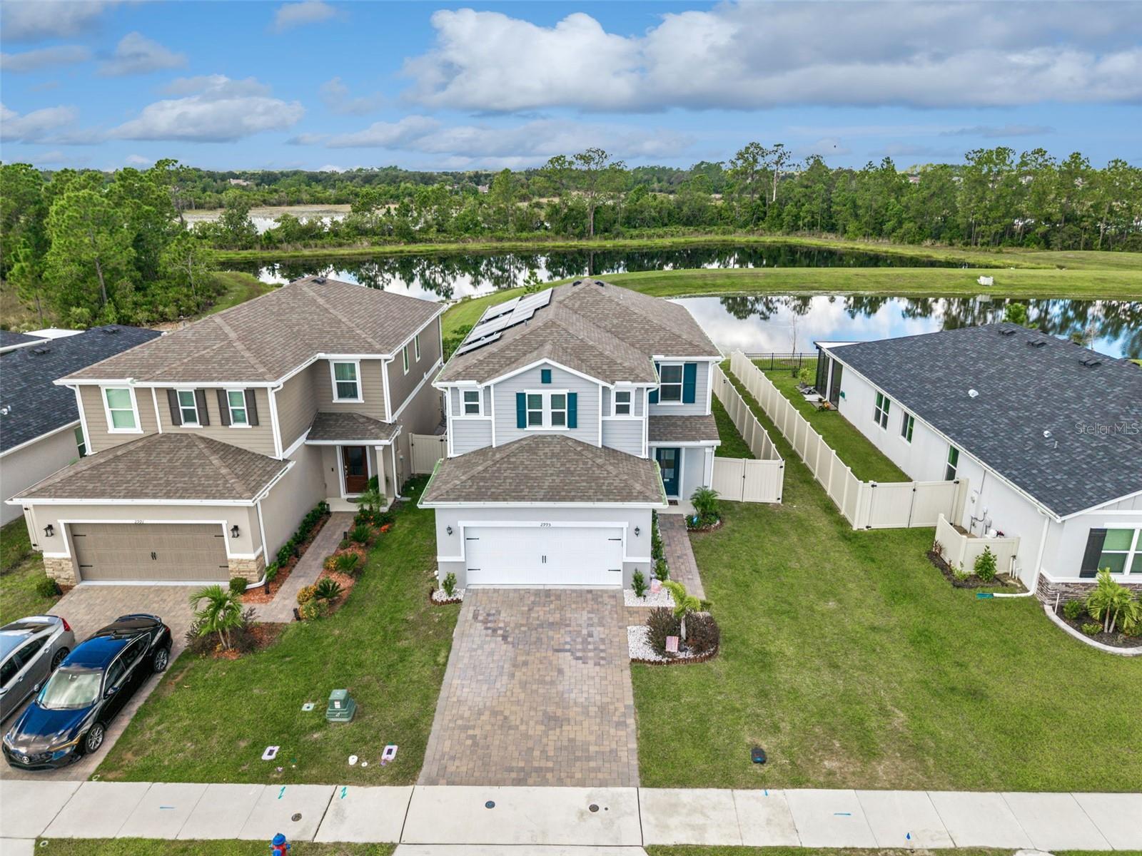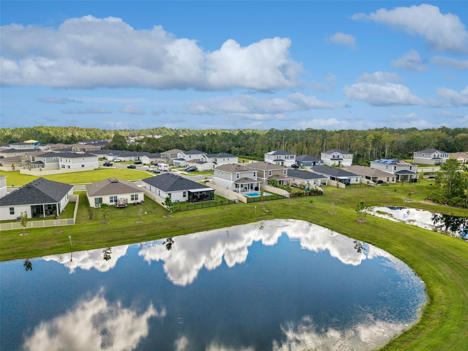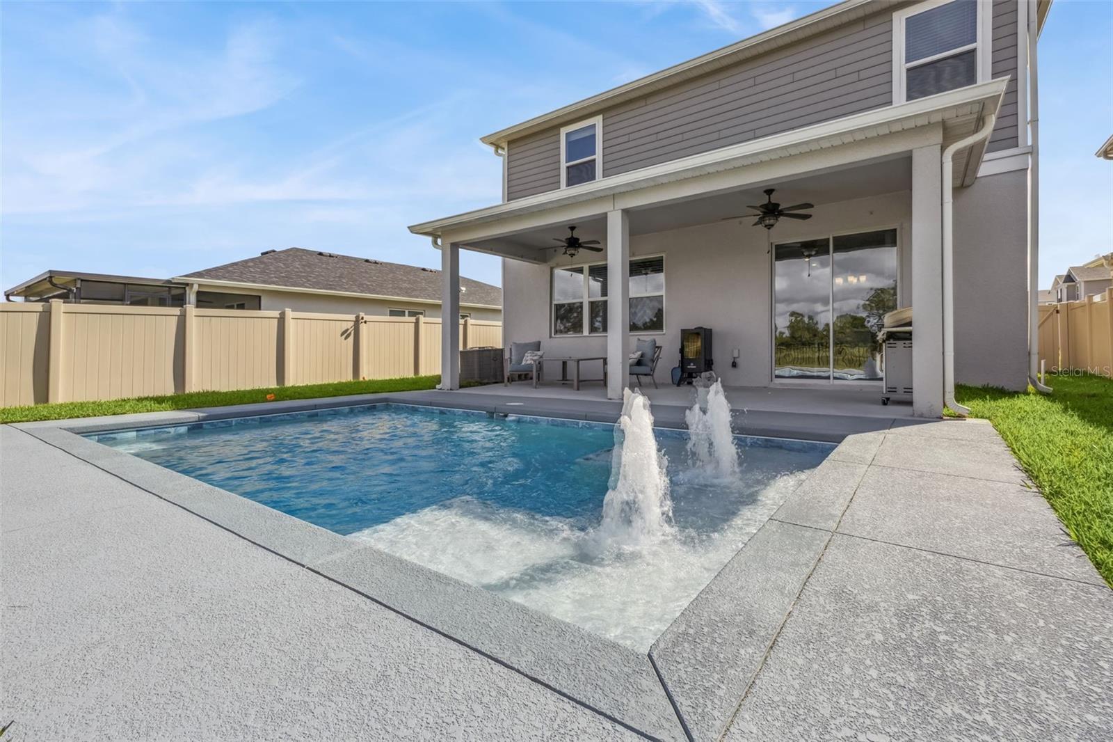 Built in 2024, this stunning 3-bedroom, 2.5-bath home offers the perfect blend of modern design, energy efficiency, and Florida lifestyle living. Located in the highly sought-after community of The Sanctuary, this residence showcases 2,425 square feet of thoughtfully designed living space and a host of premium upgrades throughout. Step inside and you’ll be welcomed by luxury vinyl plank flooring that extends through the main living areas, complemented by plush carpet in the bedrooms for added comfort. The open-concept layout connects the spacious living room, dining area, and modern kitchen—perfect for entertaining and everyday living. Upstairs, you’ll find a large loft area, ideal for a second family room, playroom, office, or home theater. The backyard is a true retreat featuring a brand-new custom pool overlooking a peaceful pond, providing privacy and scenic water views with no rear neighbors. Designed for both comfort and efficiency, the home includes full solar panels (owned) and a whole-home water softener system, helping reduce utility costs while enhancing everyday convenience. The primary suite offers a private escape with a generous walk-in closet and a spa-inspired en suite bath. Two additional bedrooms provide plenty of flexibility for family or guests. A 2-car garage completes this exceptional home. Conveniently located near shopping, dining, major highways, and Central Florida’s world-famous theme parks, this home offers the perfect mix of comfort, functionality, and modern living.