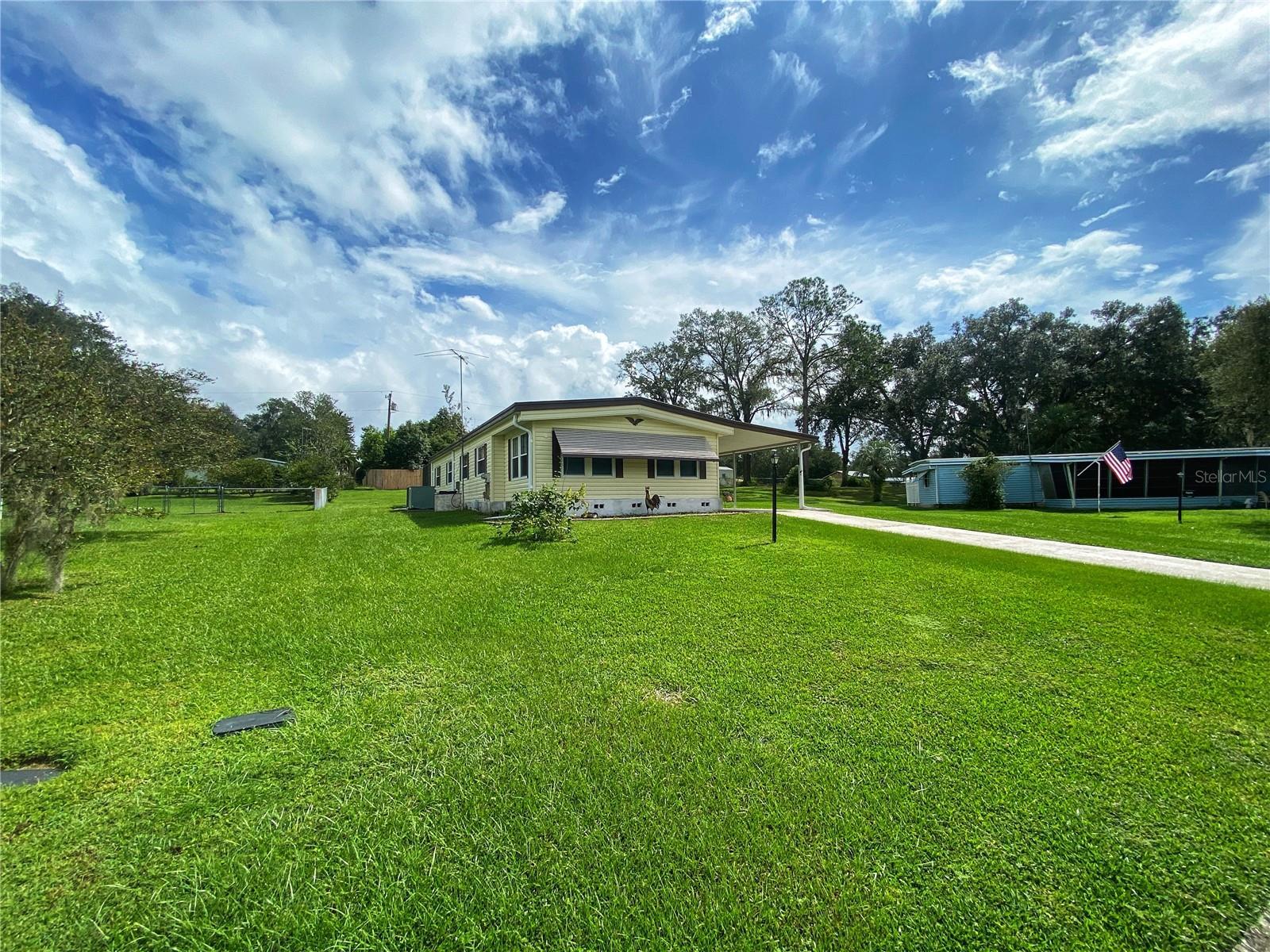 This well-kept 2-bedroom, 2-bathroom mobile home offers 1,372 square feet of comfortable living space on a 0.31-acre corner lot. The home features a spacious living room, a dining area with built-in cabinet storage, and a kitchen equipped with newer appliances. Enjoy year-round relaxation in the large Florida room, perfect for morning coffee or entertaining guests. The space offers flexibility with windows that can be opened to enjoy the breeze during the cooler months or closed to stay comfortable during the summer. Step outside to a screened-in, in-ground pool with a generous pool deck—ideal for enjoying Florida’s warm weather. The backyard provides ample space for outdoor activities or gardening. Additional highlights include a covered carport, a spacious driveway, a screened-in lanai, and a workshop area with washer and dryer hookups. Located in a quiet, well-established neighborhood, this property offers comfort, convenience, and the perfect setting for Florida living.