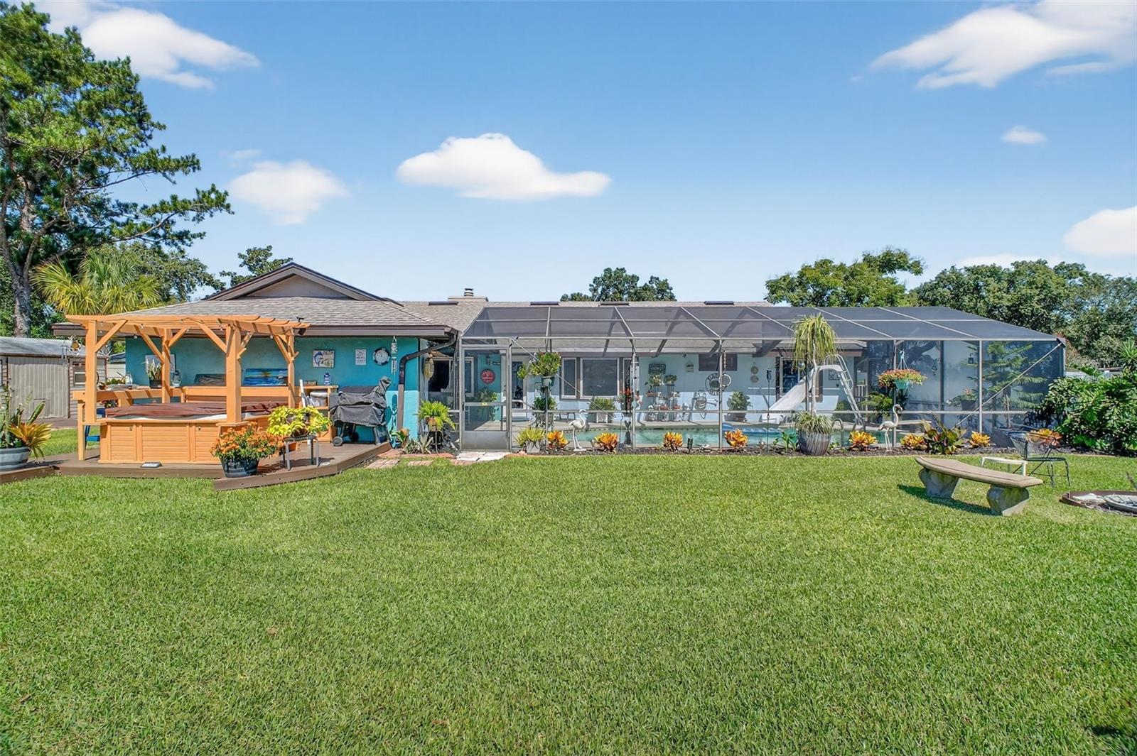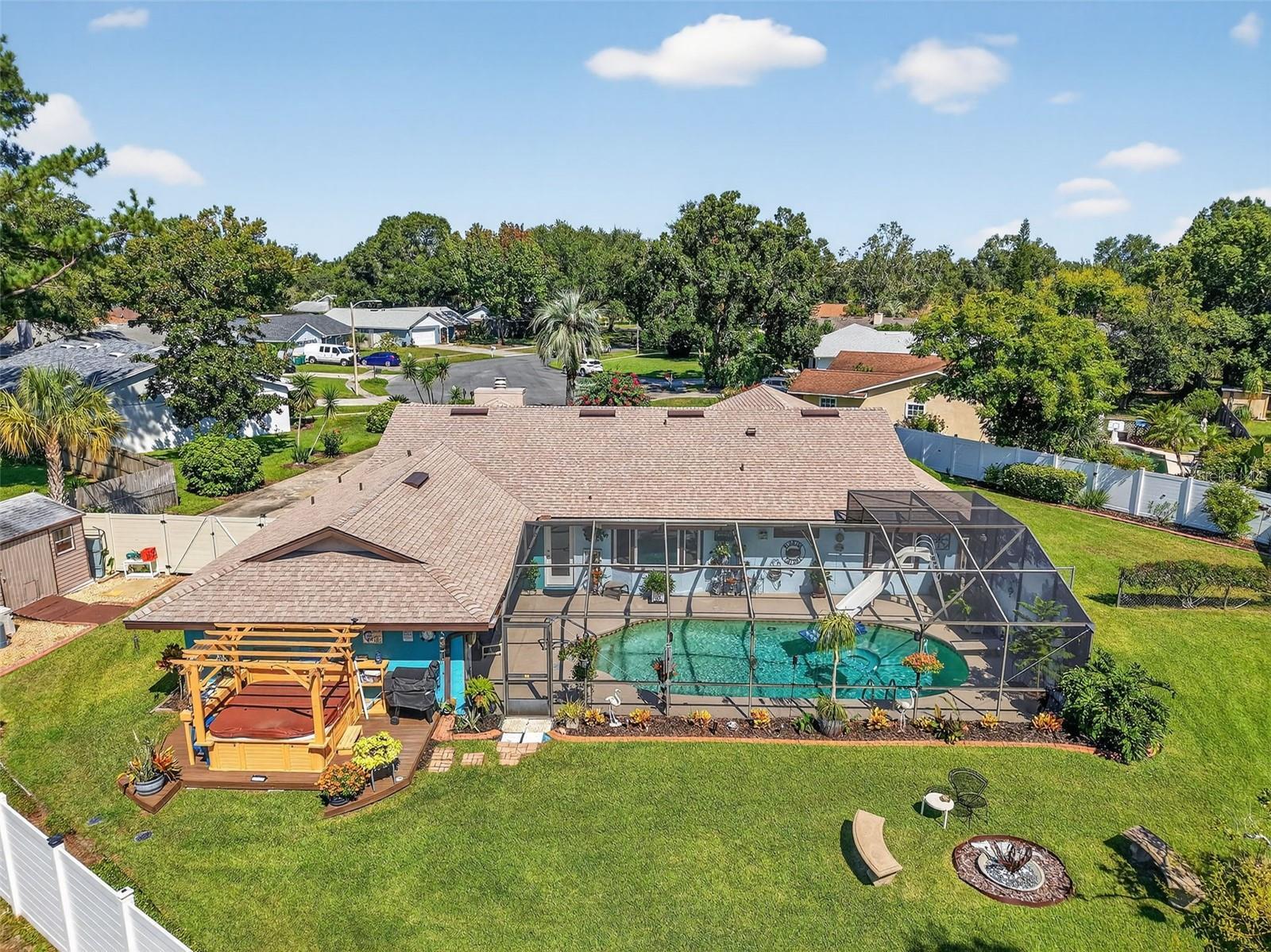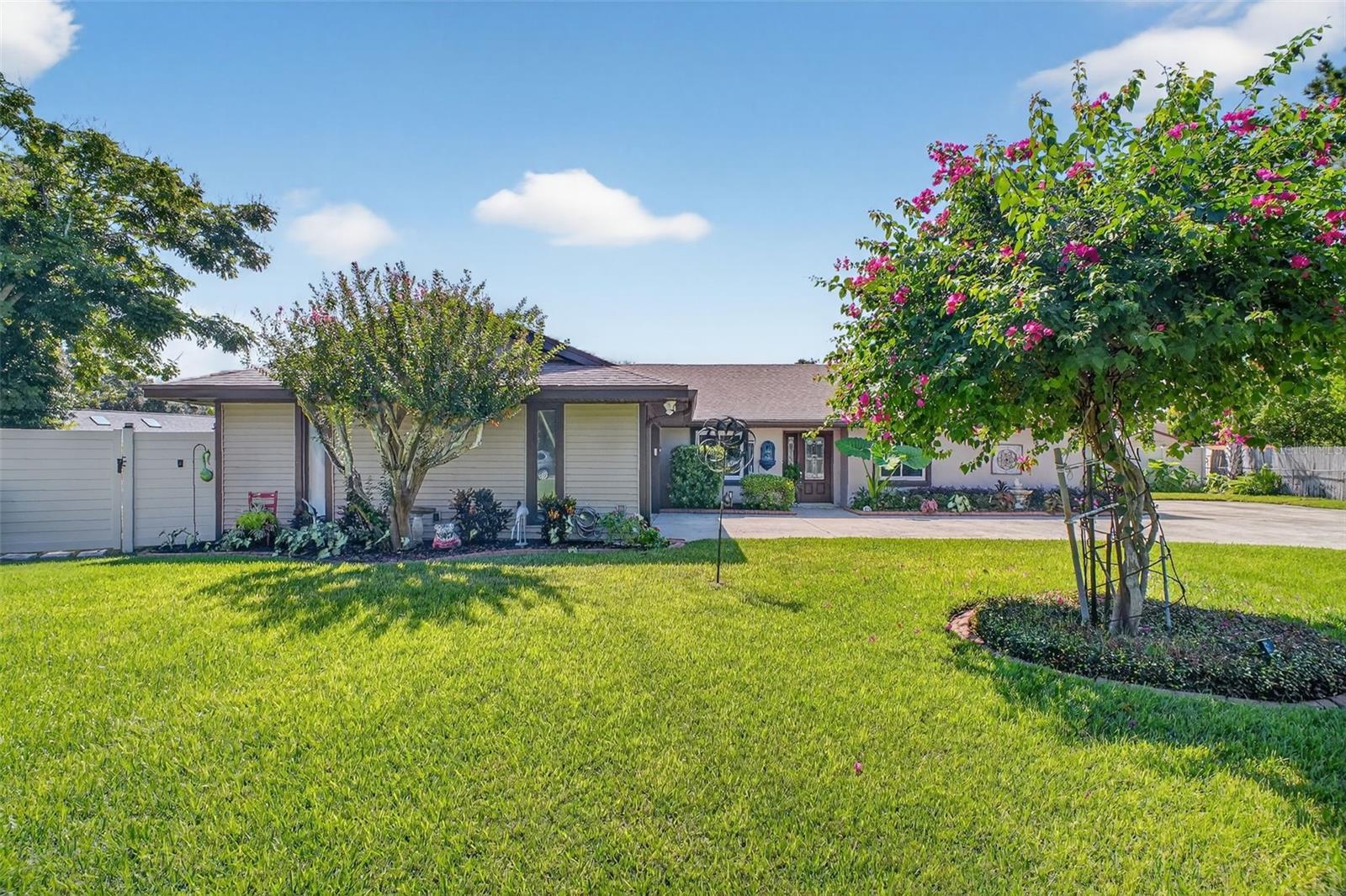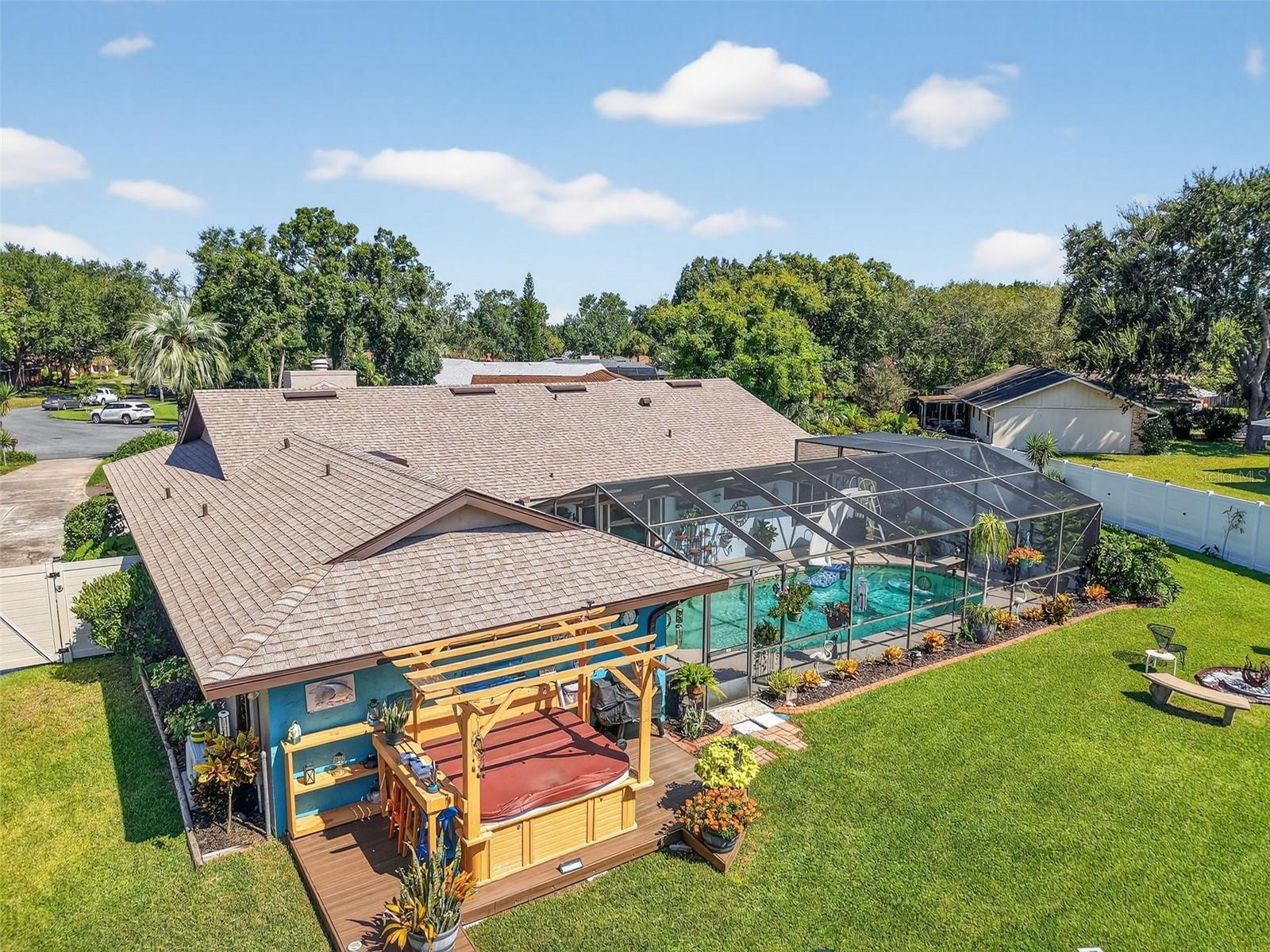 Under contract-accepting backup offers. GORGEOUS 4 BEDROOM 3 BATH POOL HOME WITH OVERSIZED FENCED YARD IN DESIRABLE VILLAGE GROVE COMMUNITY OF MOUNT DORA. Tucked away in a peaceful cul-de-sac, this stunning property perfectly combines privacy, elegance, and everyday convenience—creating a true move-in-ready paradise. Lovingly maintained and thoughtfully updated, this home features a new roof and water heater (2024) and new A/C (2021) for peace of mind. From the moment you arrive, the impressive curb appeal shines with manicured landscaping and a lush green lawn framing the attractive exterior. The expansive driveway, extended parking pad, and side-entry 2-car garage provide abundant space for family and guests, while the double-gated side entry allows easy oversized access to the backyard. Step through the elegant leaded-glass front door into an open, inviting interior highlighted by vaulted ceilings, abundant natural light, and rich hardwood flooring. The front living room, featuring a cozy wood-burning fireplace, and the adjacent formal dining room create perfect settings for entertaining and holiday gatherings. A large case opening and expansive glass slider seamlessly connect the living and family rooms—ideal for casual movie nights or relaxed everyday living. The sophisticated kitchen is beautifully appointed with custom cabinetry, built-in pantry storage, soft-close drawers, gleaming granite countertops, and upgraded stainless steel appliances, including a French-door refrigerator. A dedicated coffee/beverage station and cheerful dining nook offer stunning views of the pool and backyard oasis. A triple-split bedroom layout ensures privacy for all. The primary suite, tucked off the living room, features warm wood floors, large windows, a walk-in closet, and an updated en-suite bath with a tiled shower, built-in storage, and a stylish vessel sink. Off the dining room, two guest bedrooms share a beautifully updated bath with a tiled tub/shower. A private guest or Mother-In-Law Suite sits at the rear of the home—complete with a spacious bedroom (with mini-split A/C), full tiled bath with separate water heater, and direct access to the pool lanai through a private door. The garage impresses with epoxy flooring, built-in cabinetry, a work counter, sink, and laundry area—ideal for hobbies or organization. Step outside and discover your Florida lifestyle at its best! The screen-enclosed pool area features a covered lanai for outdoor dining or lounging, while the sparkling pool with slide promises endless fun. The expansive fenced backyard is a showstopper with a sun deck and hot tub, Jasmine-covered arbor with swing, firepit area, and storage shed—a true retreat for relaxation and entertaining. All of this in an ideal location close to dining, shopping, medical facilities, movie theaters, and historic downtown Mount Dora. This property offers the complete package—space, style, and a serene setting in one of Mount Dora’s most sought-after communities.