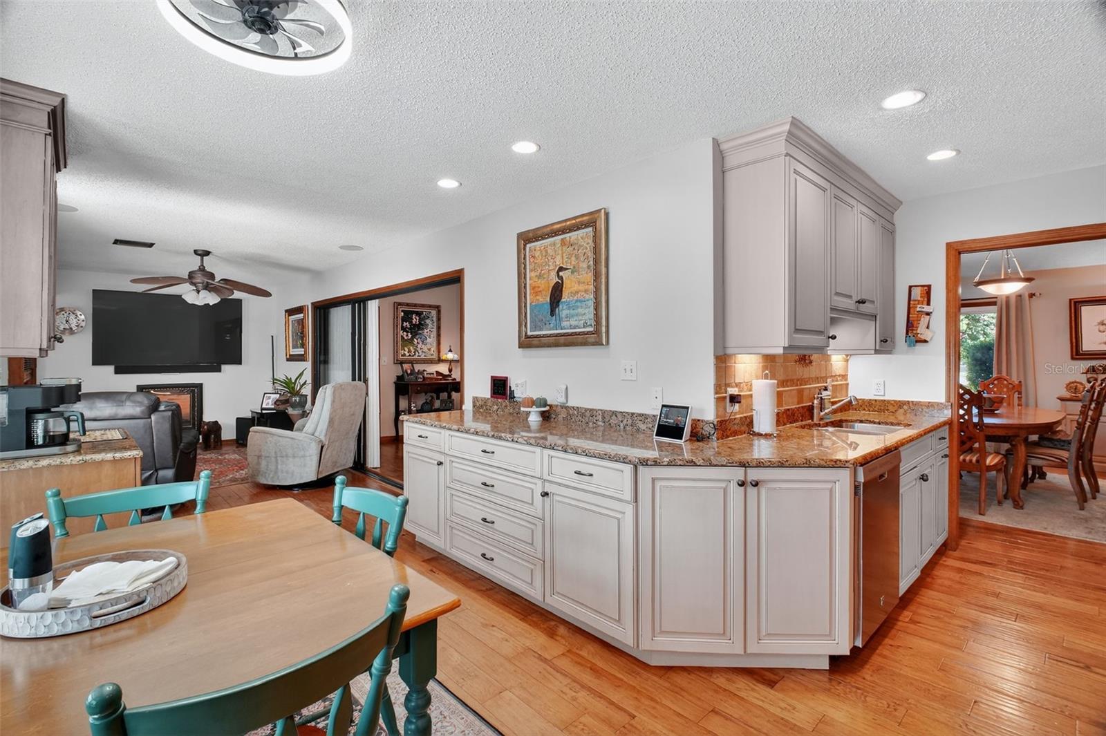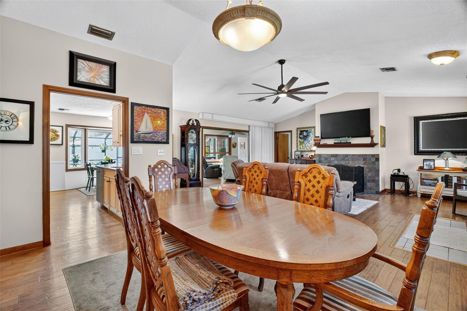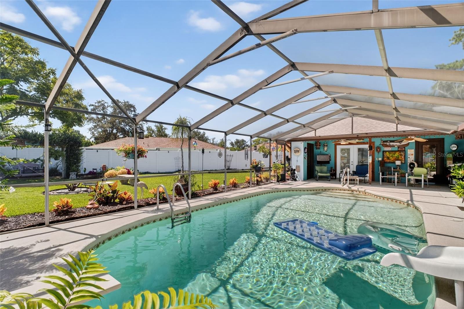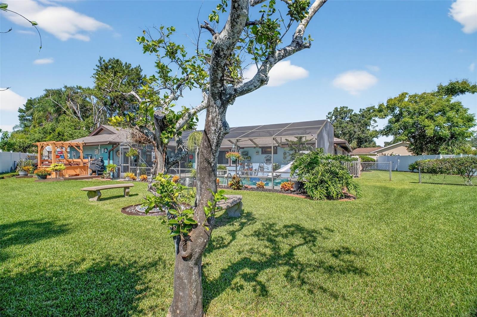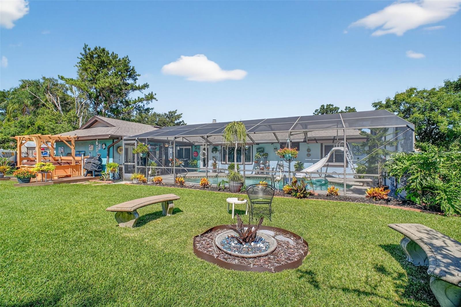 Under contract-accepting backup offers. GORGEOUS 4 BEDROOM 3 BATH POOL HOME WITH OVERSIZED FENCED YARD IN DESIRABLE VILLAGE GROVE COMMUNITY OF MOUNT DORA. Tucked away in a peaceful cul-de-sac, this stunning property perfectly combines privacy, elegance, and everyday convenience—creating a true move-in-ready paradise. Lovingly maintained and thoughtfully updated, this home features a new roof and water heater (2024) and new A/C (2021) for peace of mind. From the moment you arrive, the impressive curb appeal shines with manicured landscaping and a lush green lawn framing the attractive exterior. The expansive driveway, extended parking pad, and side-entry 2-car garage provide abundant space for family and guests, while the double-gated side entry allows easy oversized access to the backyard. Step through the elegant leaded-glass front door into an open, inviting interior highlighted by vaulted ceilings, abundant natural light, and rich hardwood flooring. The front living room, featuring a cozy wood-burning fireplace, and the adjacent formal dining room create perfect settings for entertaining and holiday gatherings. A large case opening and expansive glass slider seamlessly connect the living and family rooms—ideal for casual movie nights or relaxed everyday living. The sophisticated kitchen is beautifully appointed with custom cabinetry, built-in pantry storage, soft-close drawers, gleaming granite countertops, and upgraded stainless steel appliances, including a French-door refrigerator. A dedicated coffee/beverage station and cheerful dining nook offer stunning views of the pool and backyard oasis. A triple-split bedroom layout ensures privacy for all. The primary suite, tucked off the living room, features warm wood floors, large windows, a walk-in closet, and an updated en-suite bath with a tiled shower, built-in storage, and a stylish vessel sink. Off the dining room, two guest bedrooms share a beautifully updated bath with a tiled tub/shower. A private guest or Mother-In-Law Suite sits at the rear of the home—complete with a spacious bedroom (with mini-split A/C), full tiled bath with separate water heater, and direct access to the pool lanai through a private door. The garage impresses with epoxy flooring, built-in cabinetry, a work counter, sink, and laundry area—ideal for hobbies or organization. Step outside and discover your Florida lifestyle at its best! The screen-enclosed pool area features a covered lanai for outdoor dining or lounging, while the sparkling pool with slide promises endless fun. The expansive fenced backyard is a showstopper with a sun deck and hot tub, Jasmine-covered arbor with swing, firepit area, and storage shed—a true retreat for relaxation and entertaining. All of this in an ideal location close to dining, shopping, medical facilities, movie theaters, and historic downtown Mount Dora. This property offers the complete package—space, style, and a serene setting in one of Mount Dora’s most sought-after communities.
