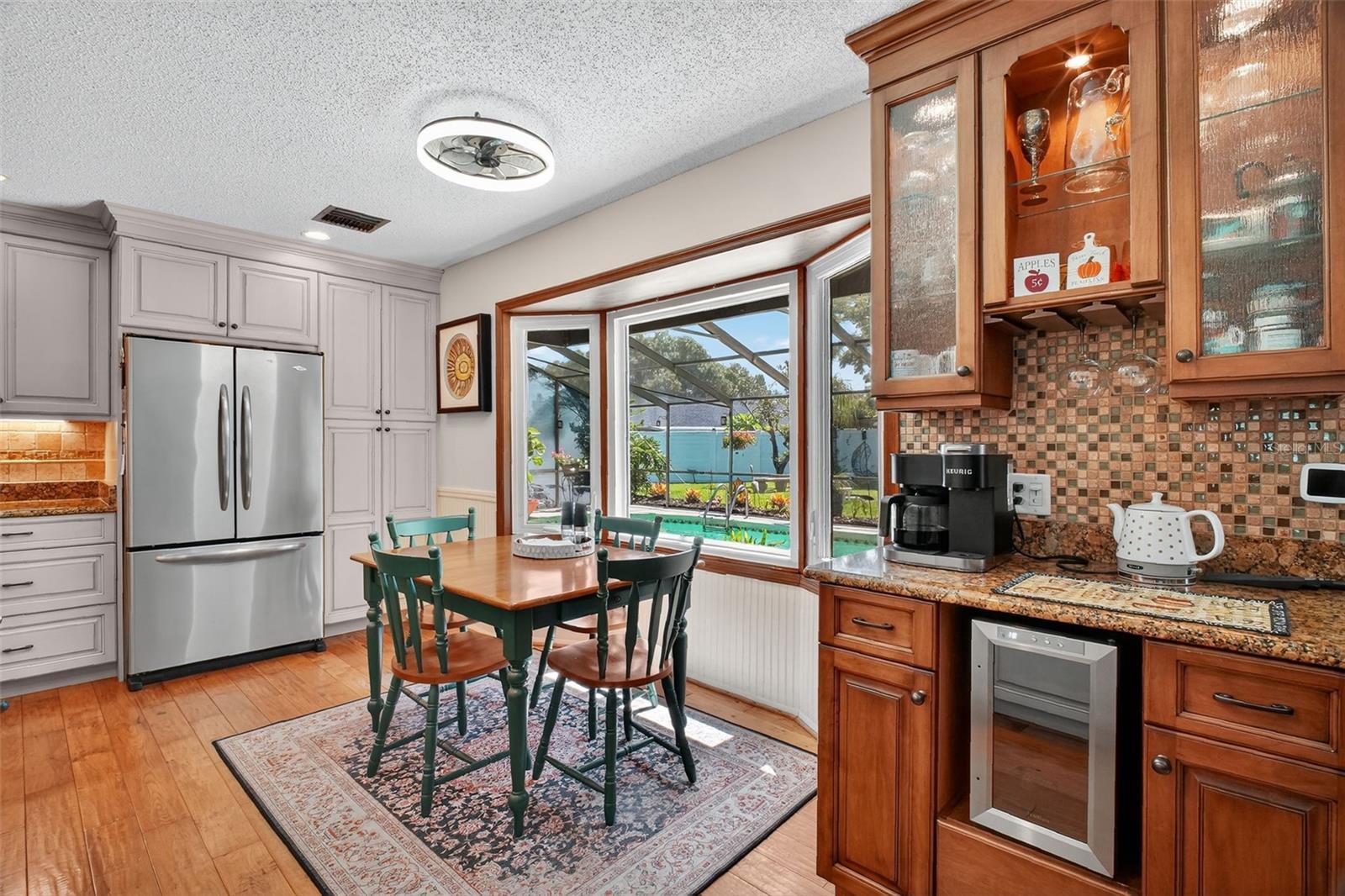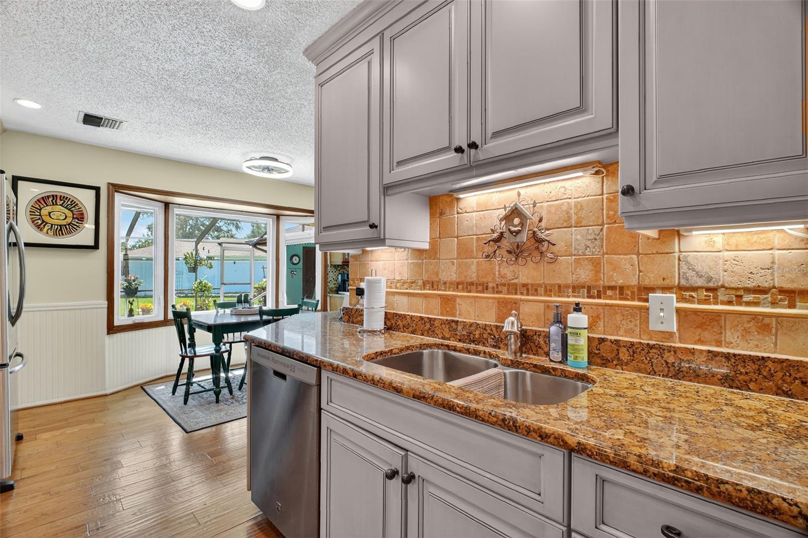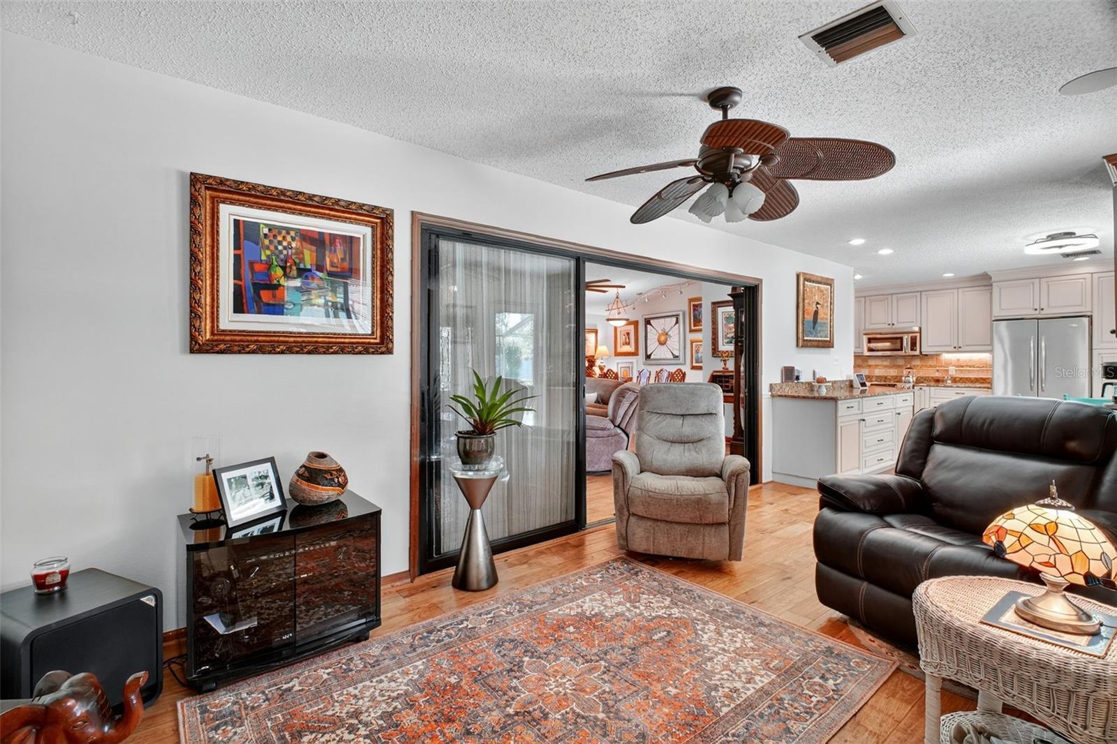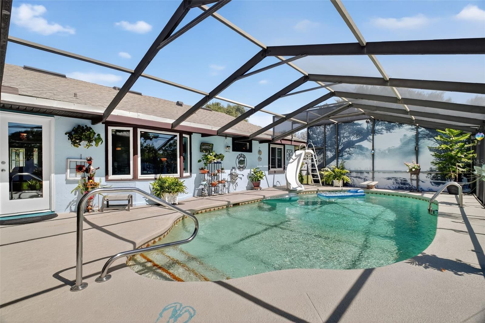Under contract-accepting backup offers. GORGEOUS 4 BEDROOM 3 BATH POOL HOME WITH OVERSIZED FENCED YARD IN DESIRABLE VILLAGE GROVE COMMUNITY OF MOUNT DORA. Tucked away in a peaceful cul-de-sac, this stunning property perfectly combines privacy, elegance, and everyday convenience—creating a true move-in-ready paradise. Lovingly maintained and thoughtfully updated, this home features a new roof and water heater (2024) and new A/C (2021) for peace of mind. From the moment you arrive, the impressive curb appeal shines with manicured landscaping and a lush green lawn framing the attractive exterior. The expansive driveway, extended parking pad, and side-entry 2-car garage provide abundant space for family and guests, while the double-gated side entry allows easy oversized access to the backyard. Step through the elegant leaded-glass front door into an open, inviting interior highlighted by vaulted ceilings, abundant natural light, and rich hardwood flooring. The front living room, featuring a cozy wood-burning fireplace, and the adjacent formal dining room create perfect settings for entertaining and holiday gatherings. A large case opening and expansive glass slider seamlessly connect the living and family rooms—ideal for casual movie nights or relaxed everyday living. The sophisticated kitchen is beautifully appointed with custom cabinetry, built-in pantry storage, soft-close drawers, gleaming granite countertops, and upgraded stainless steel appliances, including a French-door refrigerator. A dedicated coffee/beverage station and cheerful dining nook offer stunning views of the pool and backyard oasis. A triple-split bedroom layout ensures privacy for all. The primary suite, tucked off the living room, features warm wood floors, large windows, a walk-in closet, and an updated en-suite bath with a tiled shower, built-in storage, and a stylish vessel sink. Off the dining room, two guest bedrooms share a beautifully updated bath with a tiled tub/shower. A private guest or Mother-In-Law Suite sits at the rear of the home—complete with a spacious bedroom (with mini-split A/C), full tiled bath with separate water heater, and direct access to the pool lanai through a private door. The garage impresses with epoxy flooring, built-in cabinetry, a work counter, sink, and laundry area—ideal for hobbies or organization. Step outside and discover your Florida lifestyle at its best! The screen-enclosed pool area features a covered lanai for outdoor dining or lounging, while the sparkling pool with slide promises endless fun. The expansive fenced backyard is a showstopper with a sun deck and hot tub, Jasmine-covered arbor with swing, firepit area, and storage shed—a true retreat for relaxation and entertaining. All of this in an ideal location close to dining, shopping, medical facilities, movie theaters, and historic downtown Mount Dora. This property offers the complete package—space, style, and a serene setting in one of Mount Dora’s most sought-after communities.