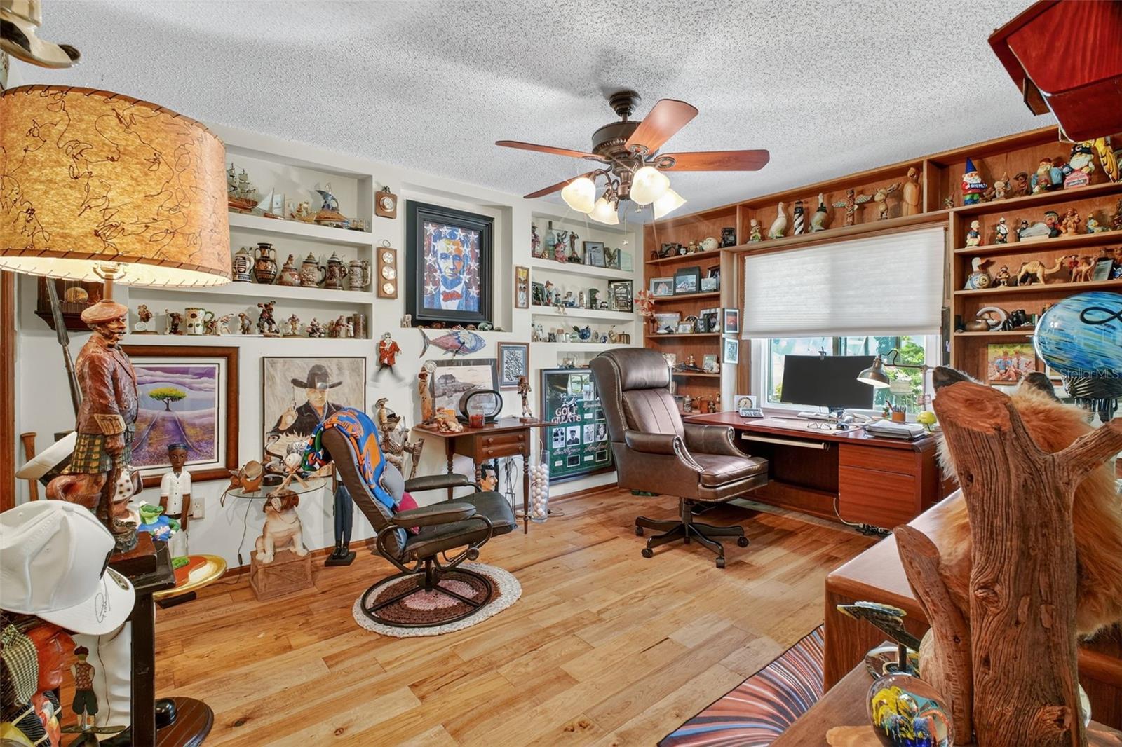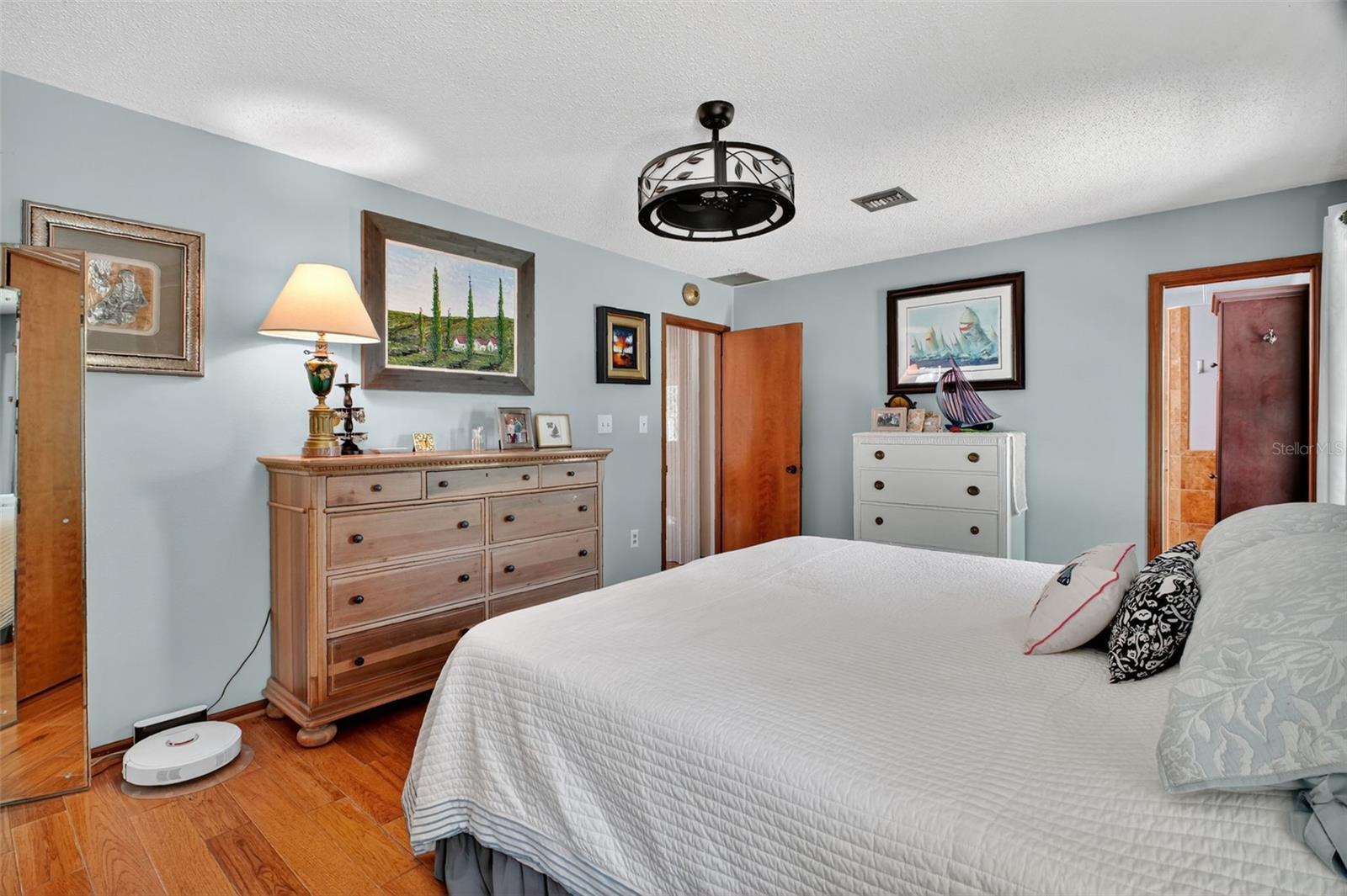 - Ceiling Fans(s), Crown Molding, Primary Bedroom Main Floor, Solid Wood Cabinets, Split Bedroom, Stone Counters, Walk-In Closet(s), Window Treatments