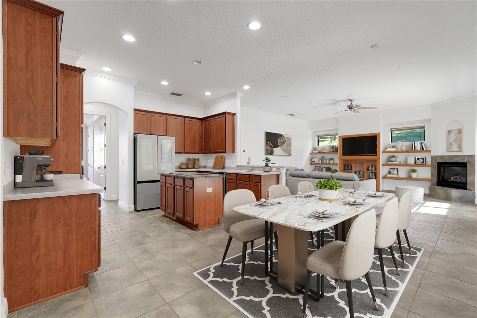 - Ceiling Fans(s), Crown Molding, Kitchen/Family Room Combo, Living Room/Dining Room Combo, Solid Surface Counters, Solid Wood Cabinets, Vaulted Ceiling(s), Walk-In Closet(s)
