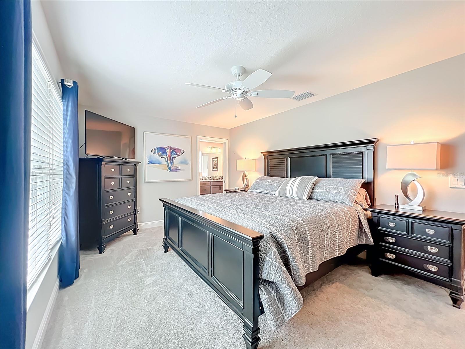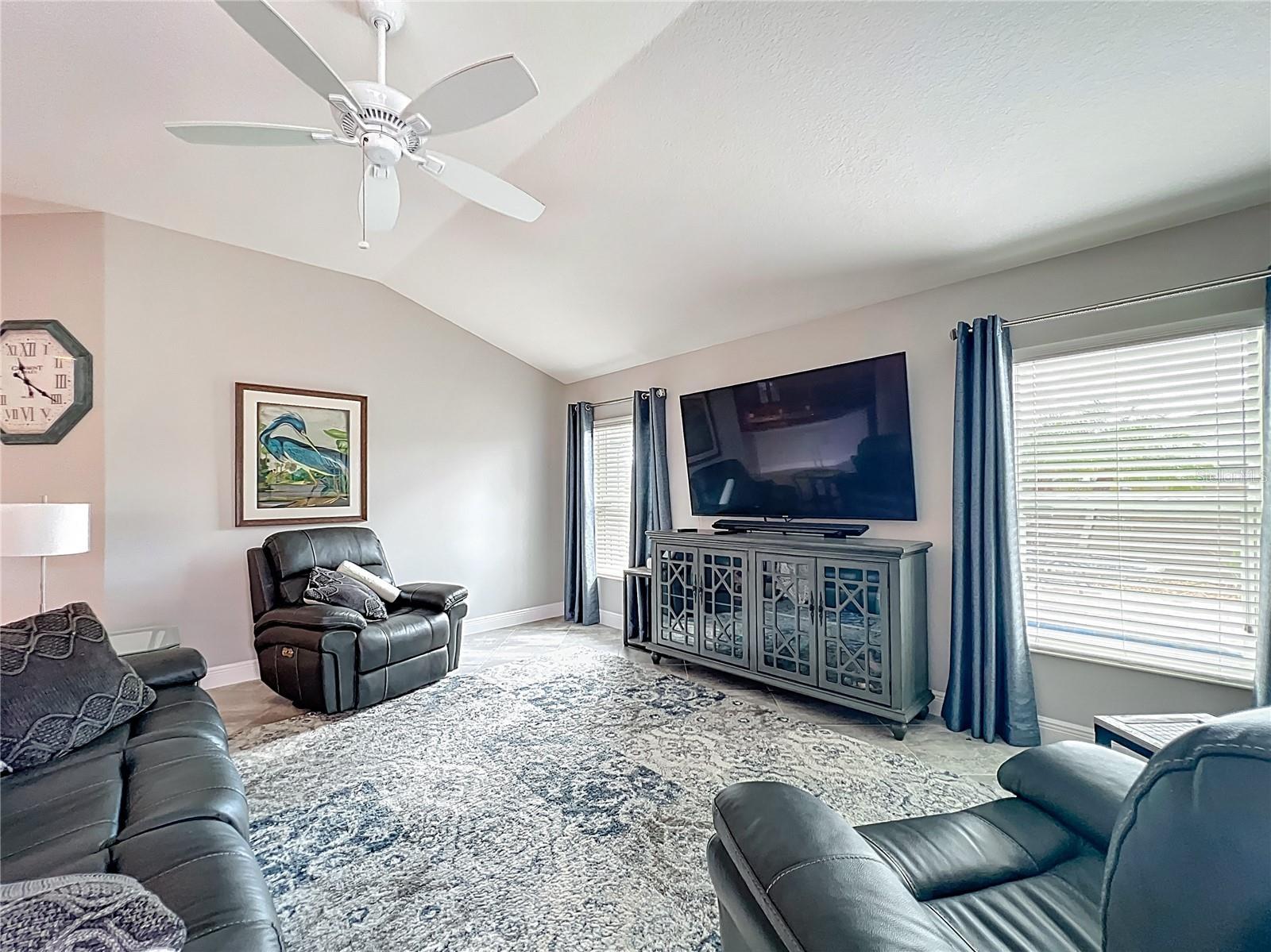 - Ceiling Fans(s), Eat-in Kitchen, High Ceilings, Kitchen/Family Room Combo, Living Room/Dining Room Combo, Open Floorplan, Primary Bedroom Main Floor, Solid Surface Counters, Split Bedroom, Thermostat, Tray Ceiling(s), Vaulted Ceiling(s), Walk-In Closet(s), Window Treatments