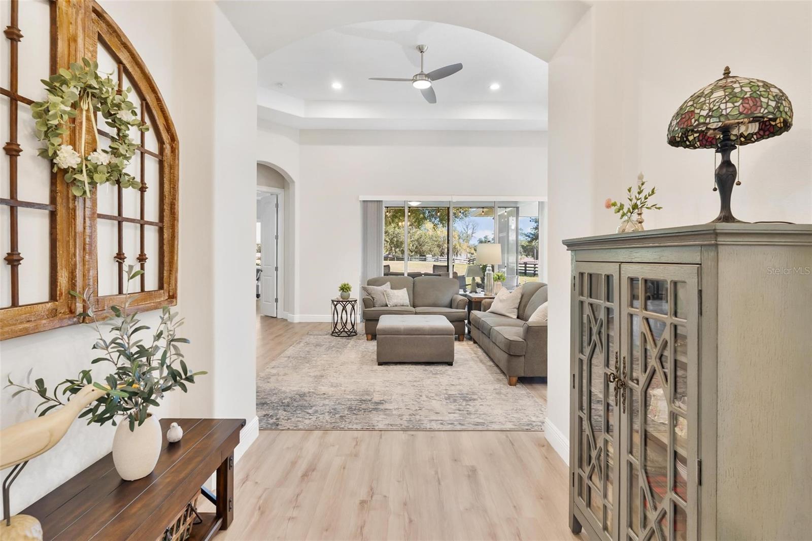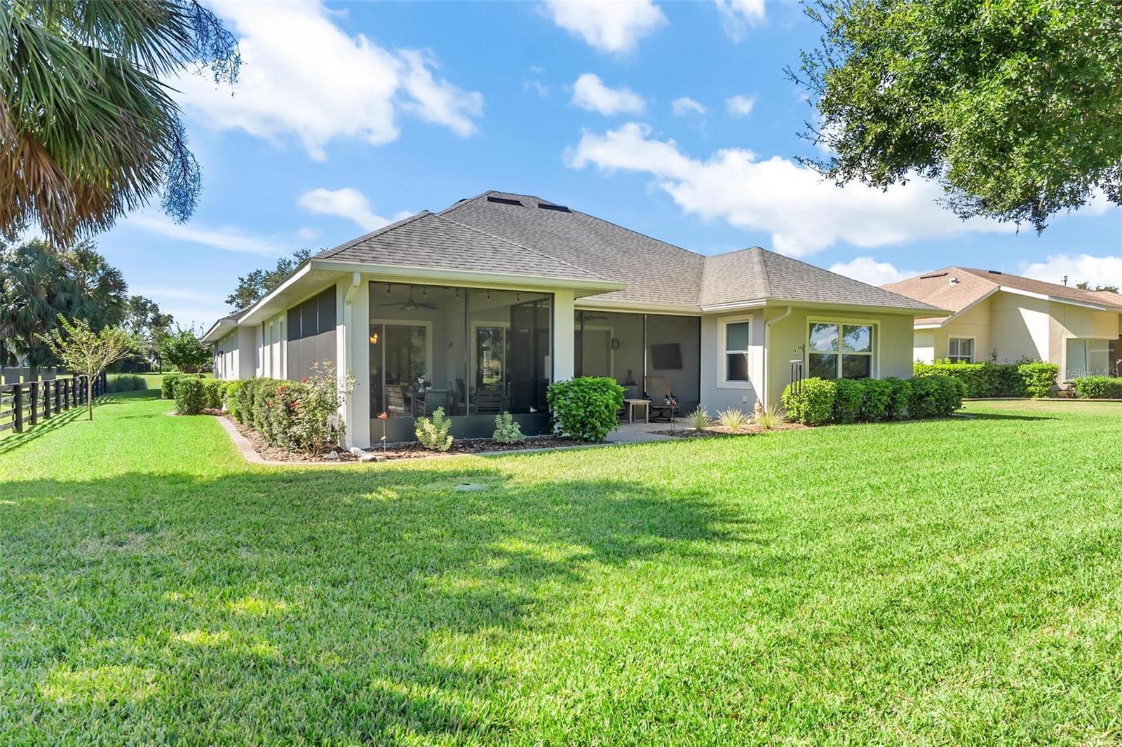 Have you been looking for an immaculate 4 bedroom home on the golf course and in a gated community? Well look no further! Discover modern luxury and serene golf course living in this stunning 4 bedroom 3 bath home built in 2020. Perfectly situated on a corner lot on Tee #3, this property offers sweeping views as golfers tee off to the fairway! Step inside to find an open concept floor plan featuring high ceilings, designer finishes and abundant natural light. The gourmet kitchen is a chef's dream with quartz countertops, ample cabinet space, stainless appliances and spacious island perfect for entertaining. The primary suite off the living area offers a peaceful retreat with a spa like bathroom with double sinks and dream walk in shower plus double walk in closets. Three additional bedrooms provide ample room for family or guests. Imagine enjoying your morning coffee or evening glass of wine on the screened in back porch overlooking the manicured green. This back porch is the perfect blend of outdoor living. Another major perk is the whole home Generac generator that brings you peace when you loose power. Live where you play and love where you live in the Harbor Hills community! Between golfing, the community pool, the on site restaurant and many different activity clubs-this neighborhood can keep you busy right near your door step! Conveniently also located just miles to The Villages! Do not miss your chance to make this immaculate home yours! Move in today and start living the lifestyle you deserve!