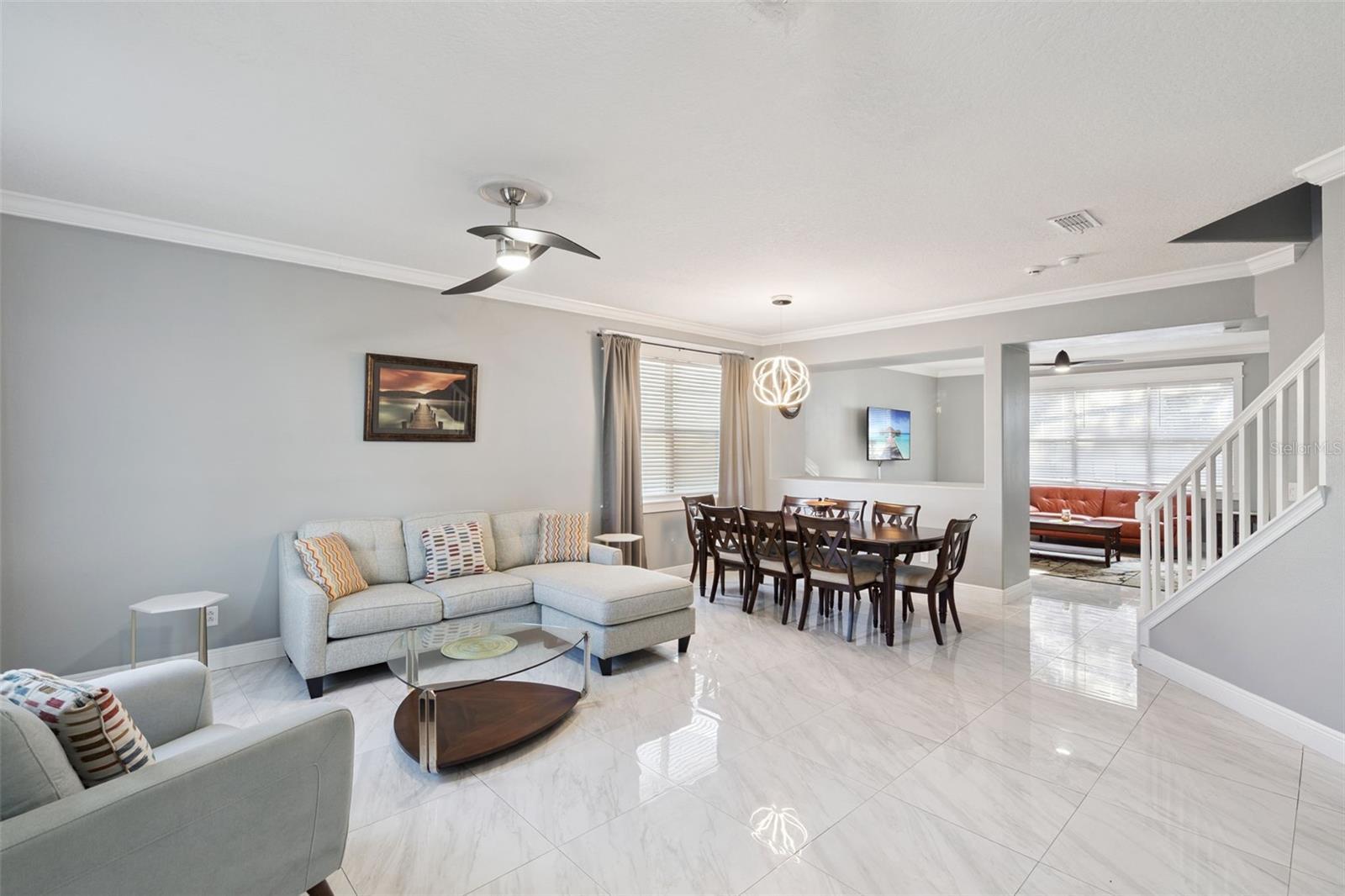 - Built-in Features, Ceiling Fans(s), Crown Molding, Open Floorplan